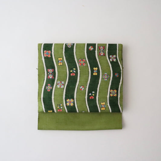 九寸名古屋帯「木版更紗 - よろけ縞」小島貞二