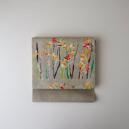 九寸名古屋帯「型絵染 - 水仙花」中島敬子