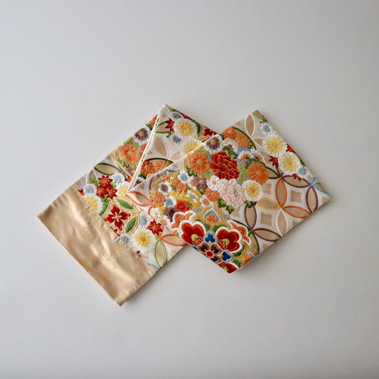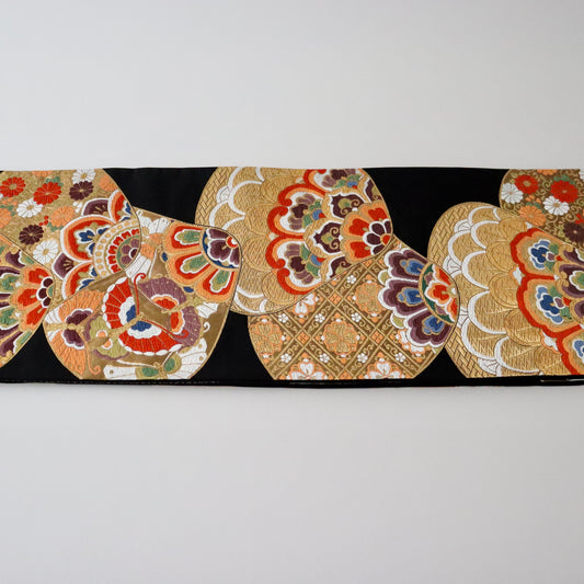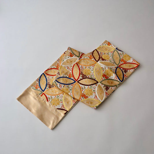 袋帯「寿祥秀花七宝文」河合美術織物