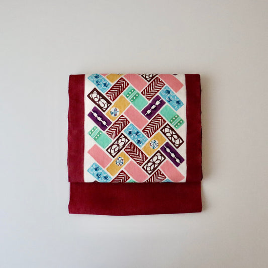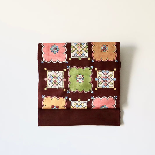 九寸名古屋帯「木版更紗 - 飾り窓」小島貞二
