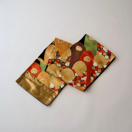 袋帯「裂形名錦寿宝文」河合美術織物