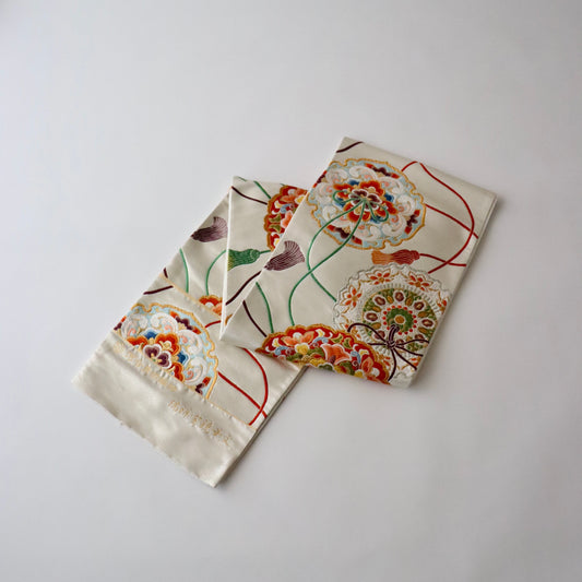 袋帯「彩七宝寿蝶華文」河合美術織物