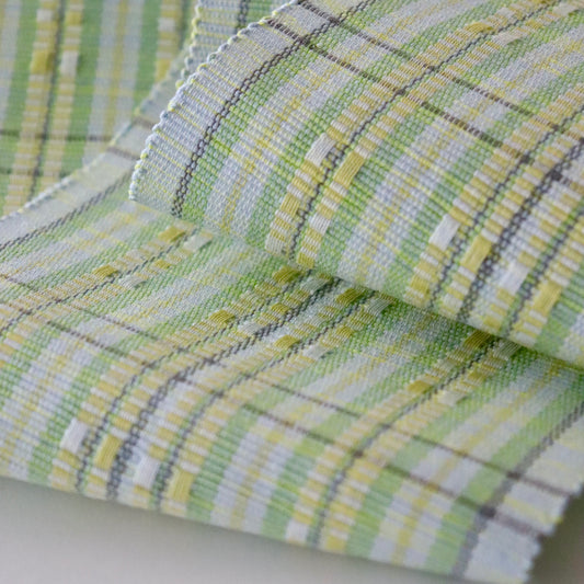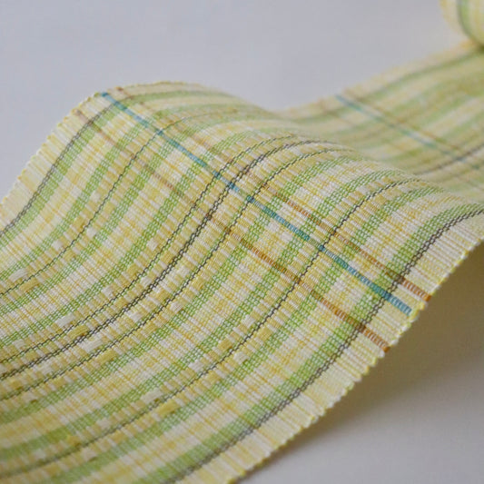 光を透過し、装い全体を軽やかに見せてくれる。そんな「ガラスの帯留」と涼を呼ぶコーディネートをどうぞご覧ください。
