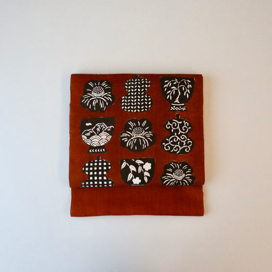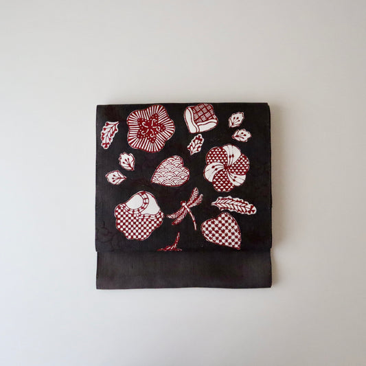 九寸名古屋帯「型絵染 - たからもの」荒川眞理子