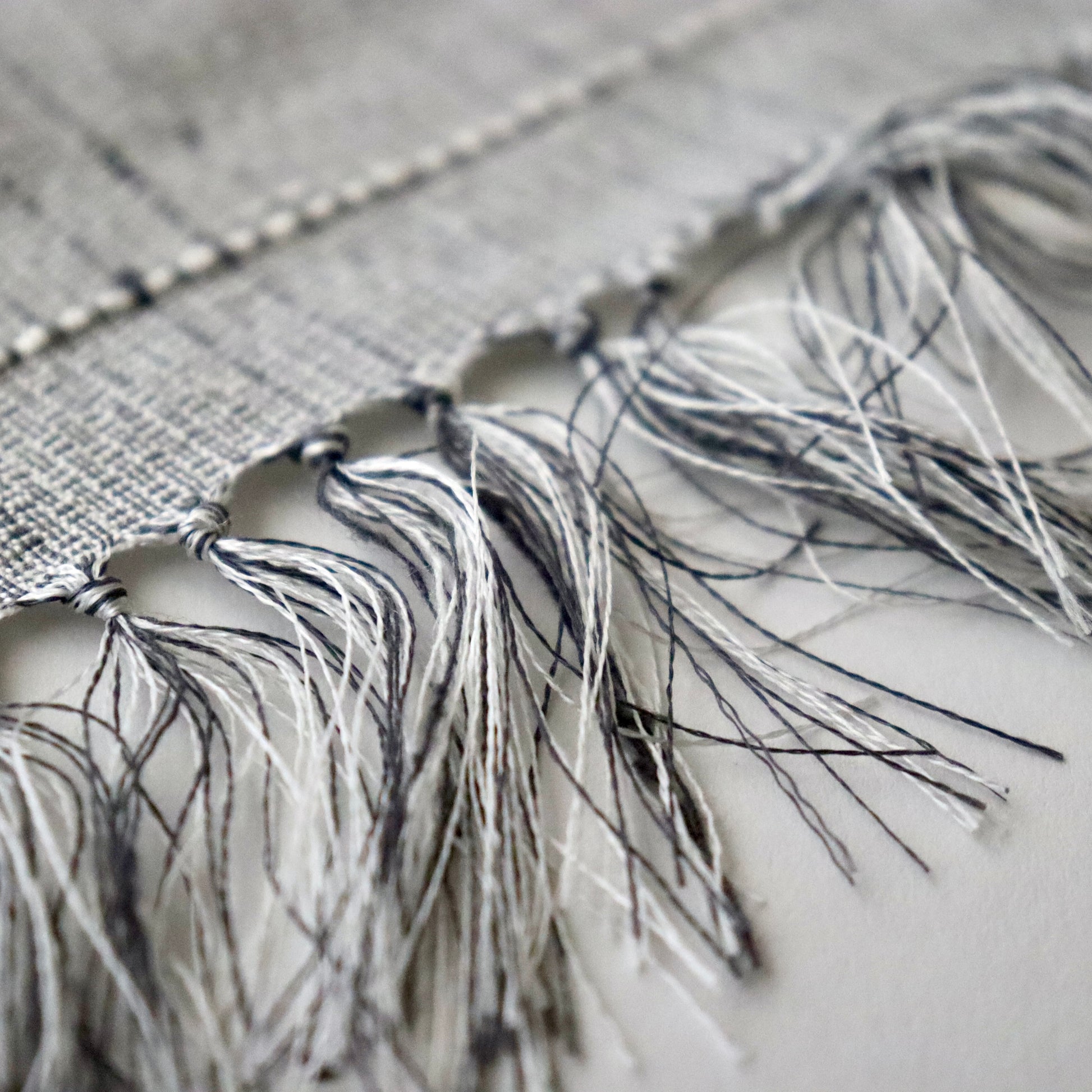 新潟小千谷の織元「おだきん - 小田島克明」謹製の小田島格子。遠目には無地に見える細やかな網代格子を丁寧に織り上げた本作。