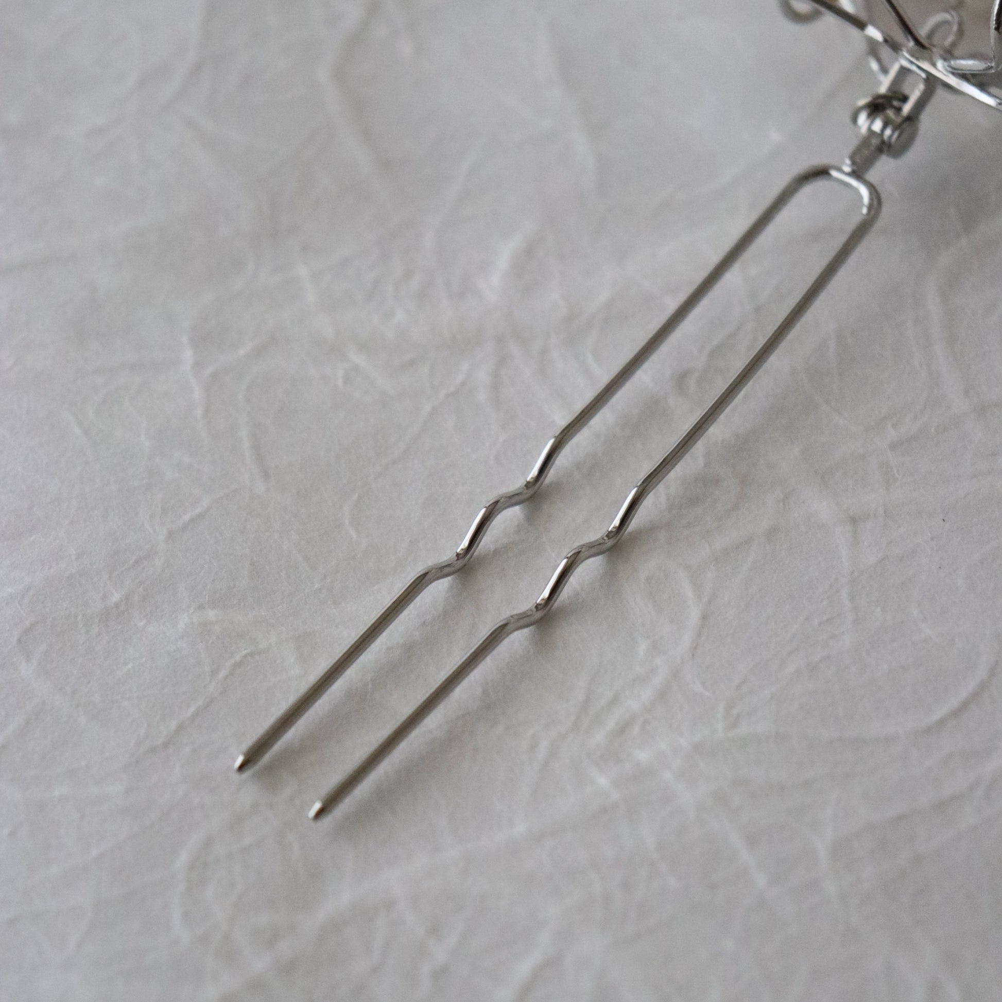 それらのコントラストが洗練された高級感を漂わせます。花月かんざしなのでモチーフと軸の角度調整が可能。軸の形状も髪に絡むようになっております