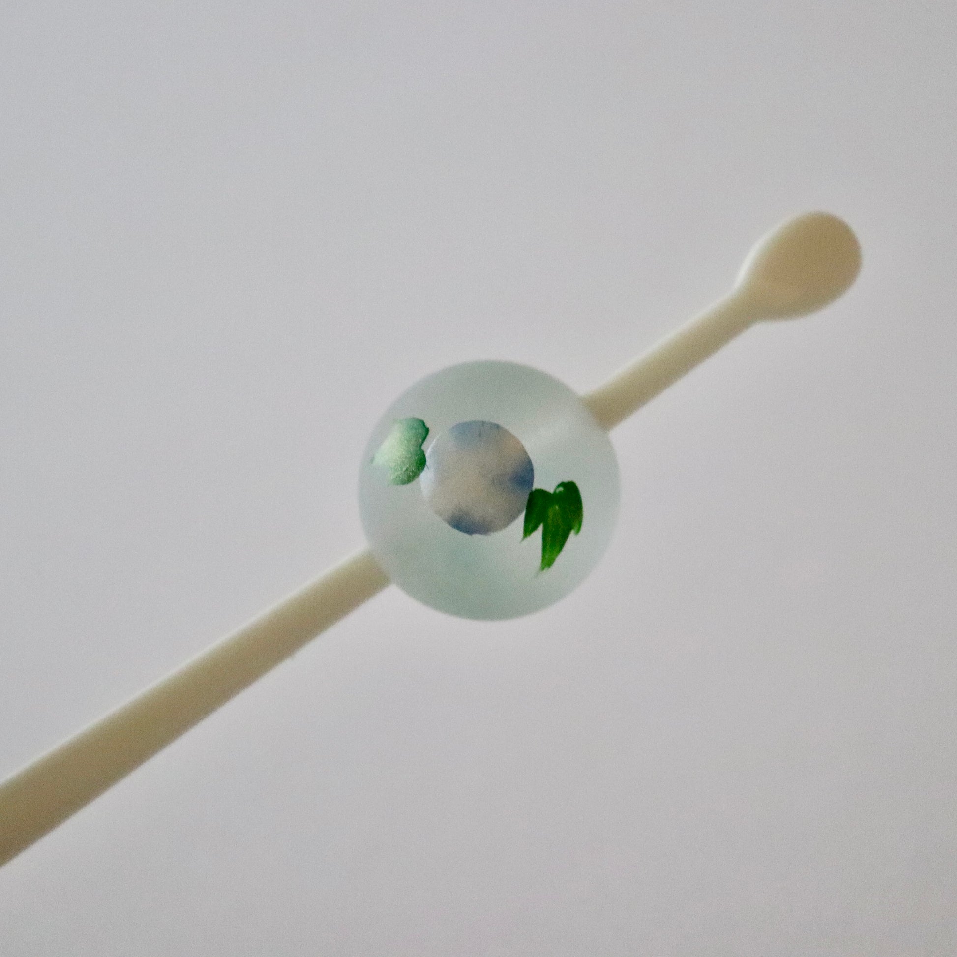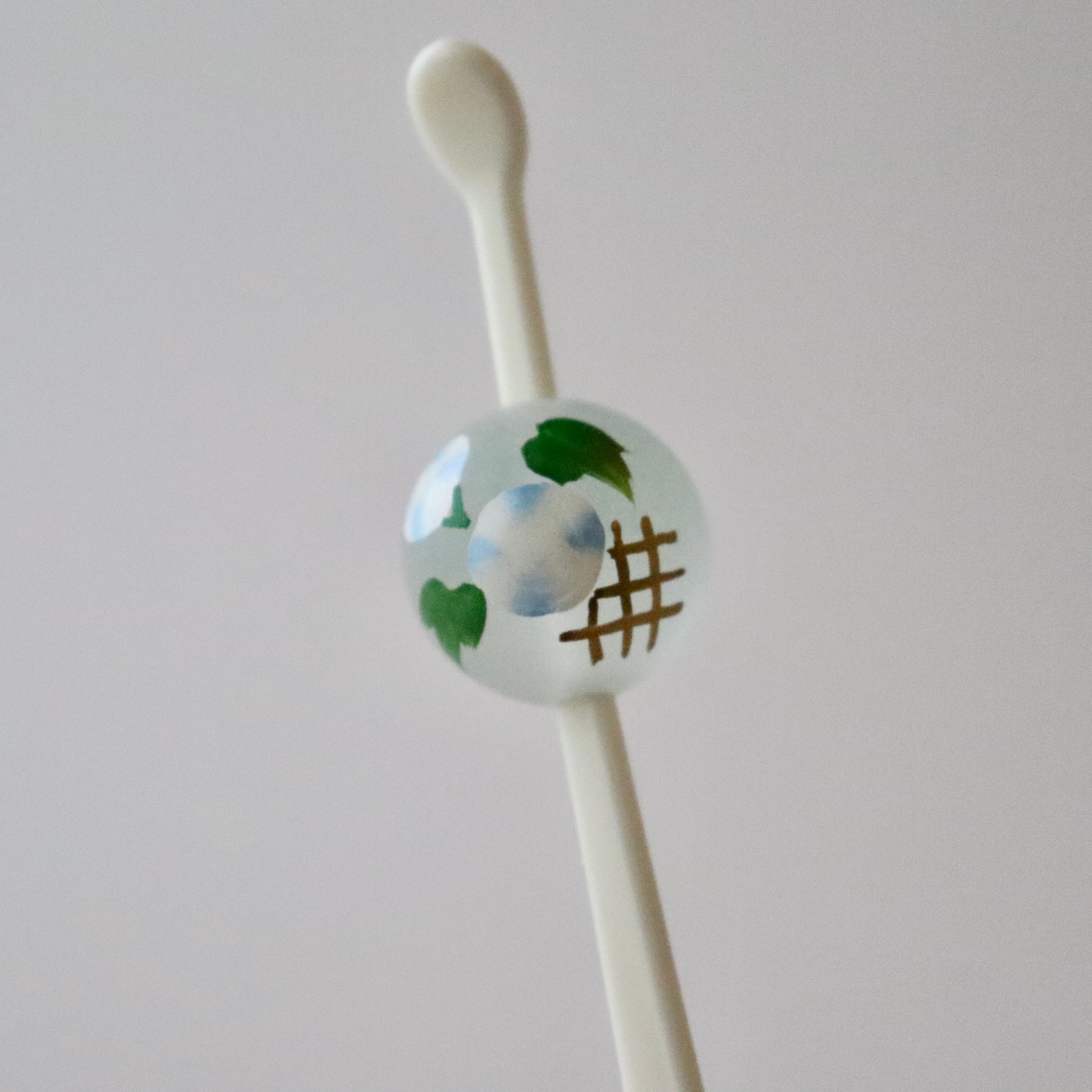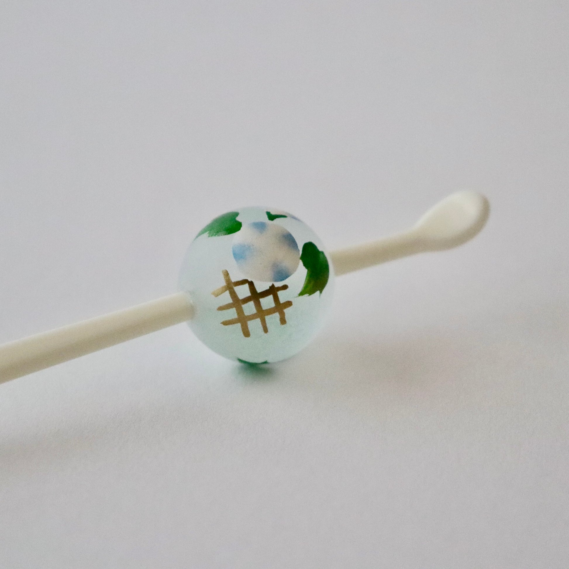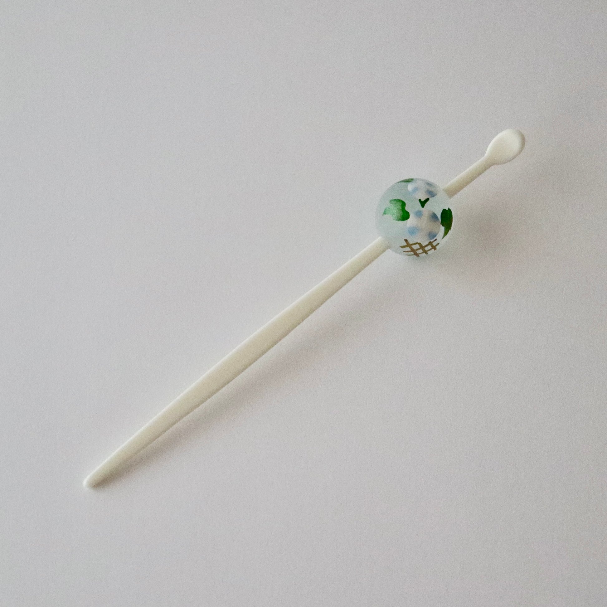磨りガラスの様な質感の珠に朝顔を描いた夏らしいかんざし。