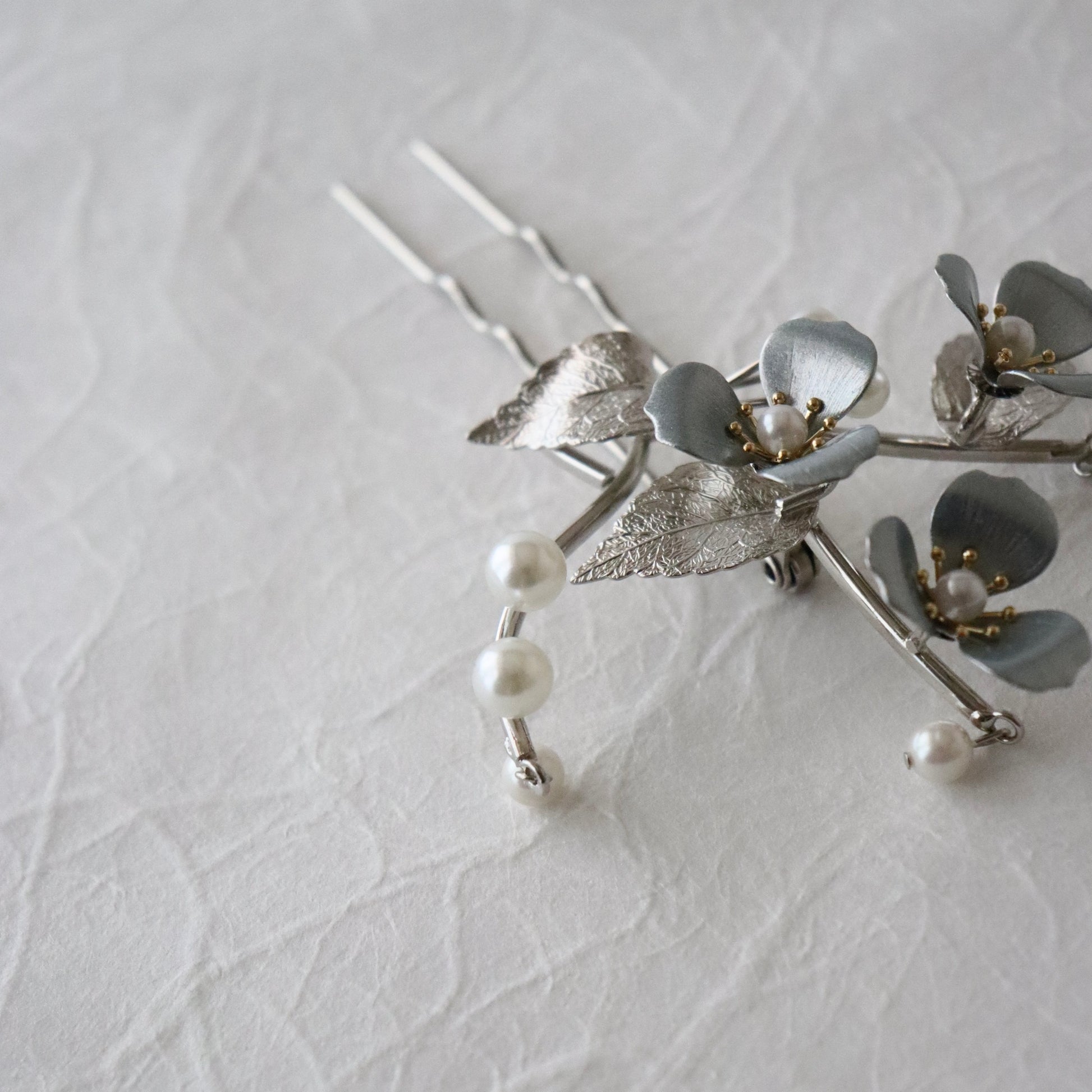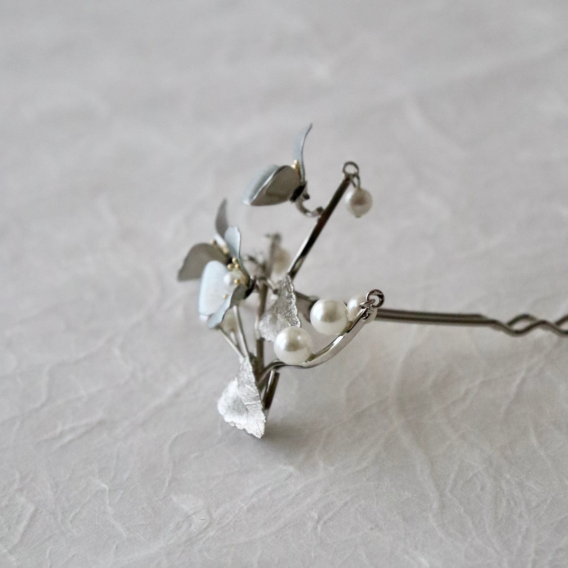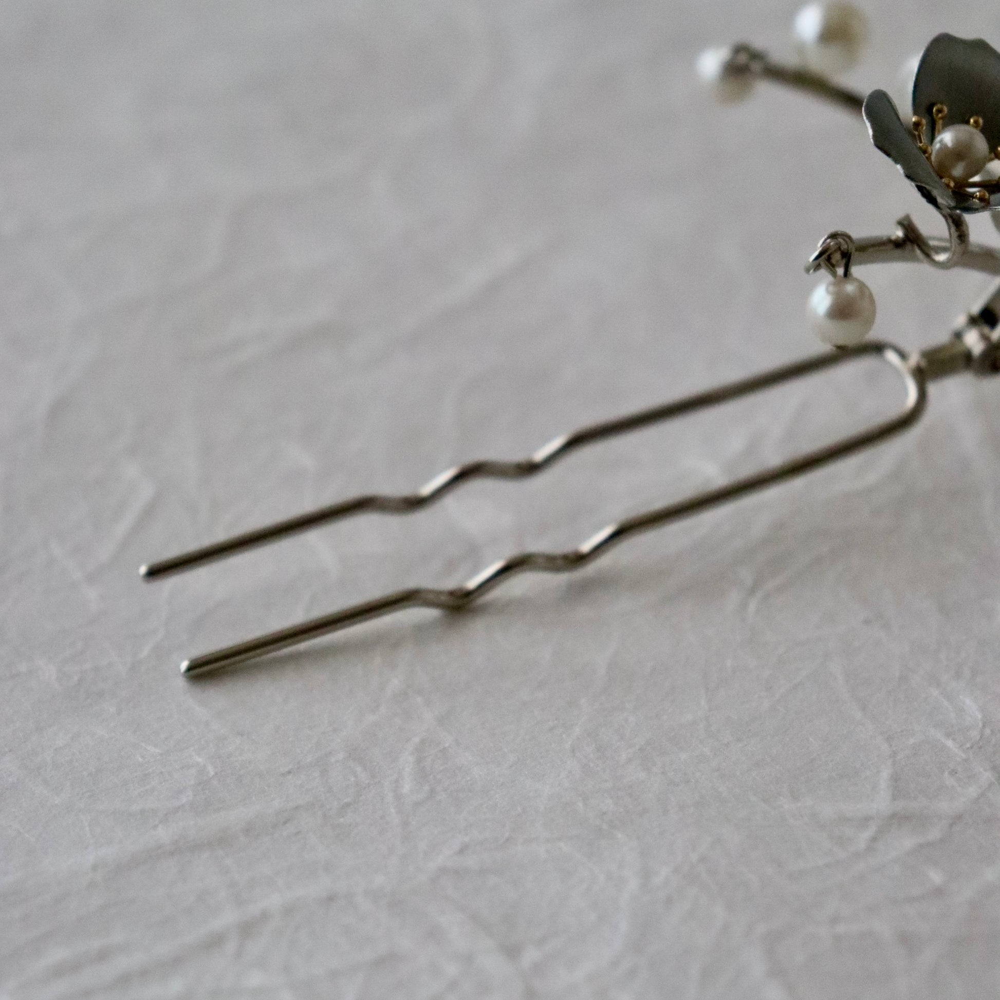 パールを模した装飾は洗練された高級感を漂わせます。軸の形状も髪に絡むような作りになっております。