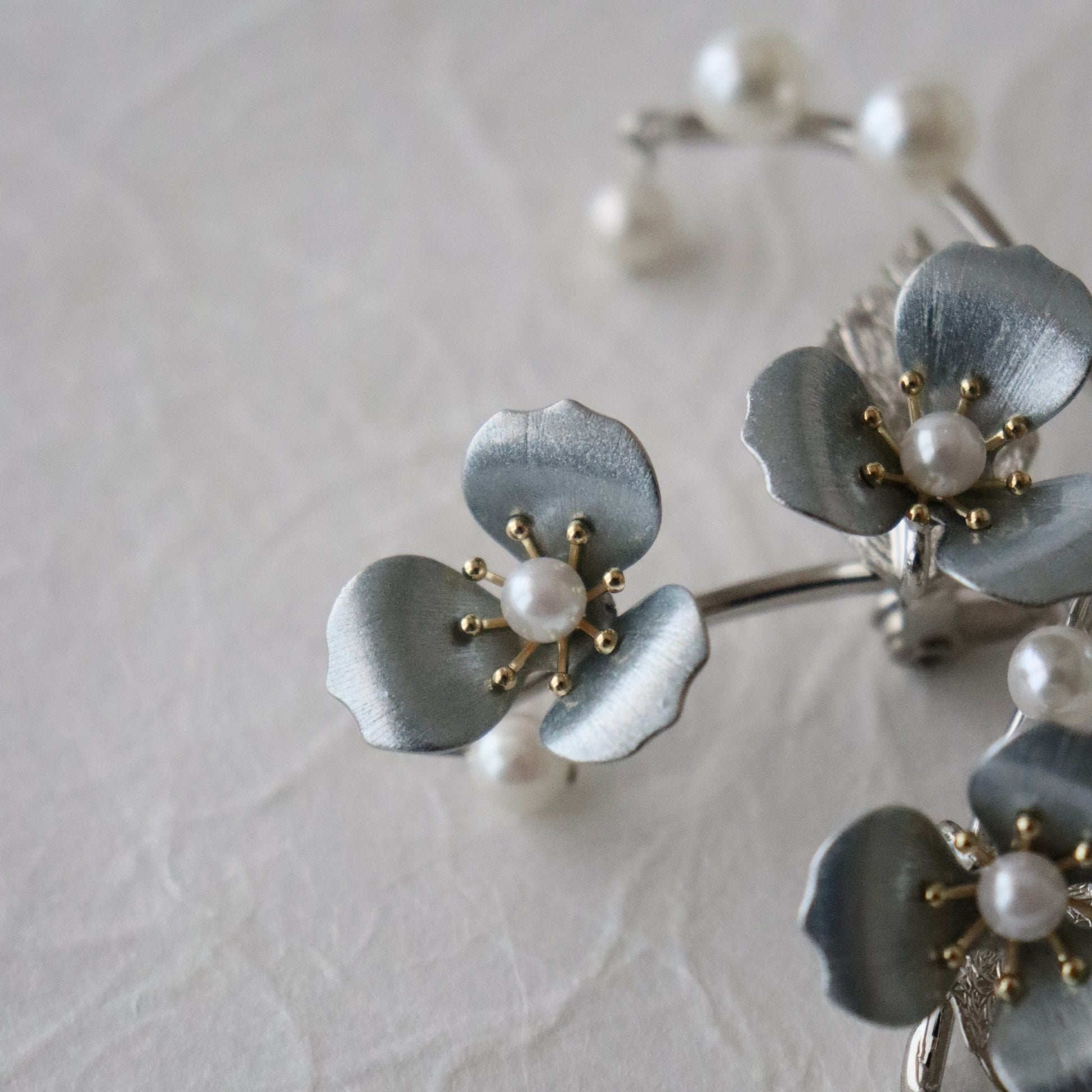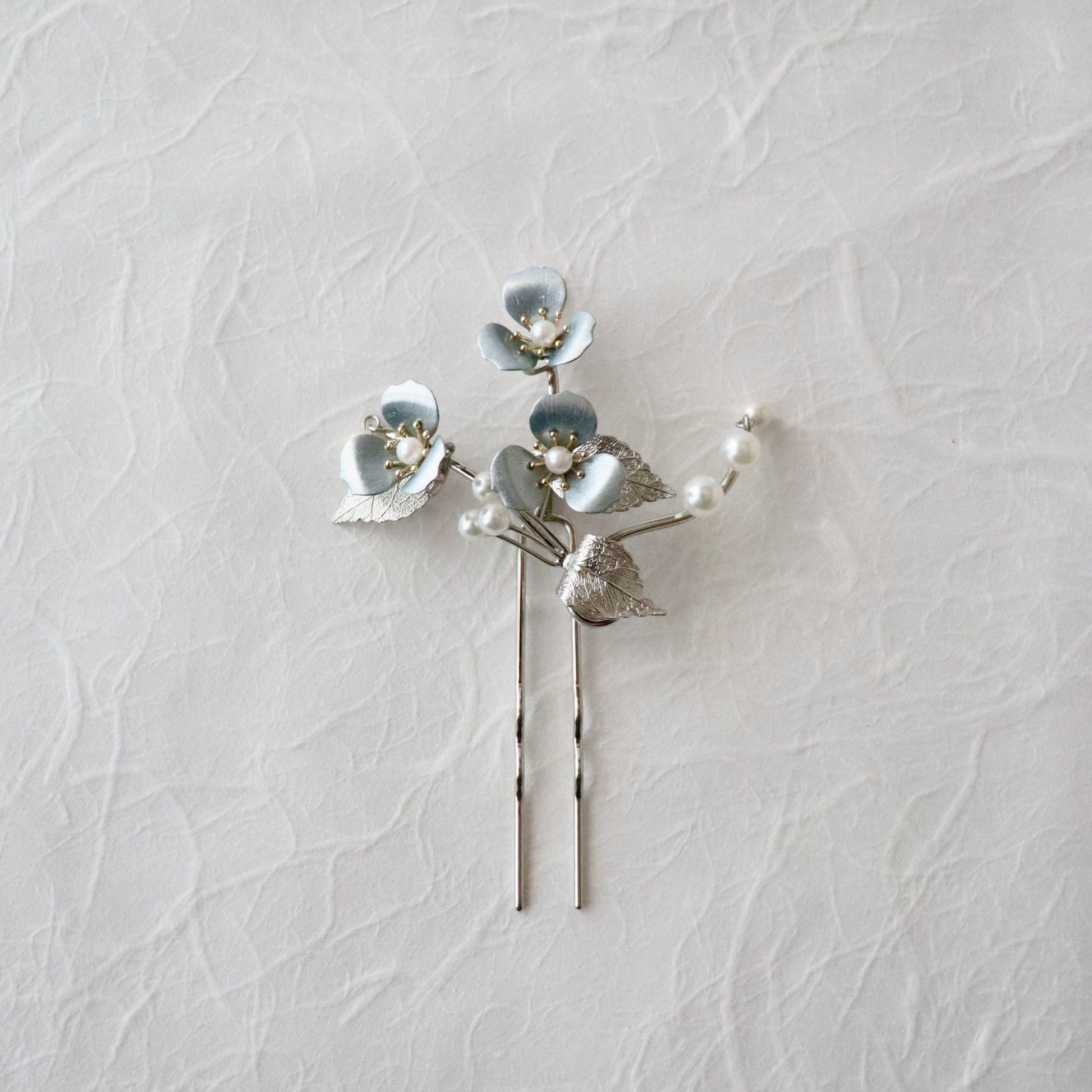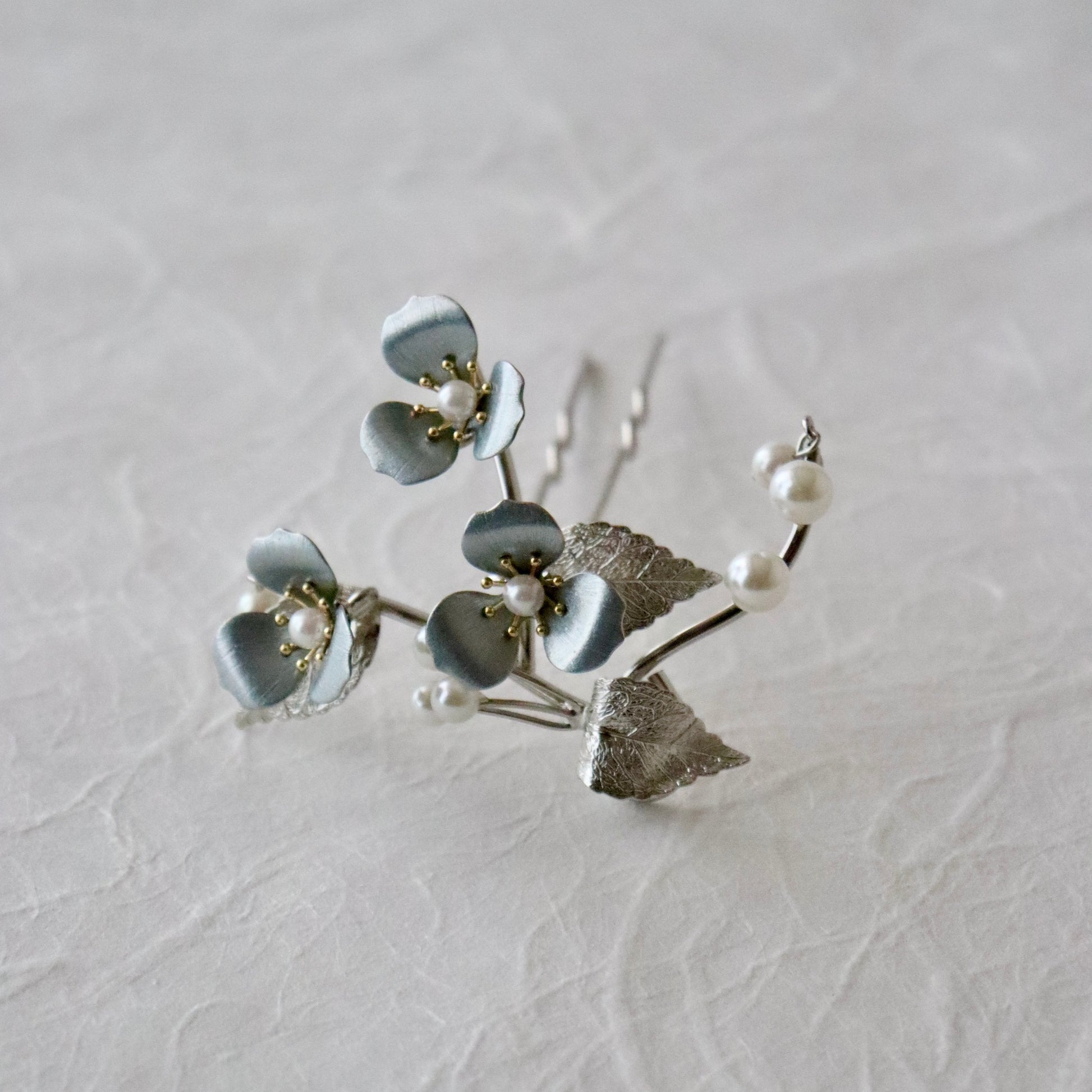 パールを模した装飾は洗練された高級感を漂わせます。軸の形状も髪に絡むような作りになっております。