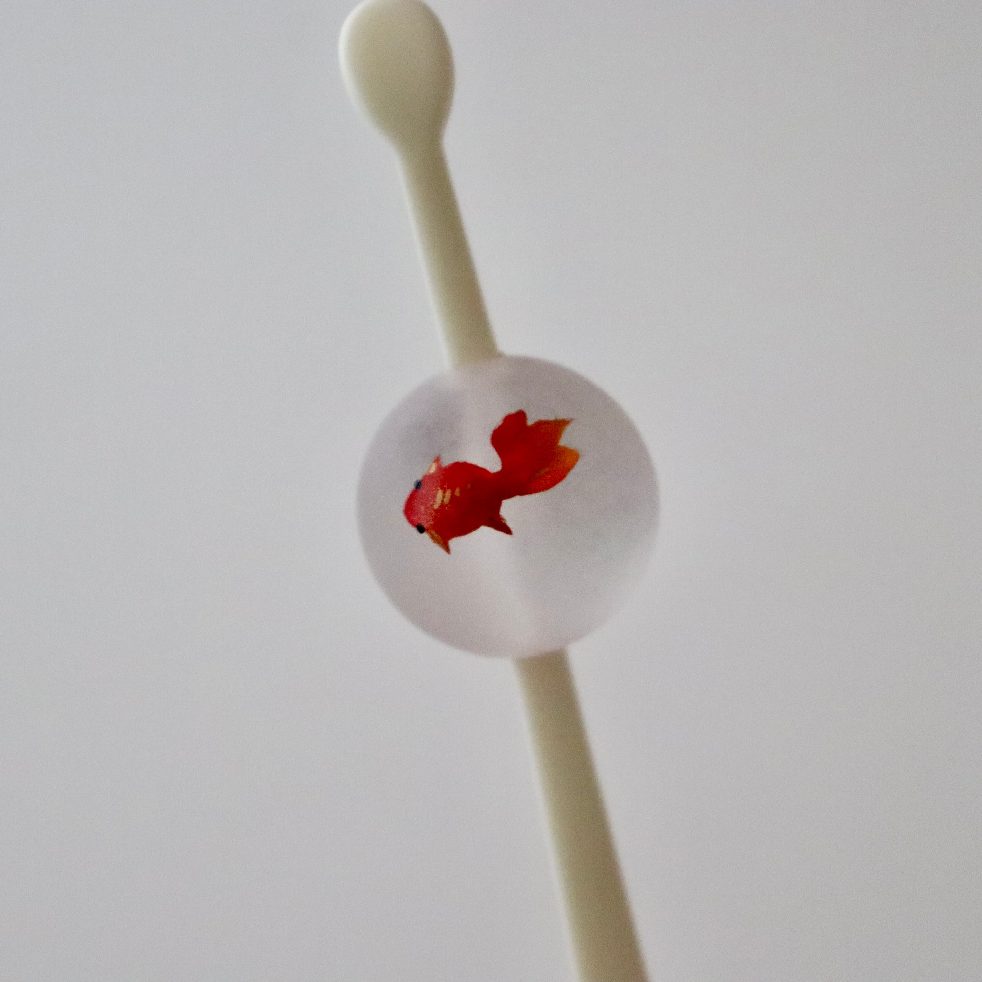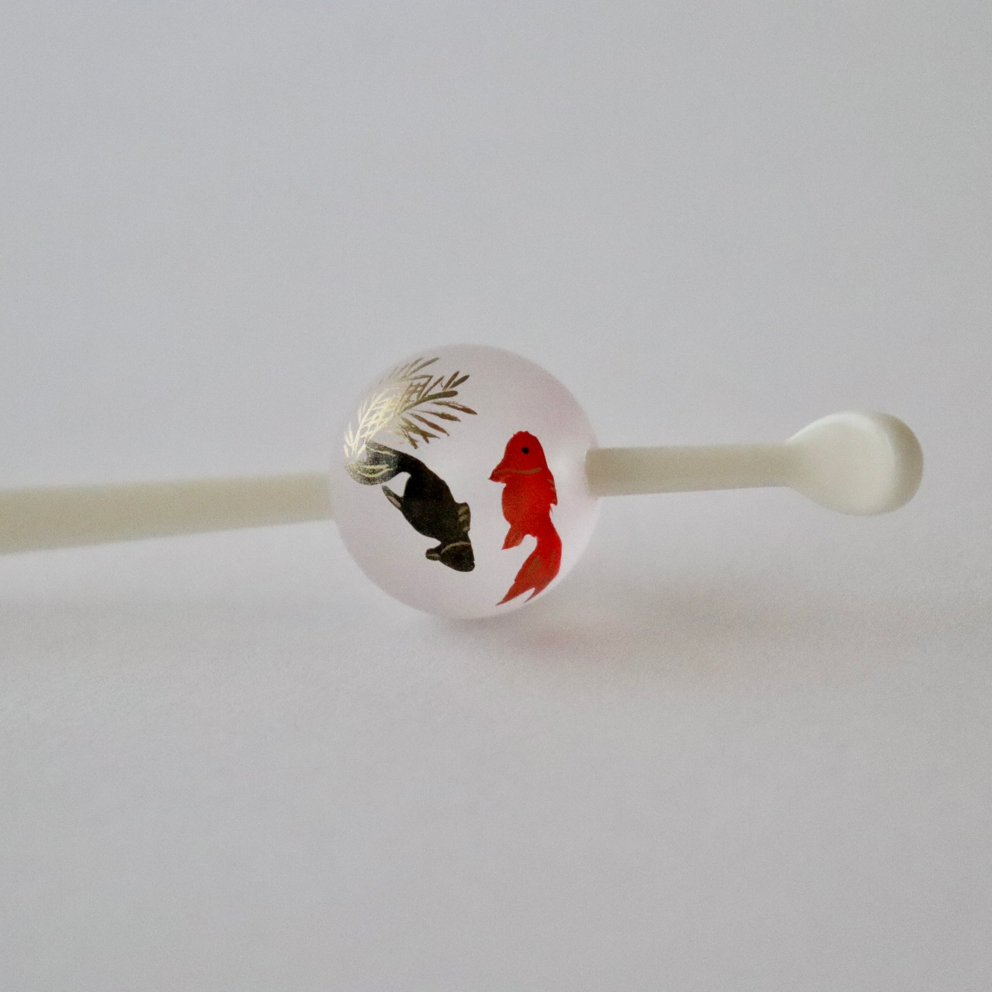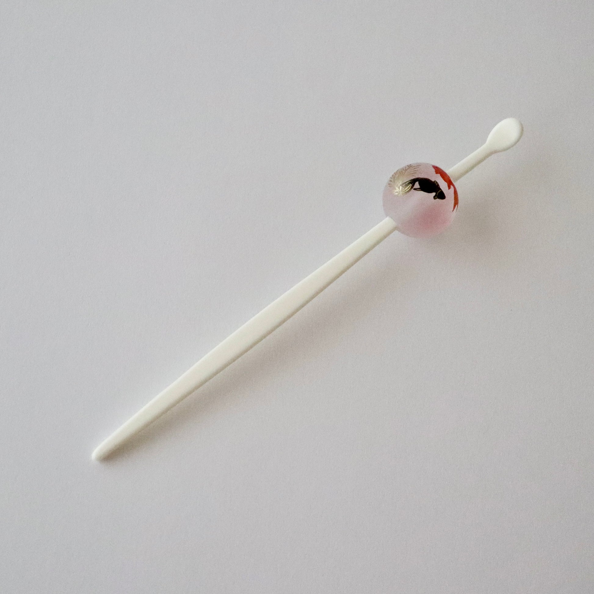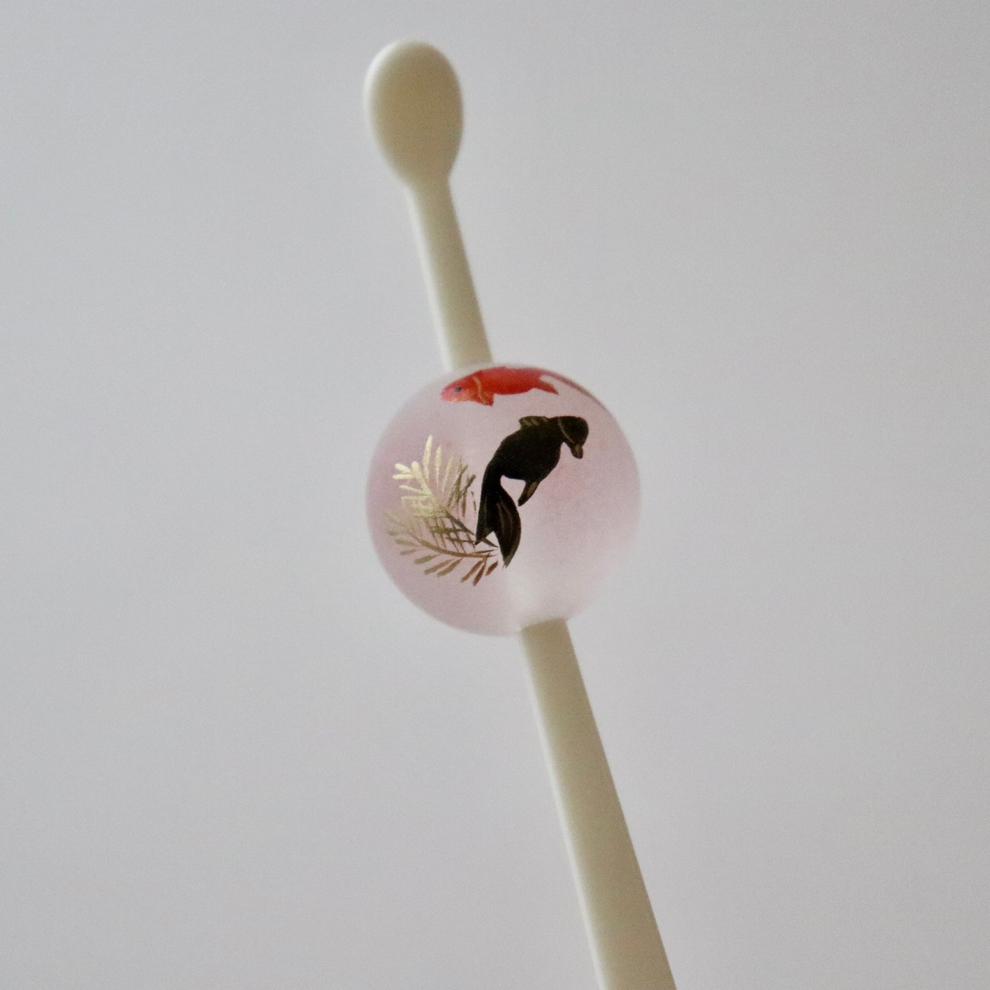 磨りガラスの様な質感の珠に金魚を描いた夏らしいかんざし。