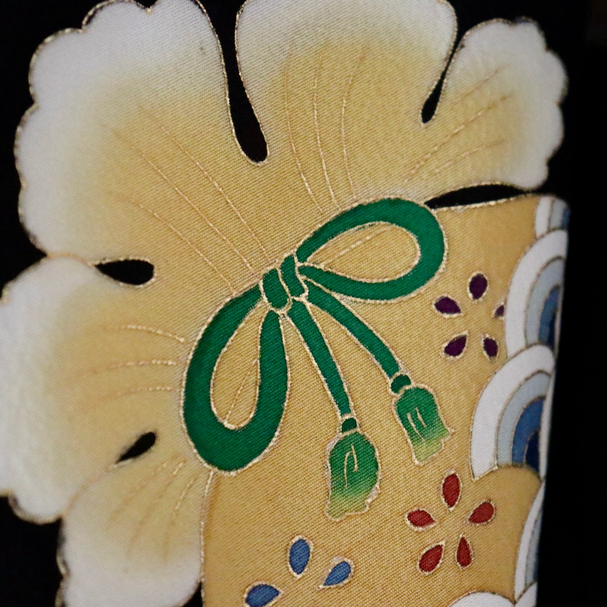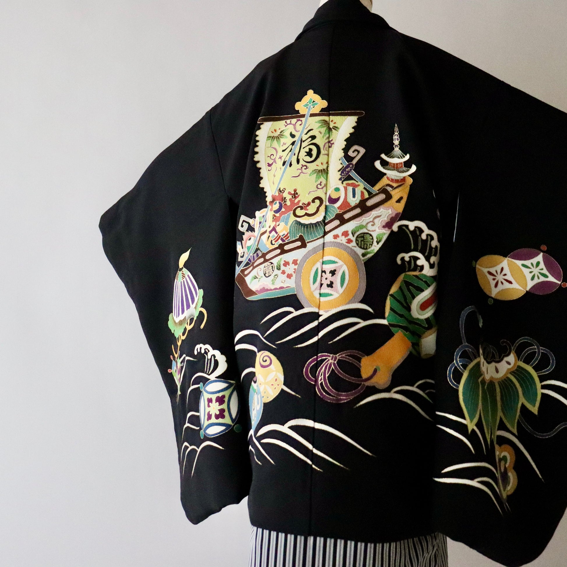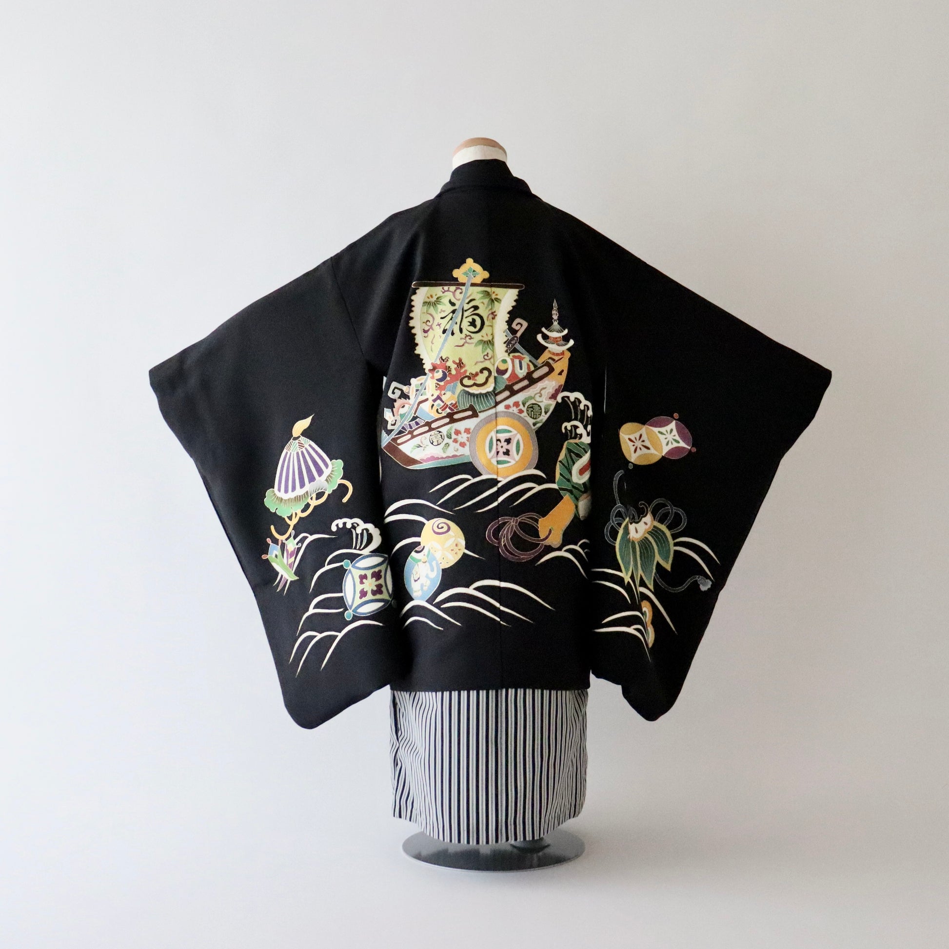 左向きの宝船は「入舟」と呼ばれたくさんの宝を積んだ船が港に入る様子から”幸せが訪れるように”という願いが込められております。大切なご子息の健やかな成長と幸せな未来を願う親御様の想いが美事に表現された御祝着セットです。