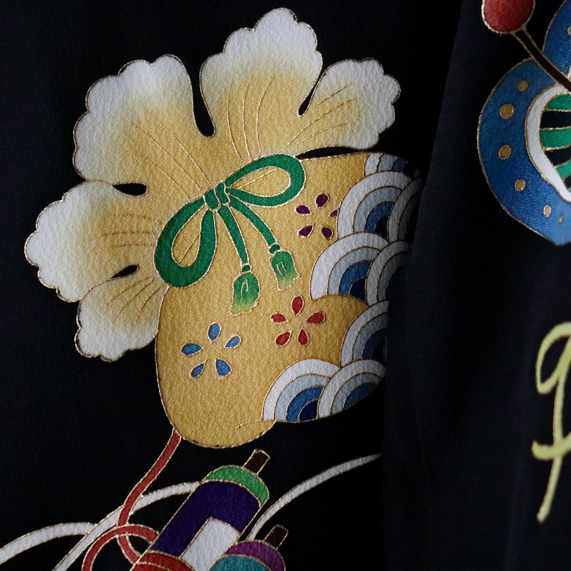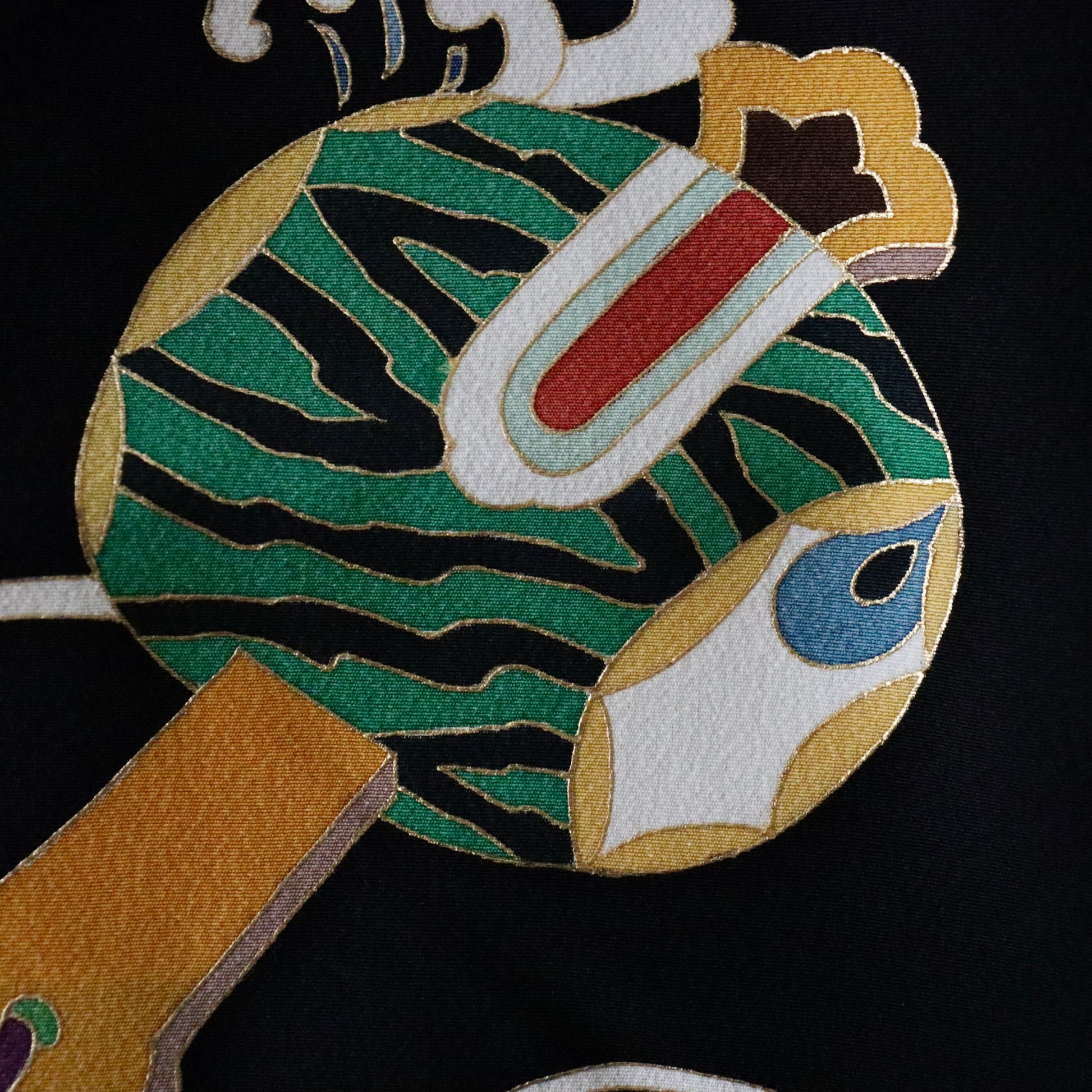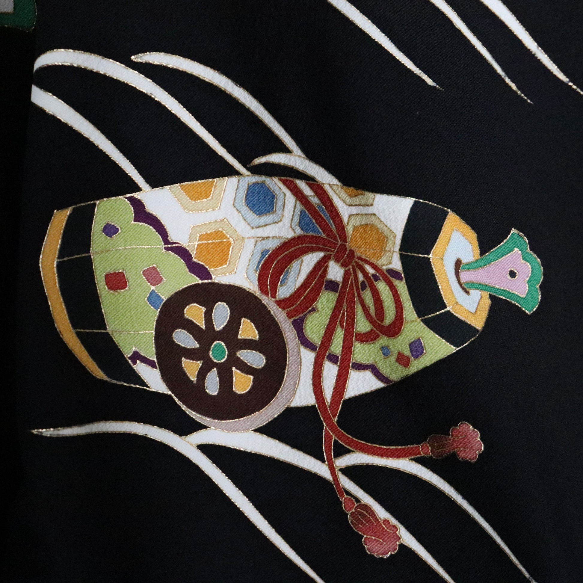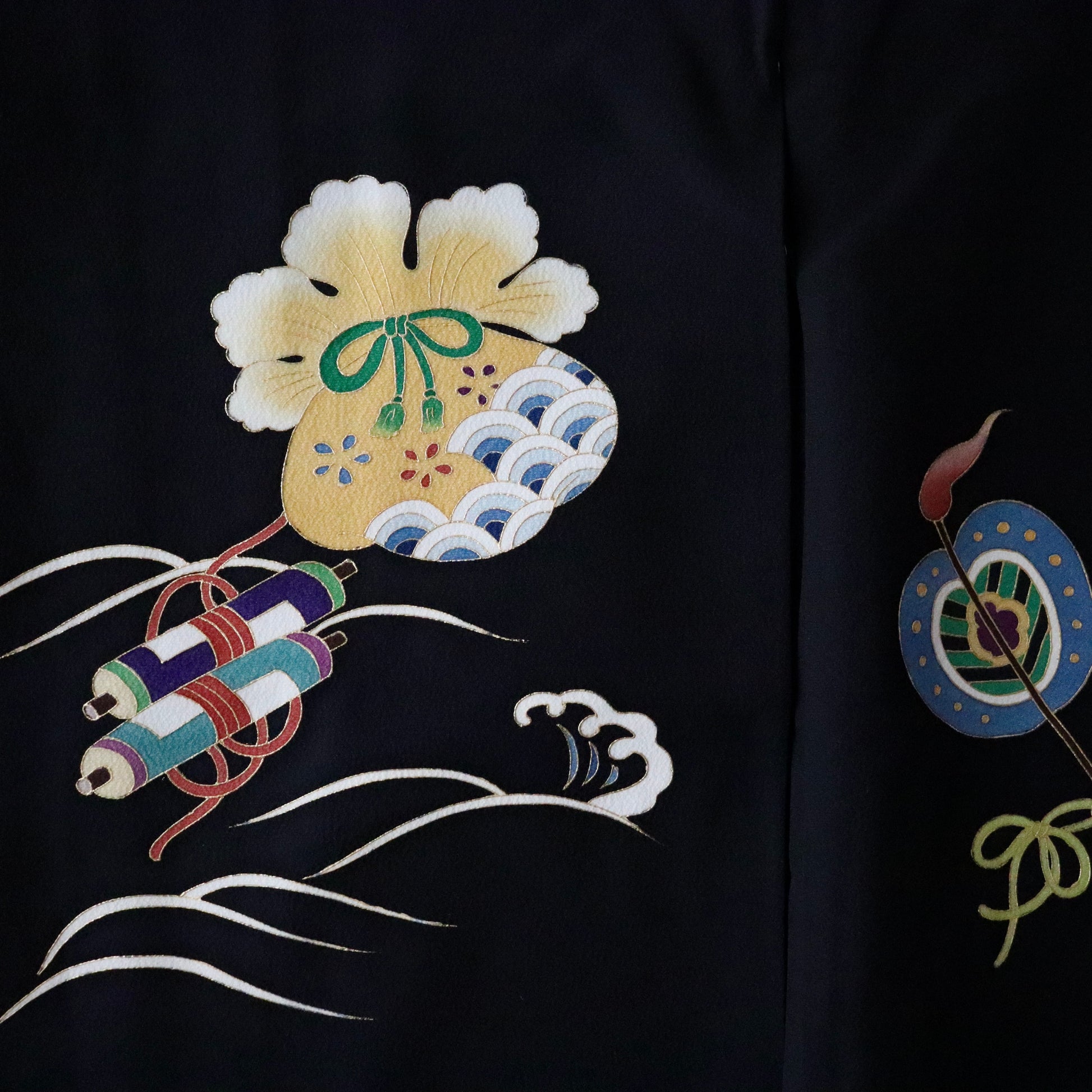 生地表情豊かな最上質の縮緬地に手描き友禅で宝船が美しく描いた本作は京友禅で名を馳せる『岡重』謹製。