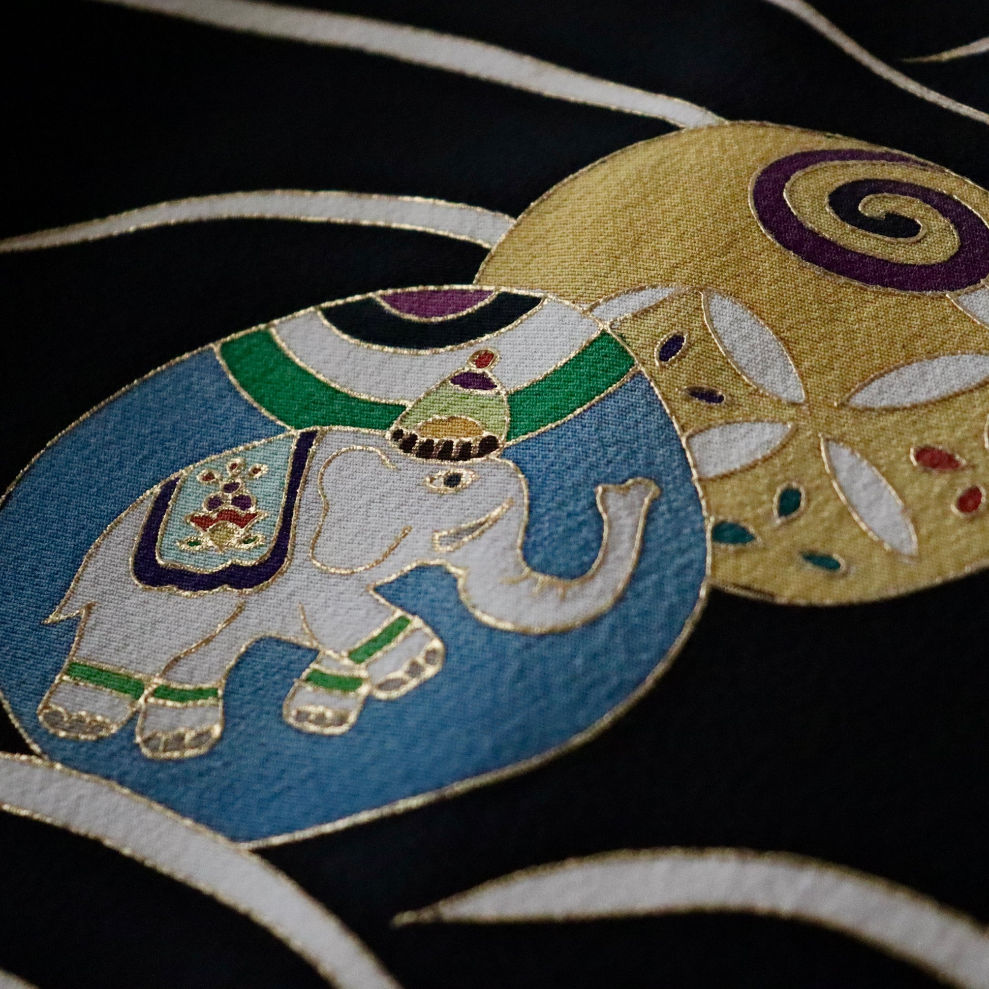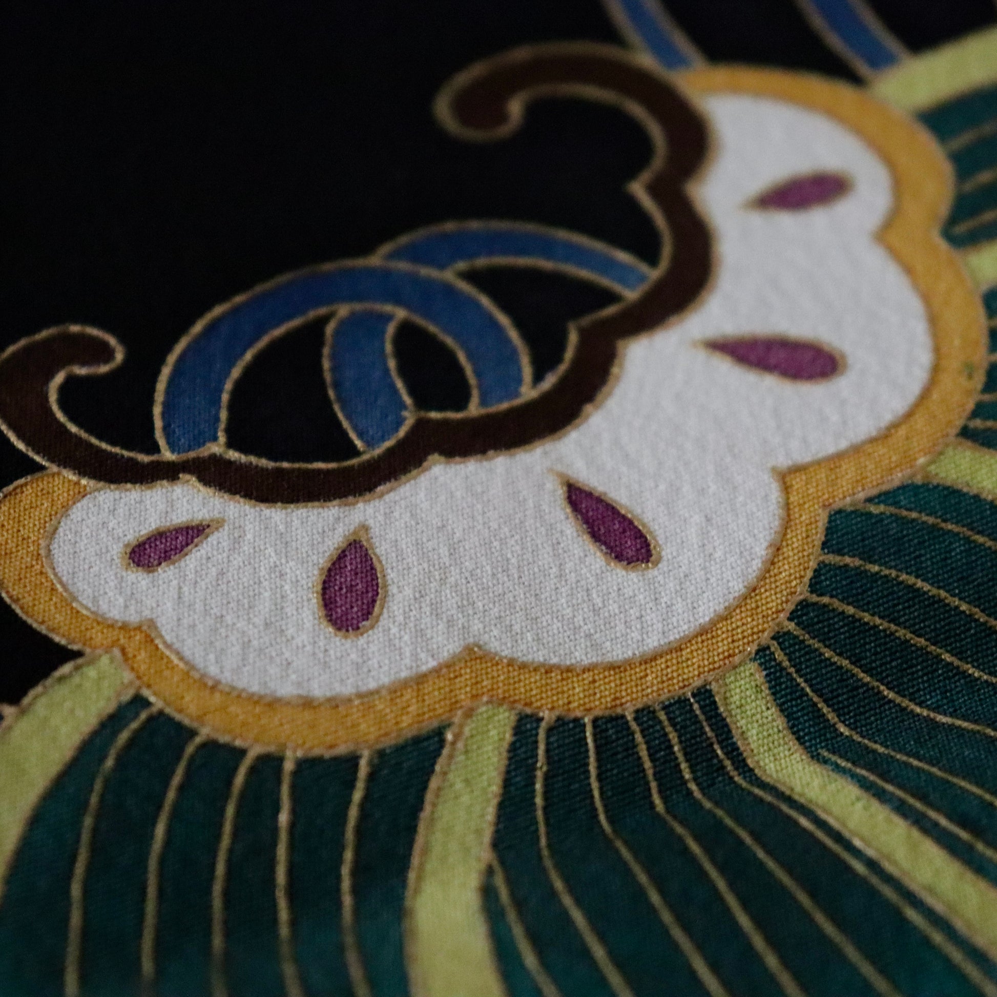 一眼で「岡重の仕事」と判る独自の柄描写に染料に対する並々ならぬこだわりが窺える色彩。