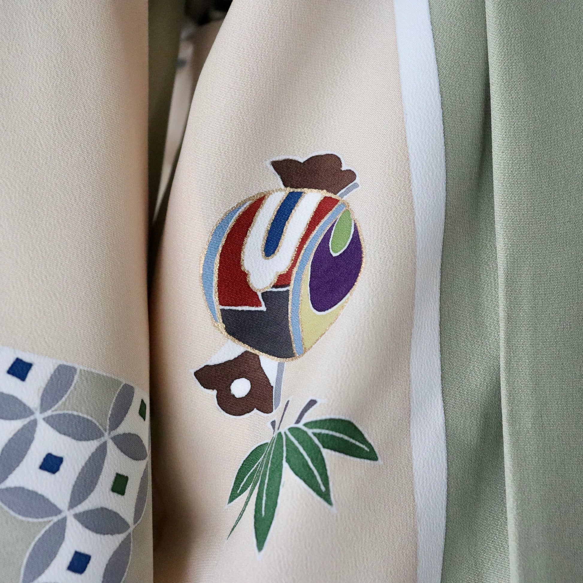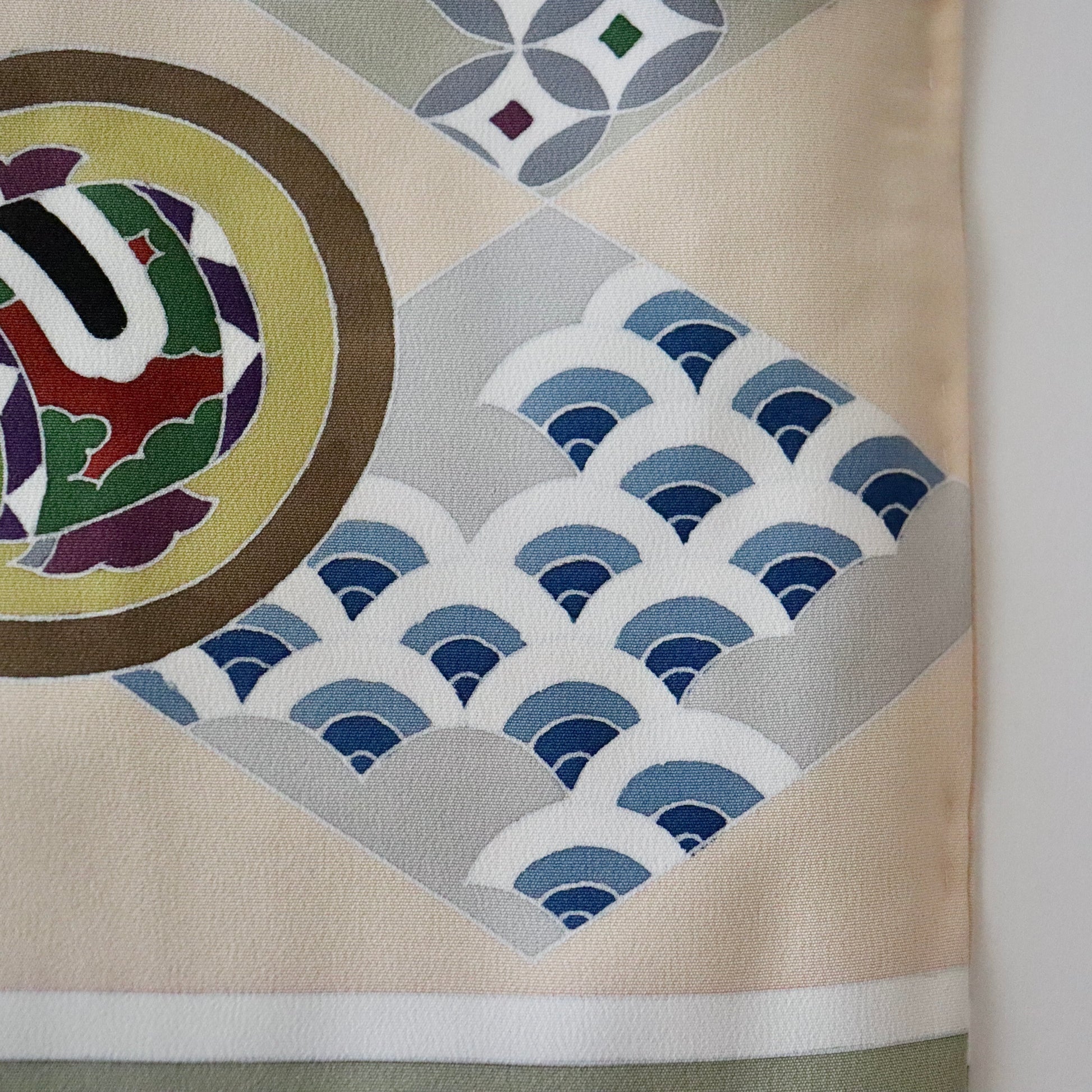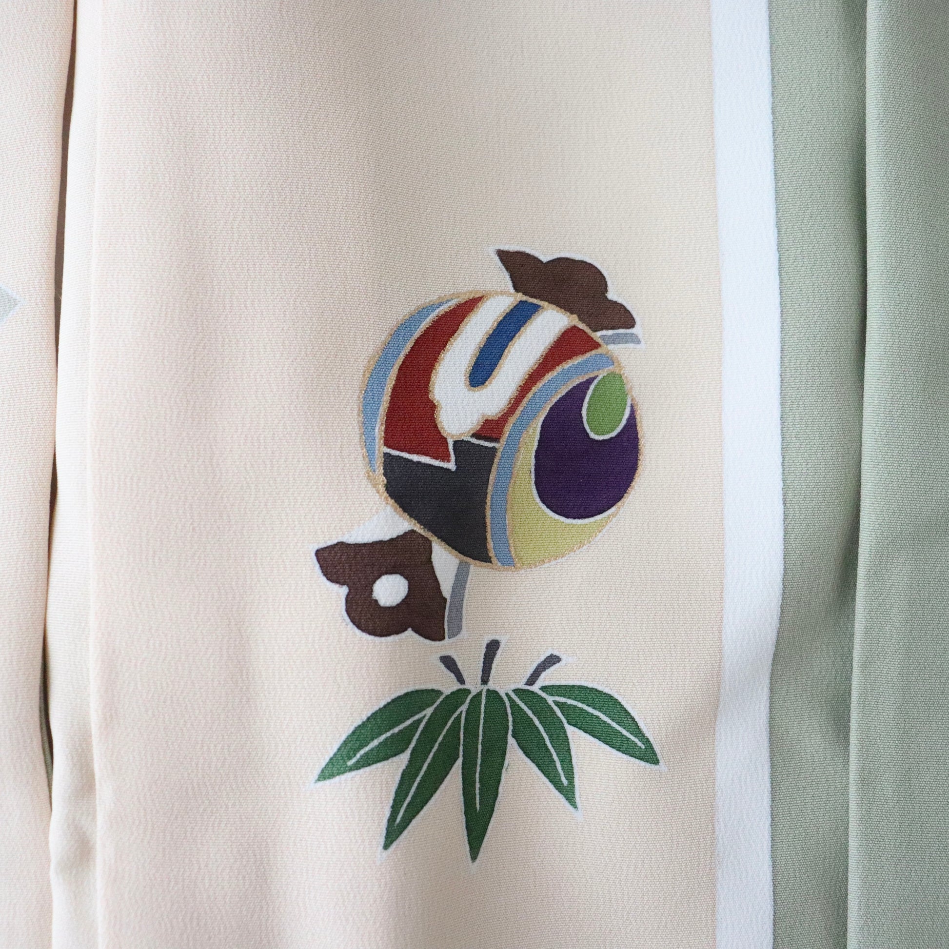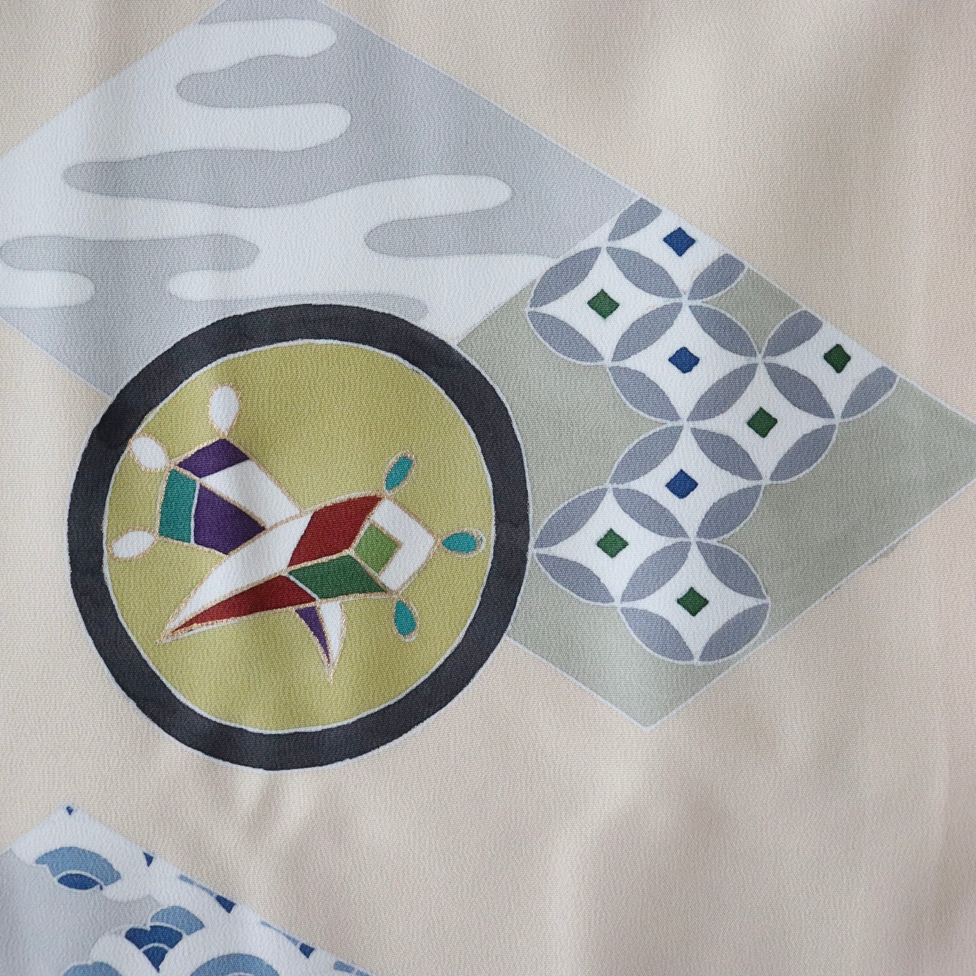 男児祝着の定番『兜』を基調にした一枚。淡色のコントラストが品のある雰囲気を醸し出す本作は柄一つ一つを丁寧な手描き友禅で染め上げています。「災いから身を守る」「立身出世」などの意味合いが込められた”兜”に「願いを叶える」とされる”小槌”。そして「決断力と行動力」を象徴する”軍配”。大切なご子息の健やかで明るい将来を願うご家族様の思いが美しく表現された御祝着セットです。