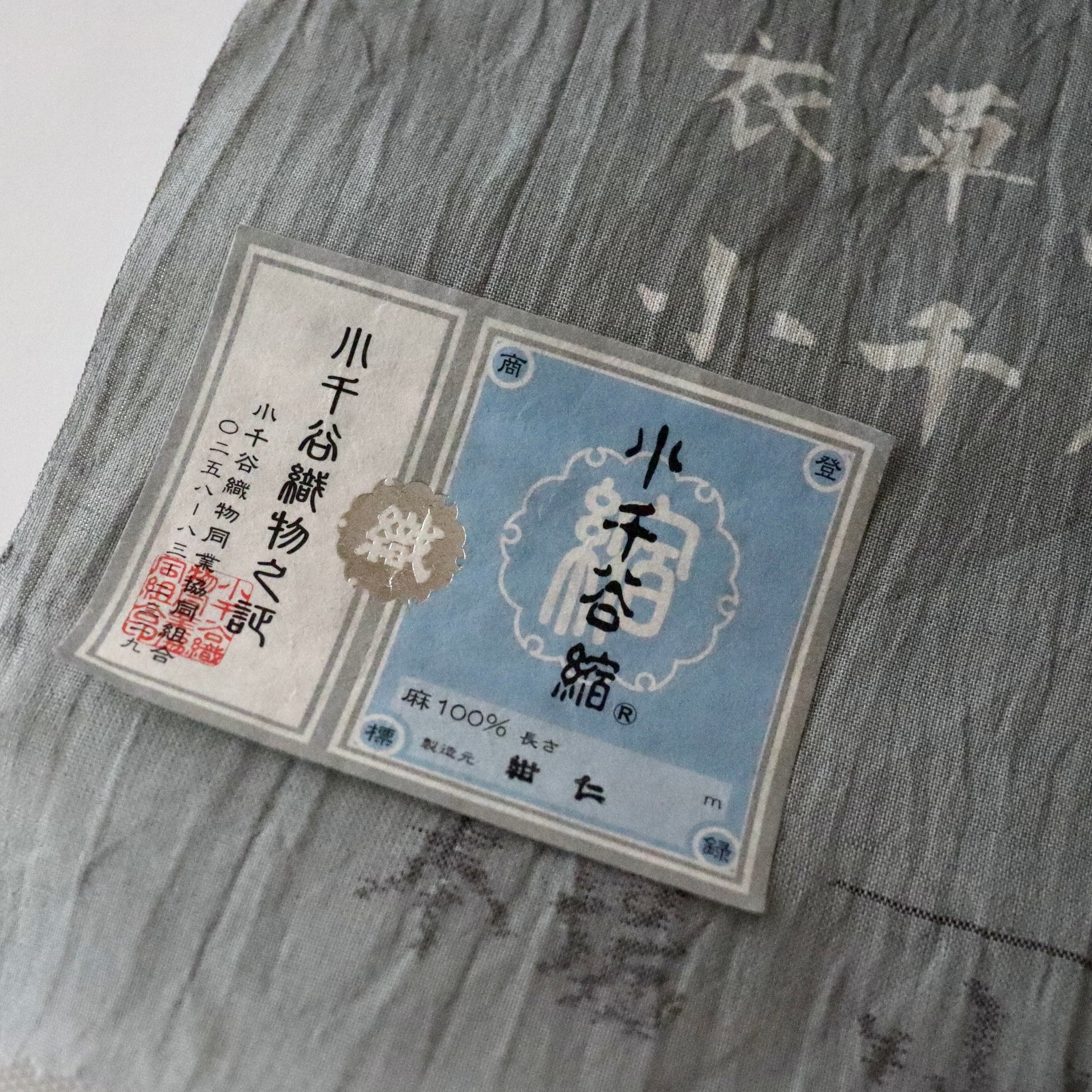 新潟片貝「紺仁」謹製の型染 小千谷ちぢみです。
