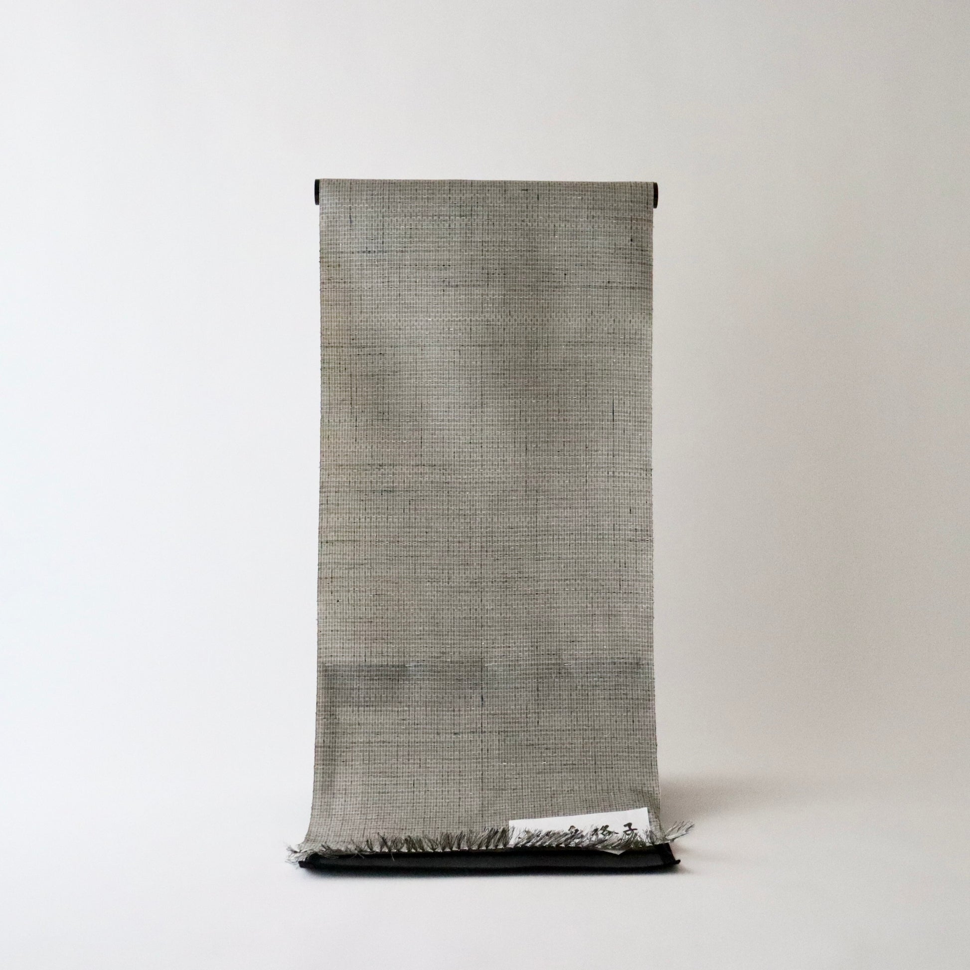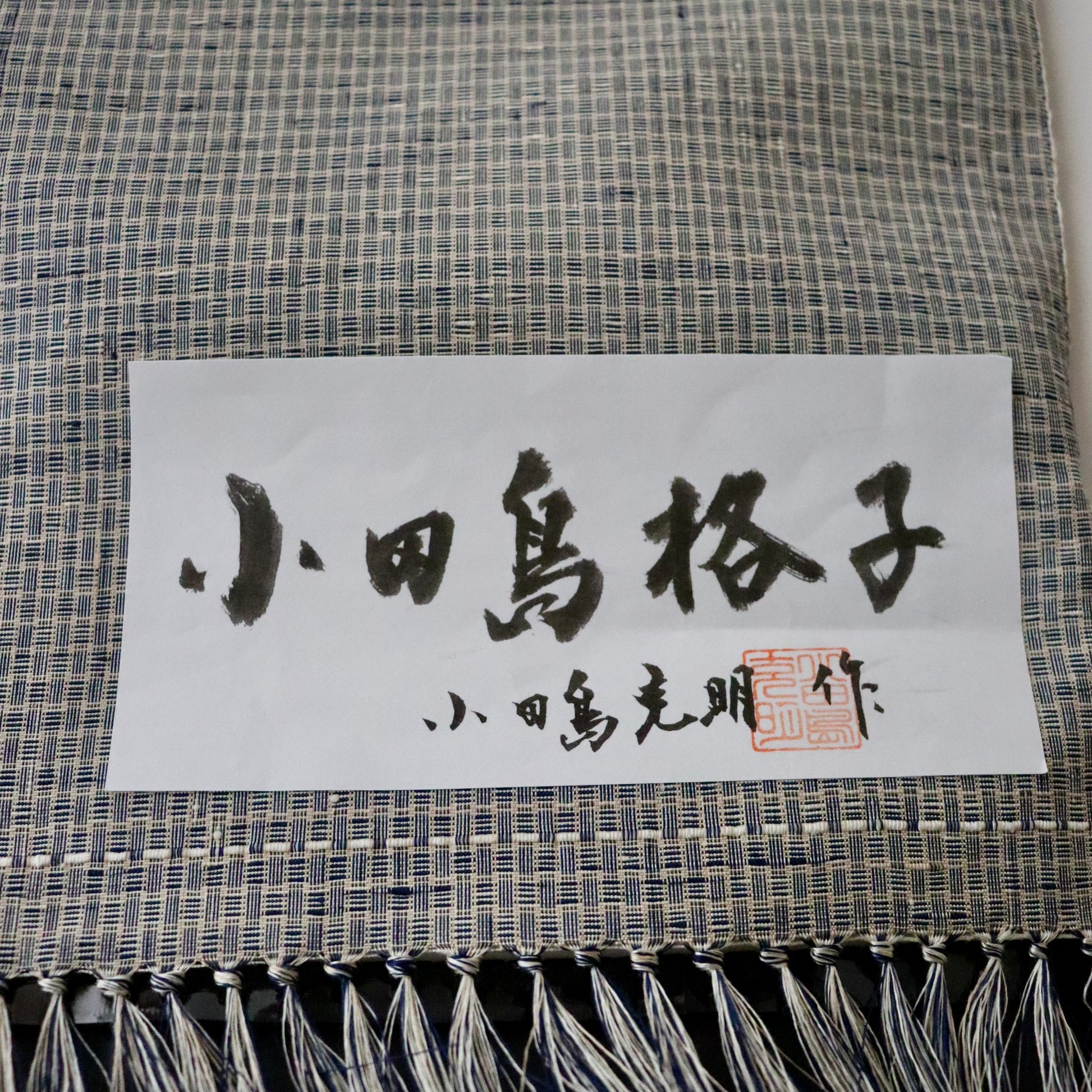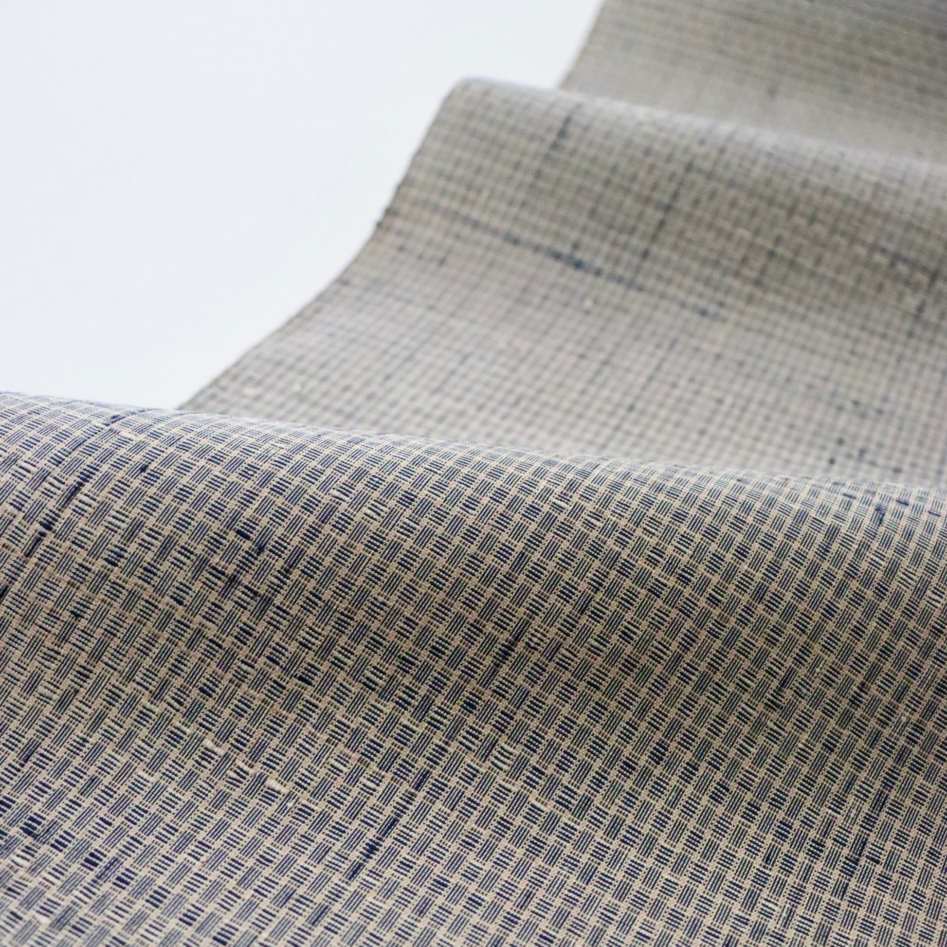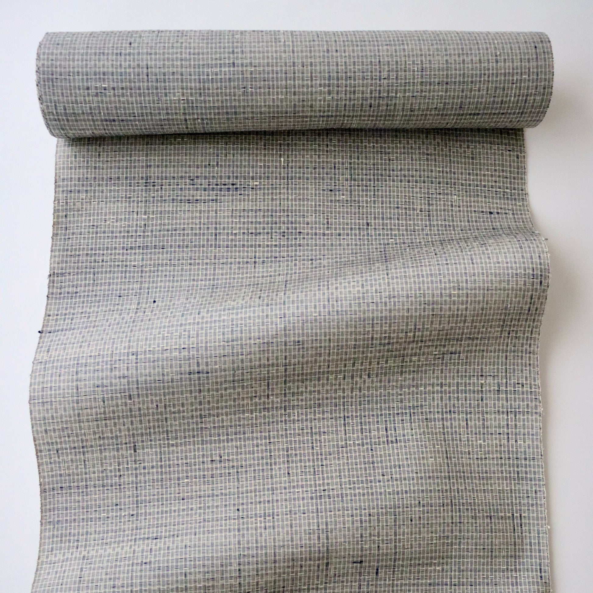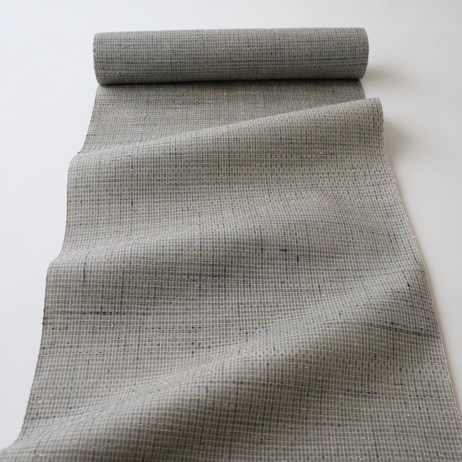 新潟小千谷の織元「おだきん - 小田島克明」謹製の小田島格子。遠目には無地に見える細やかな網代格子を丁寧に織り上げた本作。