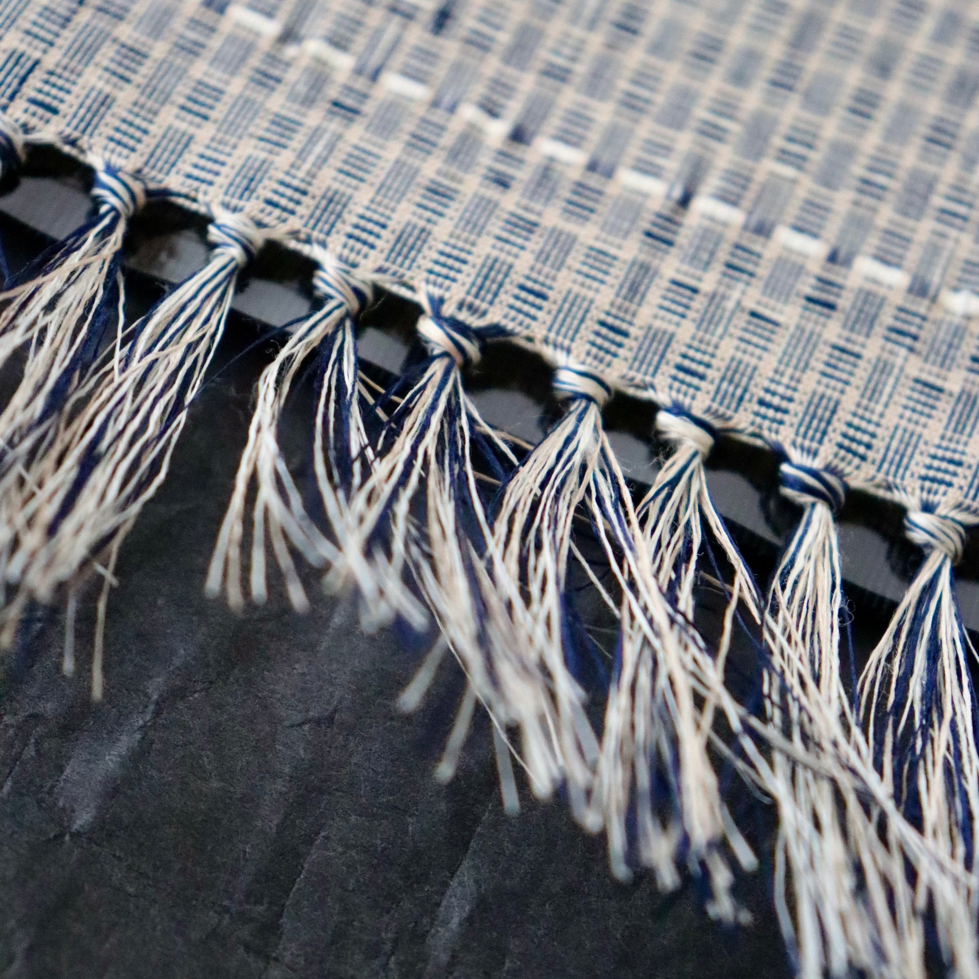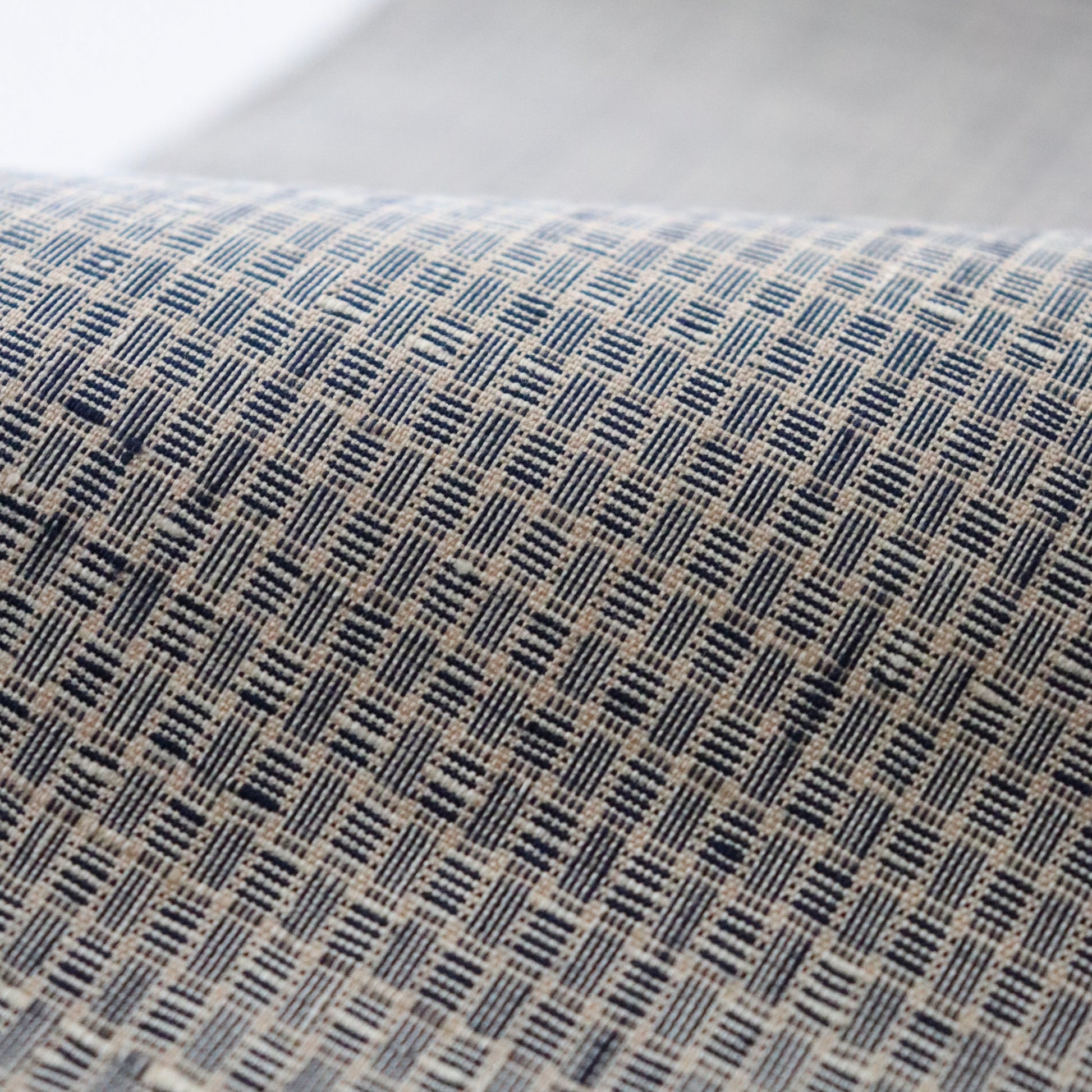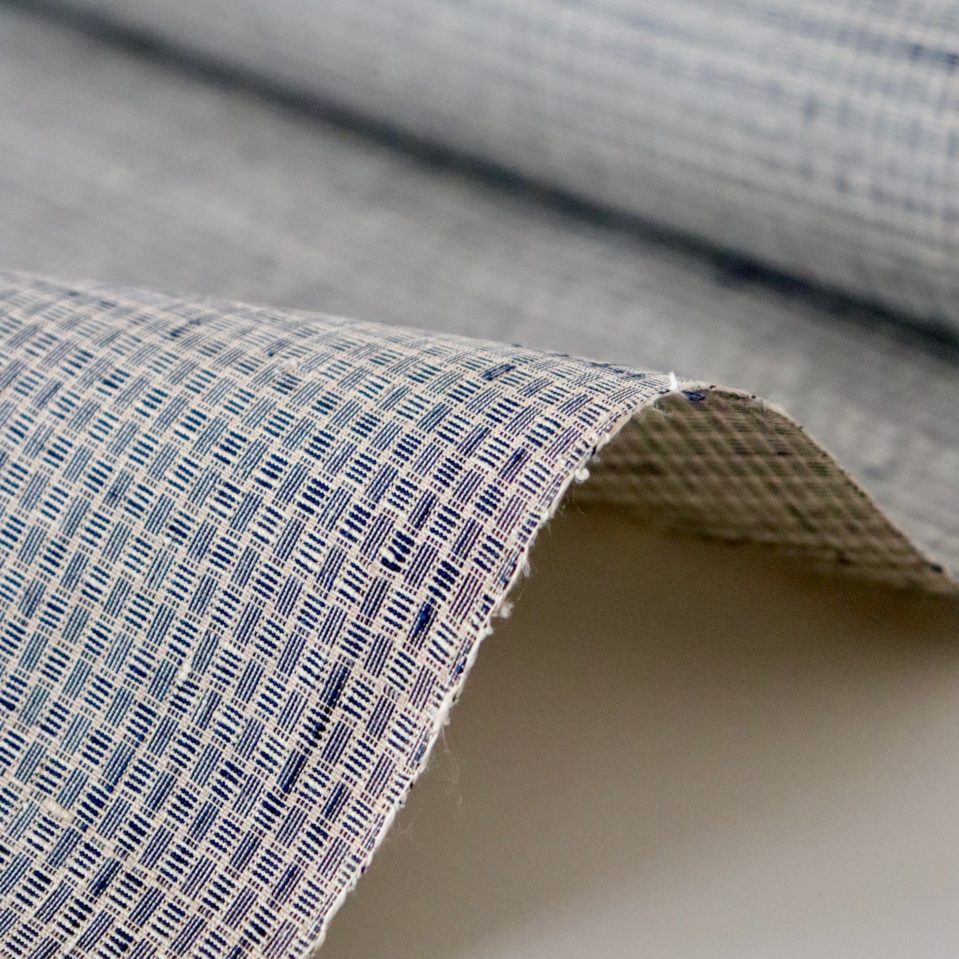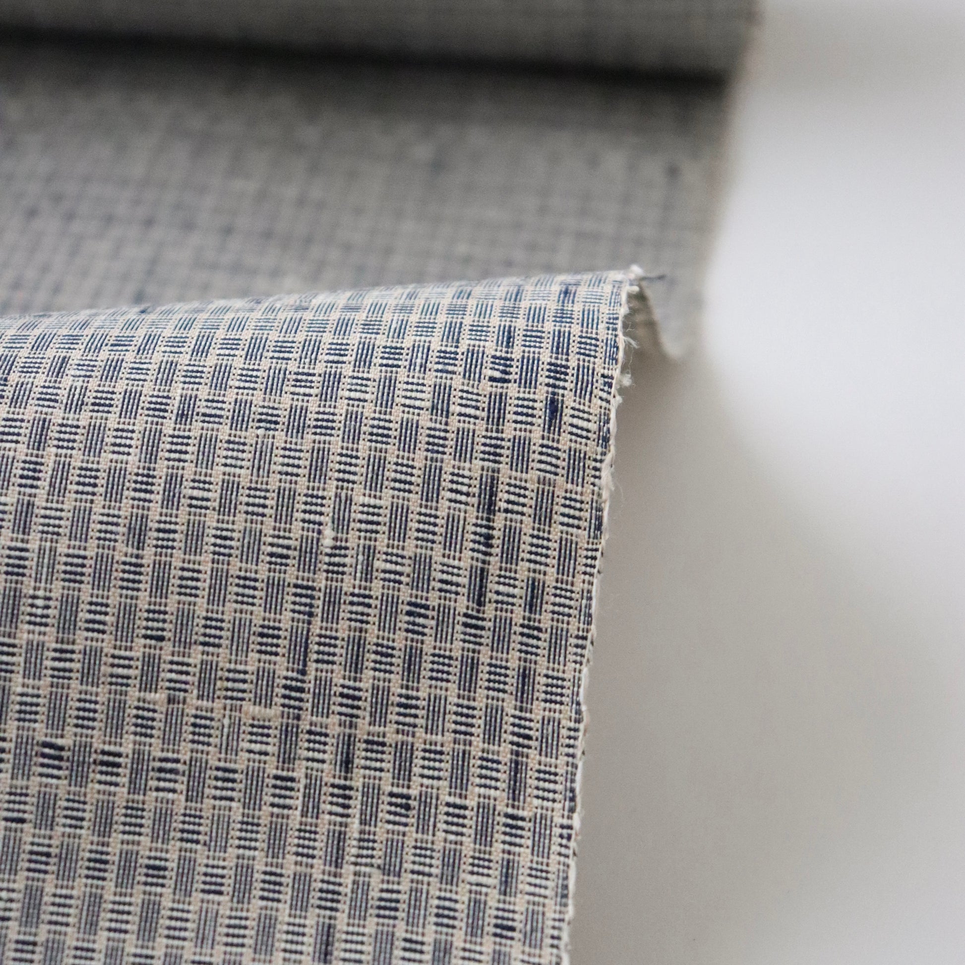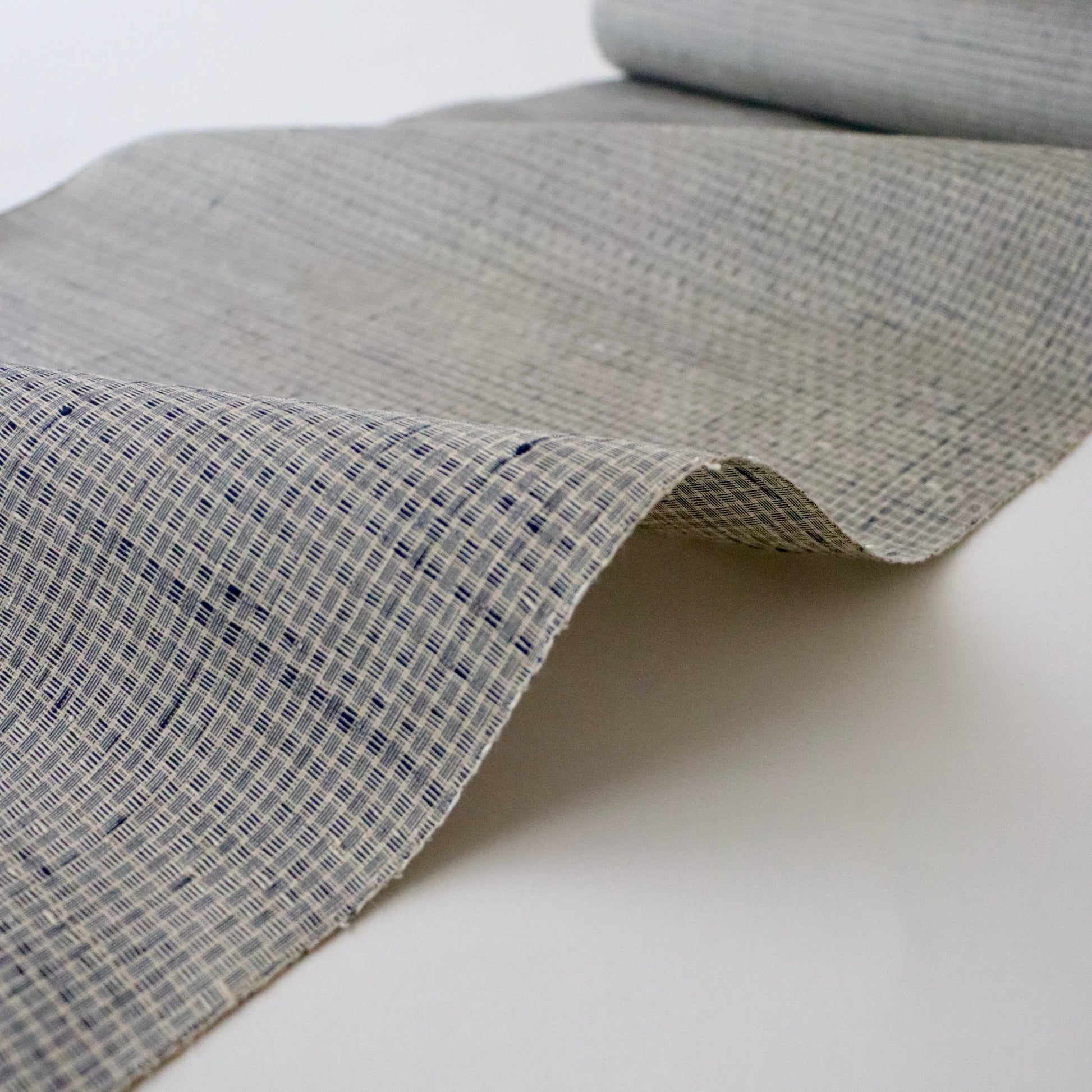 新潟小千谷の織元「おだきん - 小田島克明」謹製の小田島格子。遠目には無地に見える細やかな網代格子を丁寧に織り上げた本作。
