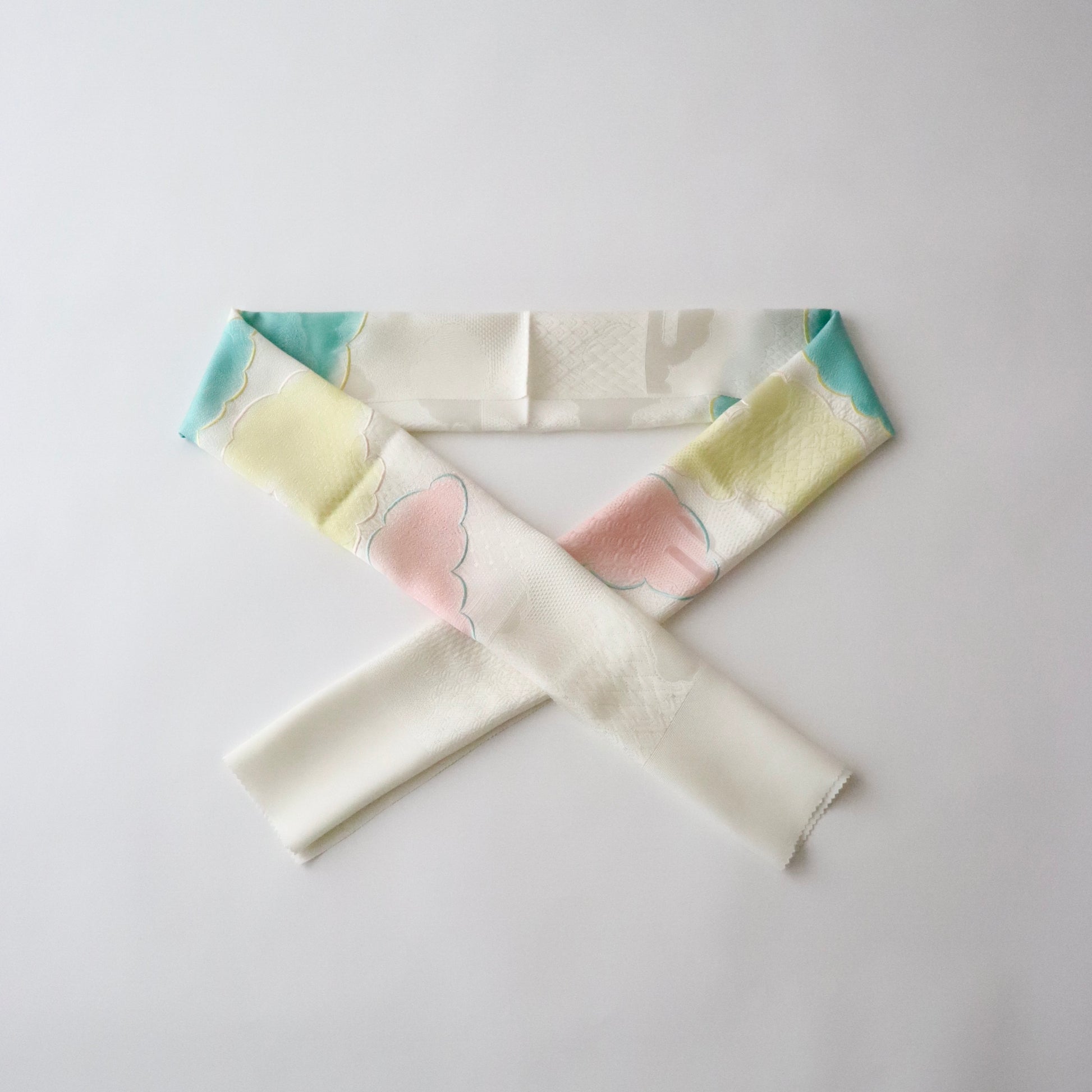 帯揚げ「雲三色暈し雲取横振刺繍 - yel-pnk」和小物さくら