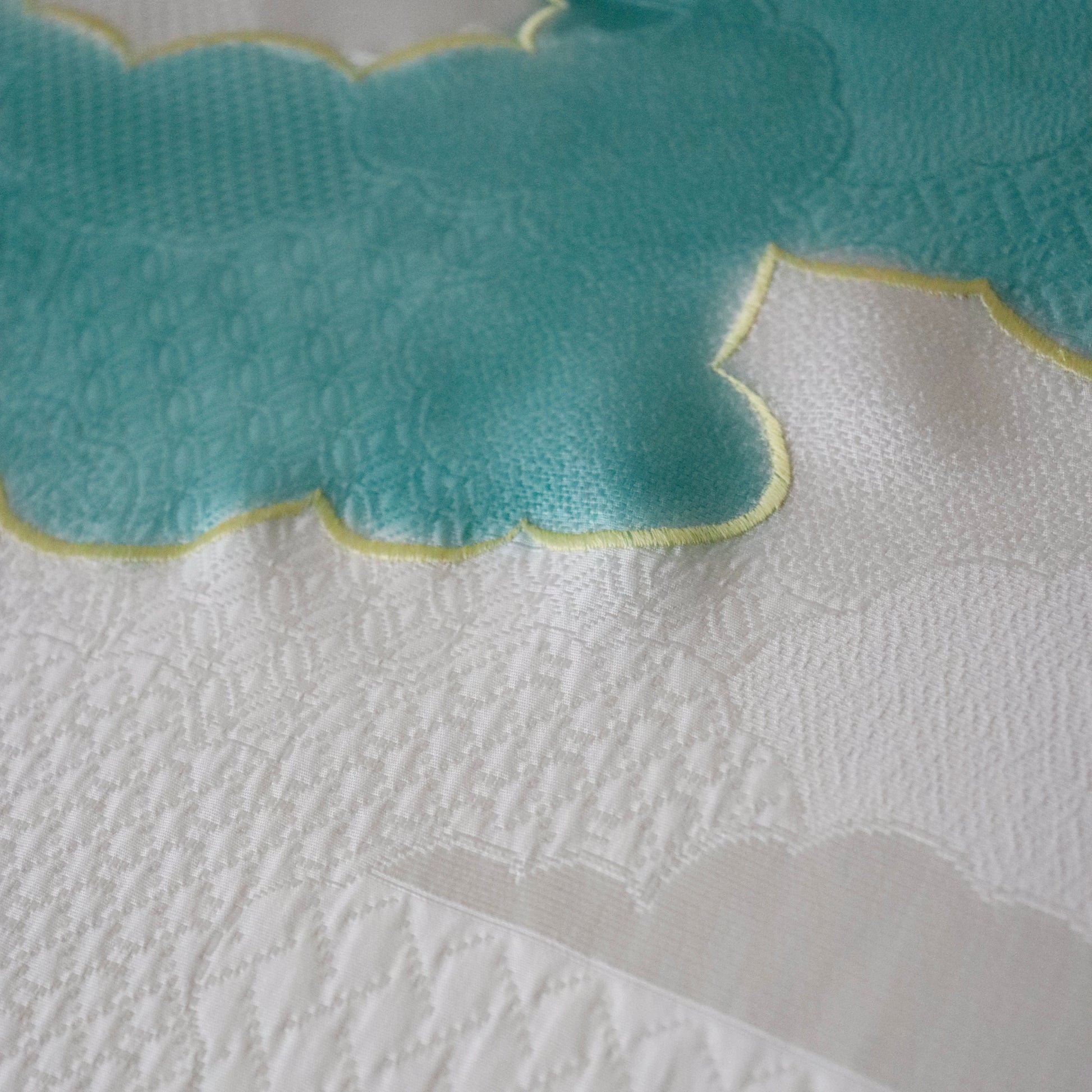 地紋が洒落ている本作。暈し染で表現した雲取文様を刺繍で縁取るという手の込んだ仕上がり。柄の描写に職人の手仕事の温かみと和小物さくらならではの洗練された意匠力を感じます。色合いもとても素敵。カジュアルからセミフォーマルスタイルにご提案しておりますので、皆様思い思いのスタイルのアクセントに取り入れてみて下さい。