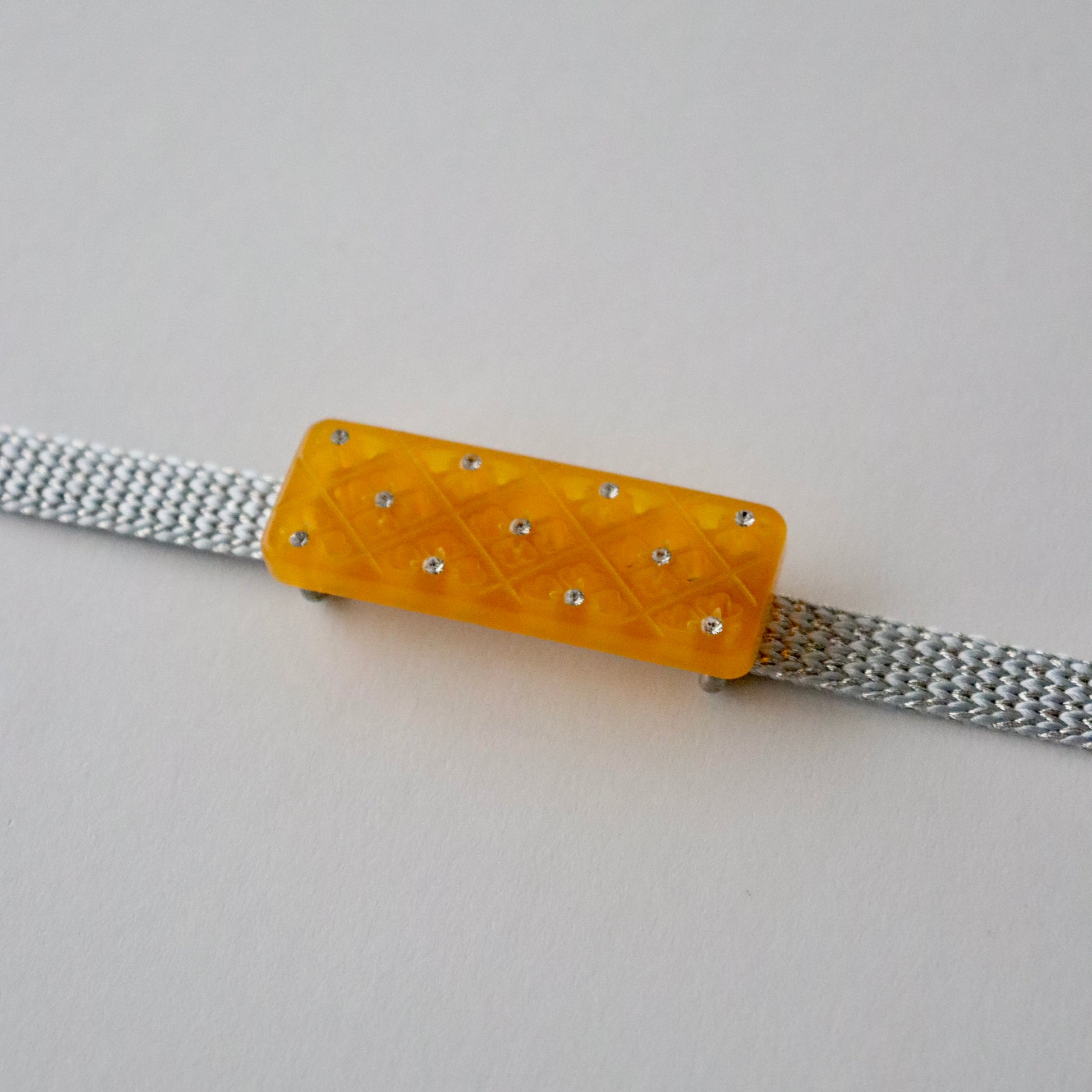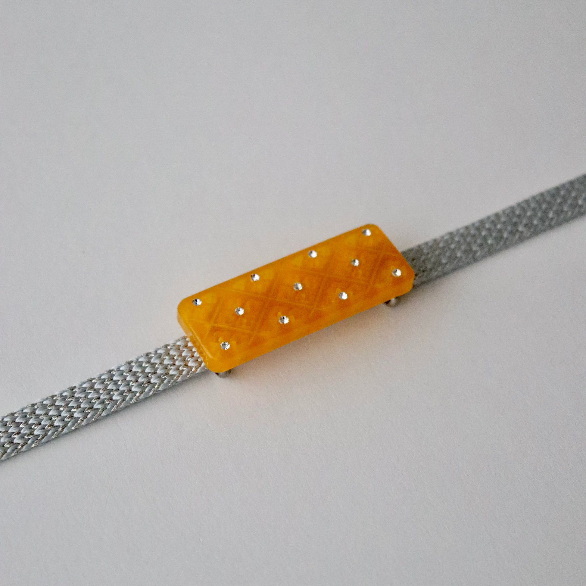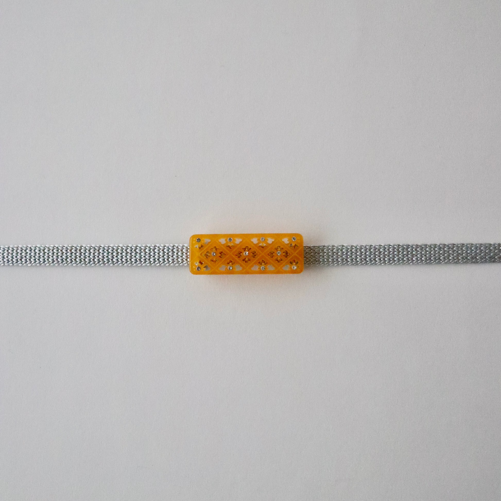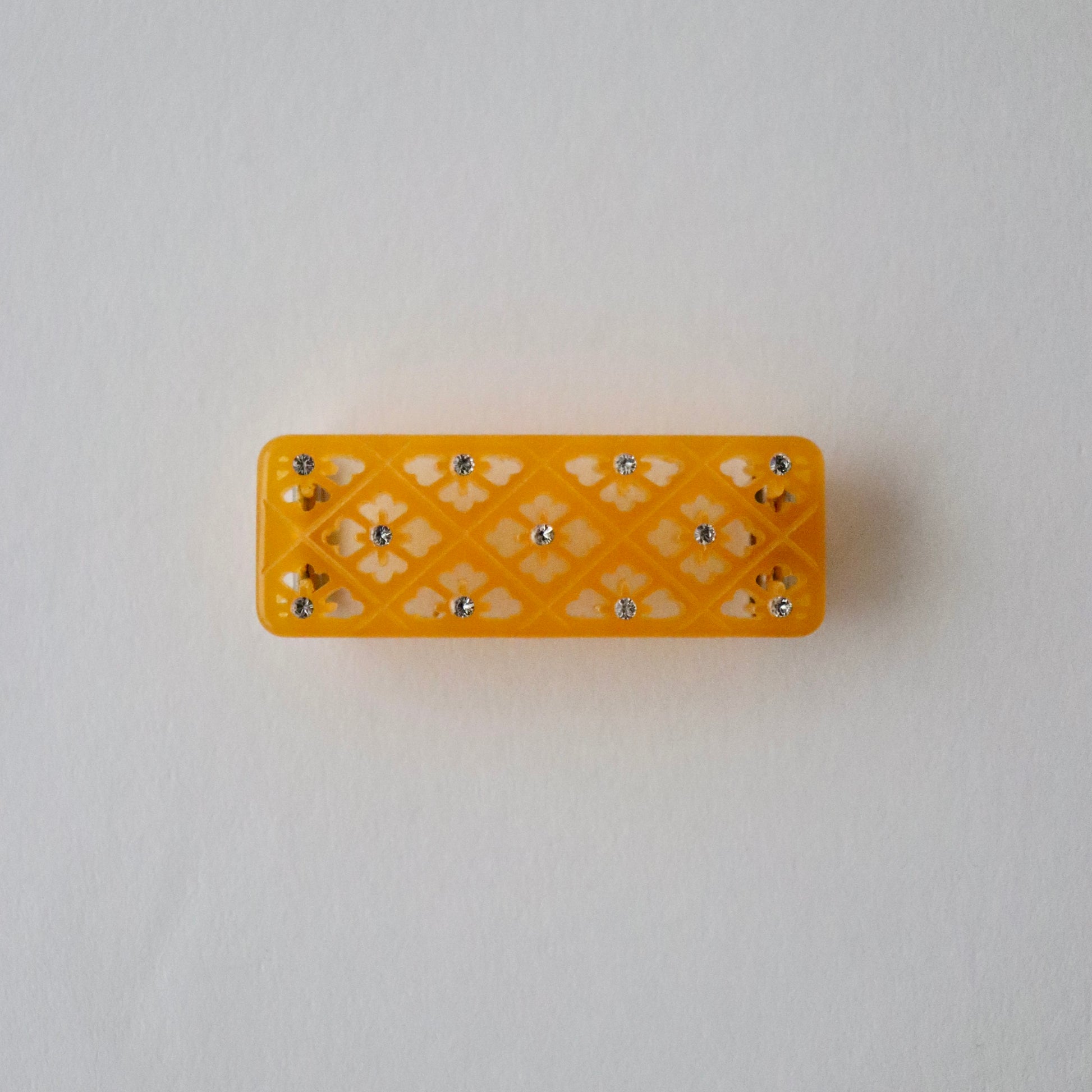 透かし彫りで菱菊を表した帯留です。