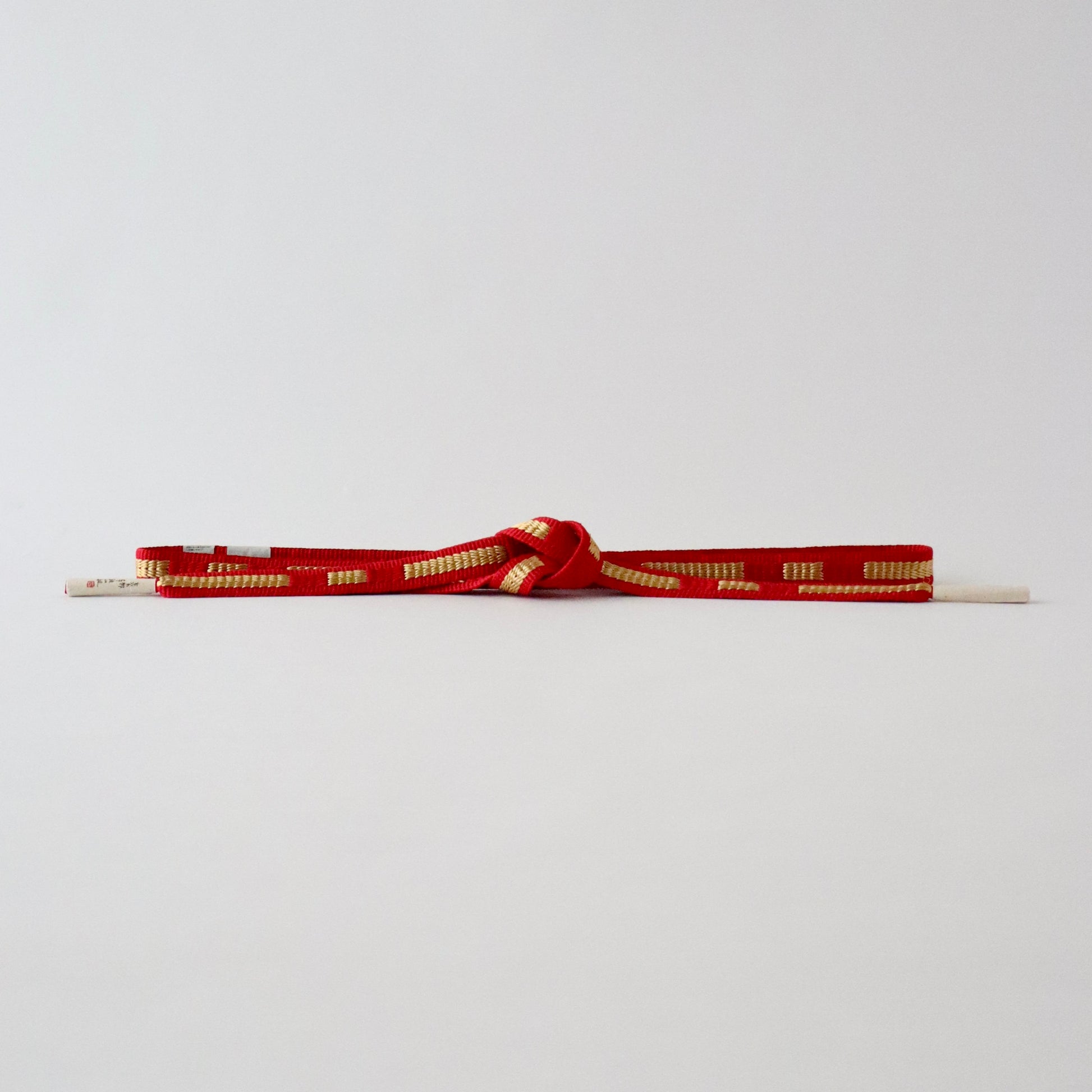 京都の和装小物専門店「大原商店」謹製の帯締め「三段綾竹組 - 君ヶ袖」です。奈良時代から伝わる伝統的な組技法”綾竹組”で仕上げられた本作。一般的な振袖向けの帯締めと比べやや幅を持たせ、シンプルな意匠ながらもしっかりとした存在感のある仕上がりに。綾竹組の特徴でもあるしなやかな組表情も相まった気品溢れる一品となっております。