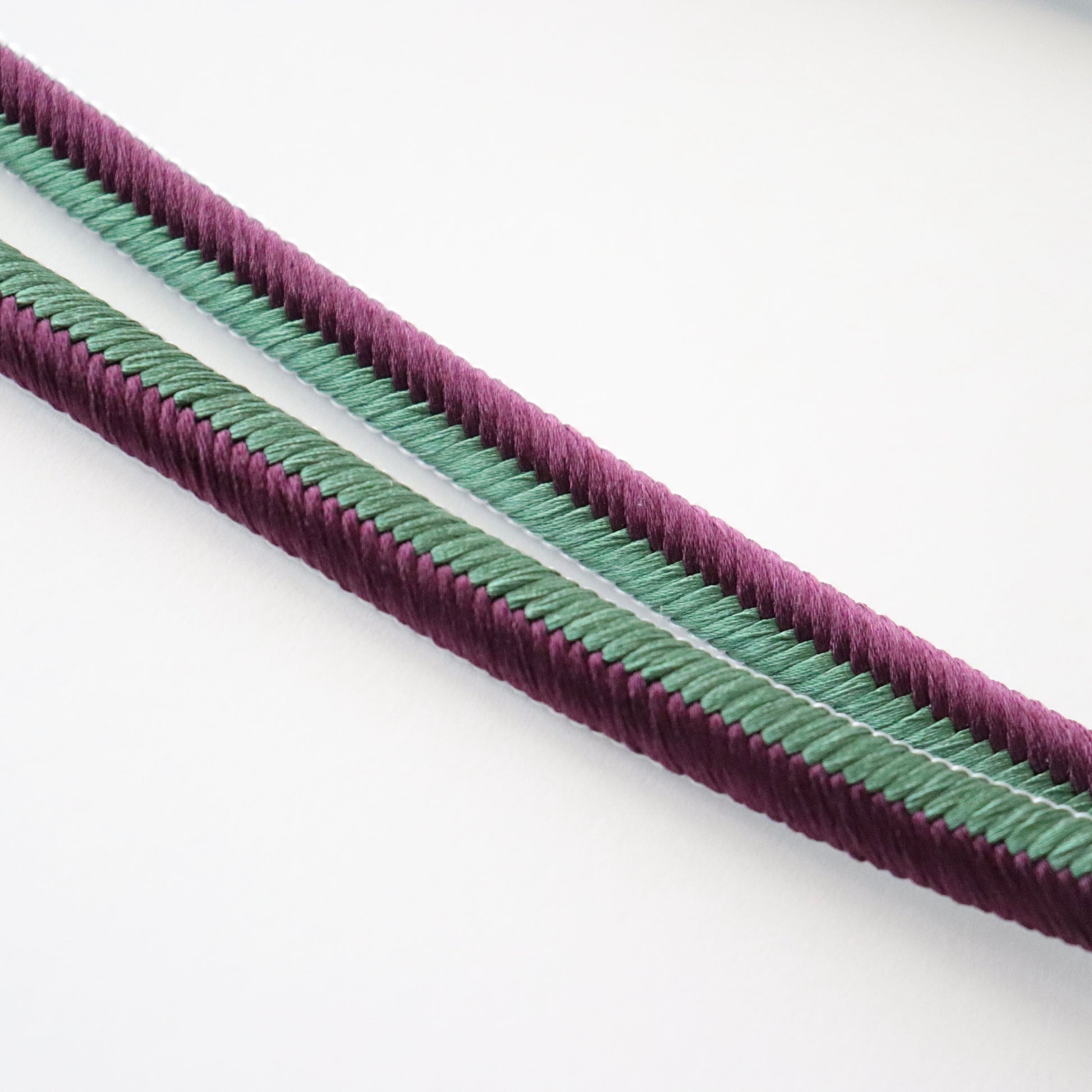 絹糸の艶やかさが際立つ本作。程よい伸縮性のあるしなやかな締め心地は丸唐組ならでは。和小物さくらならではの洗練された色彩感覚が冴える配色も洒落た仕上がり。様々なスタイルのアクセントに重宝する帯締めです。
