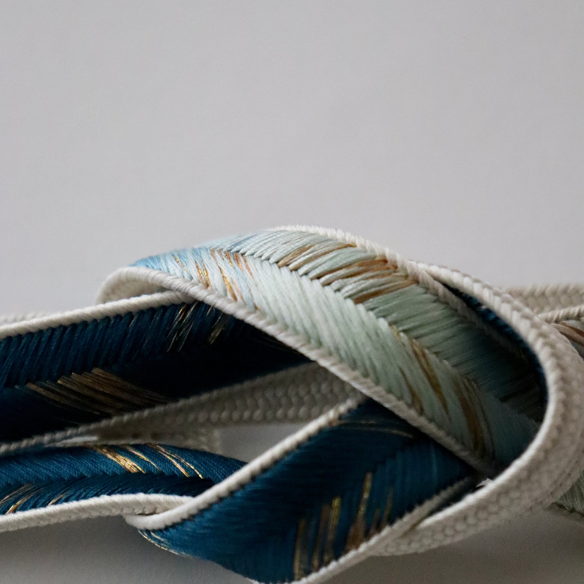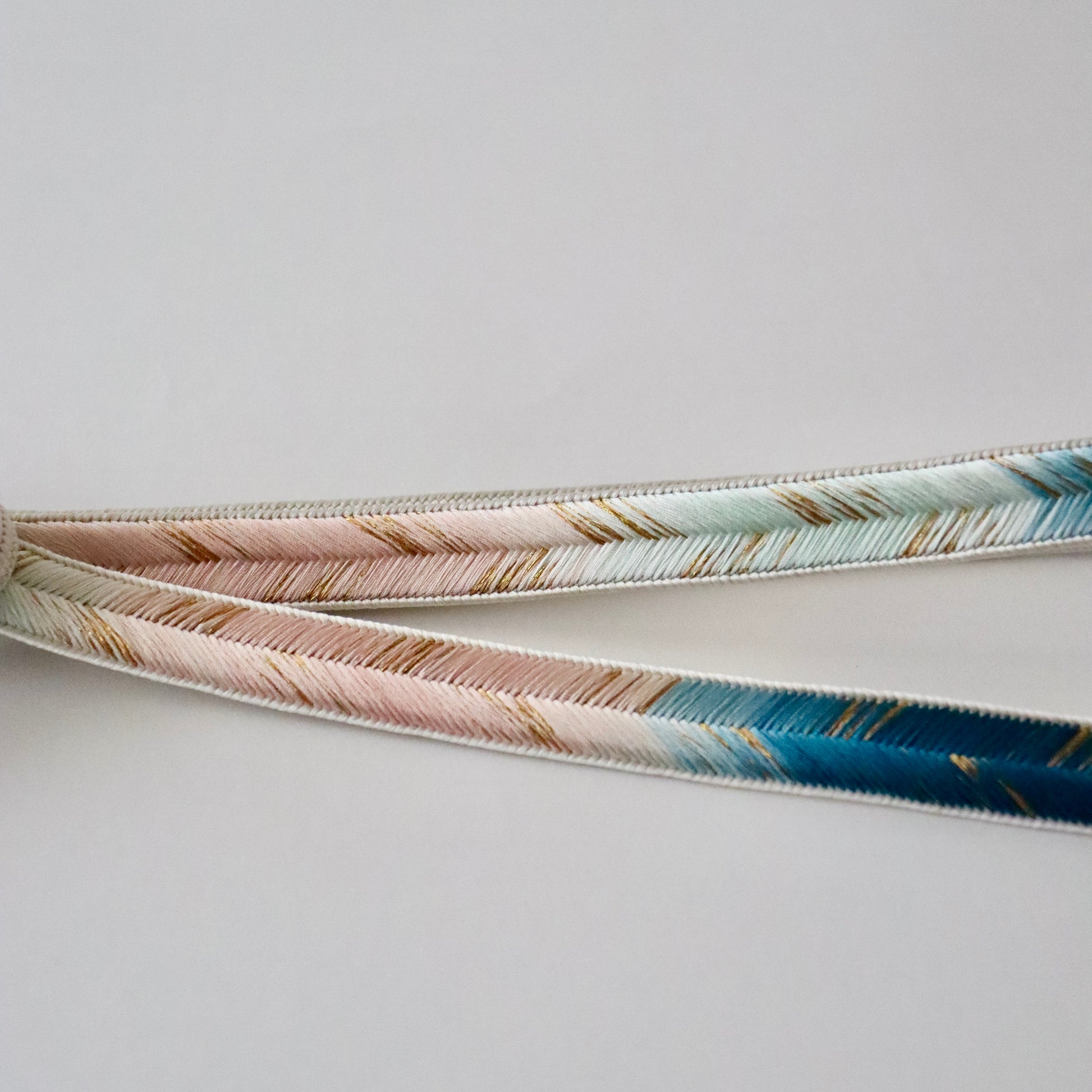 慶事のお席に相応しい華やかな色彩の本作。金糸を組み込み程よい煌びやかさも上品な仕上がり。絶妙な色の濃淡に和小物さくらの洗練された色彩感覚が現れた帯締めです。