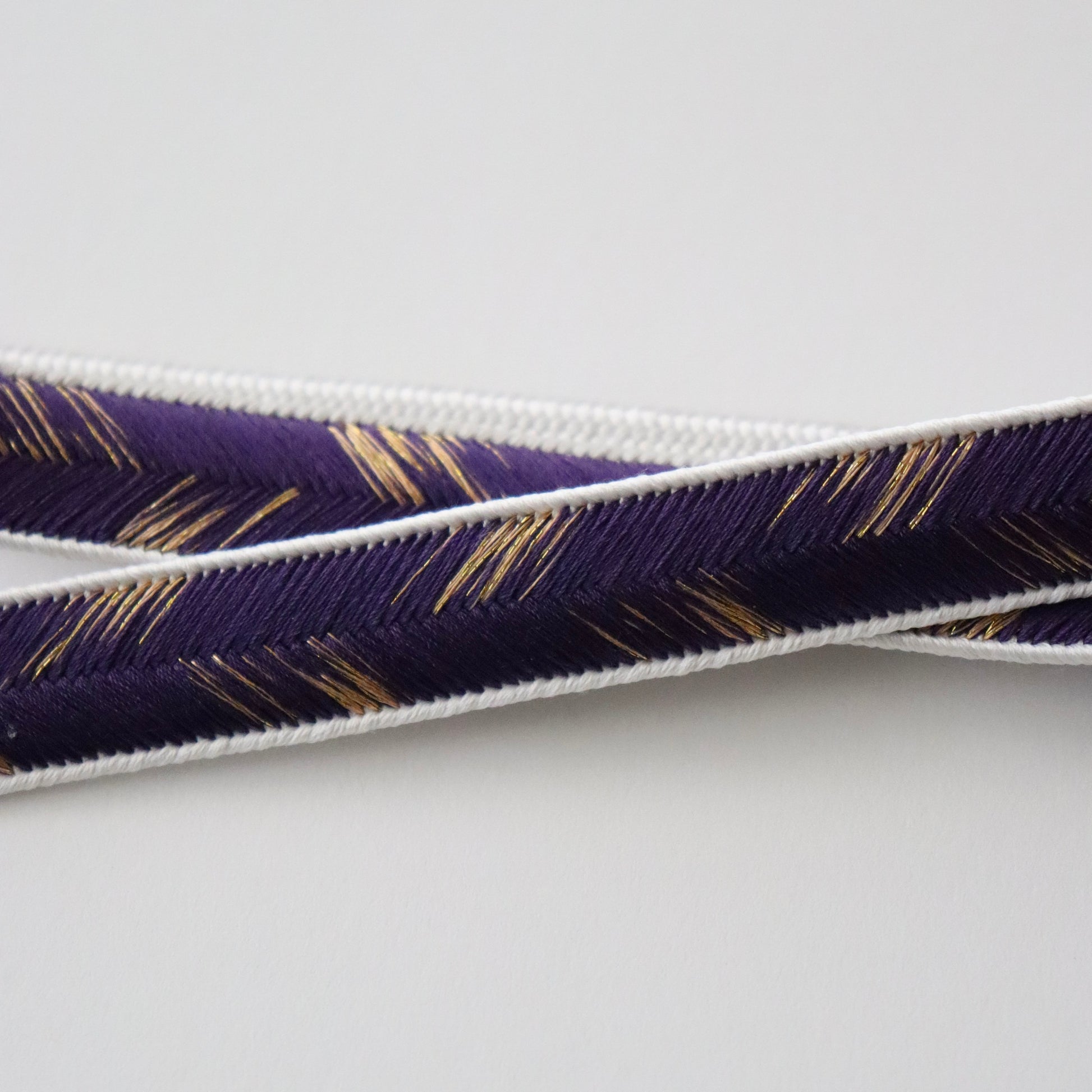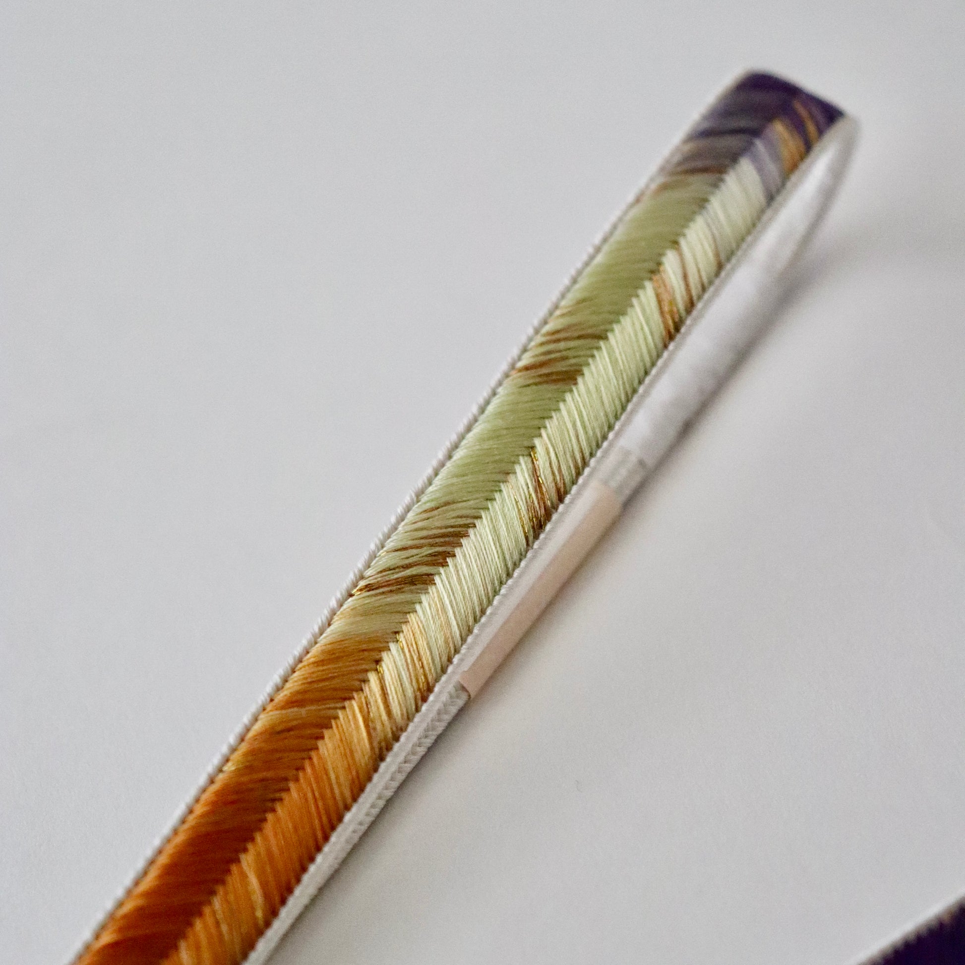 慶事のお席に相応しい華やかな色彩の本作。金糸を組み込み程よい煌びやかさも上品な仕上がり。絶妙な色の濃淡に和小物さくらの洗練された色彩感覚が現れた帯締めです。