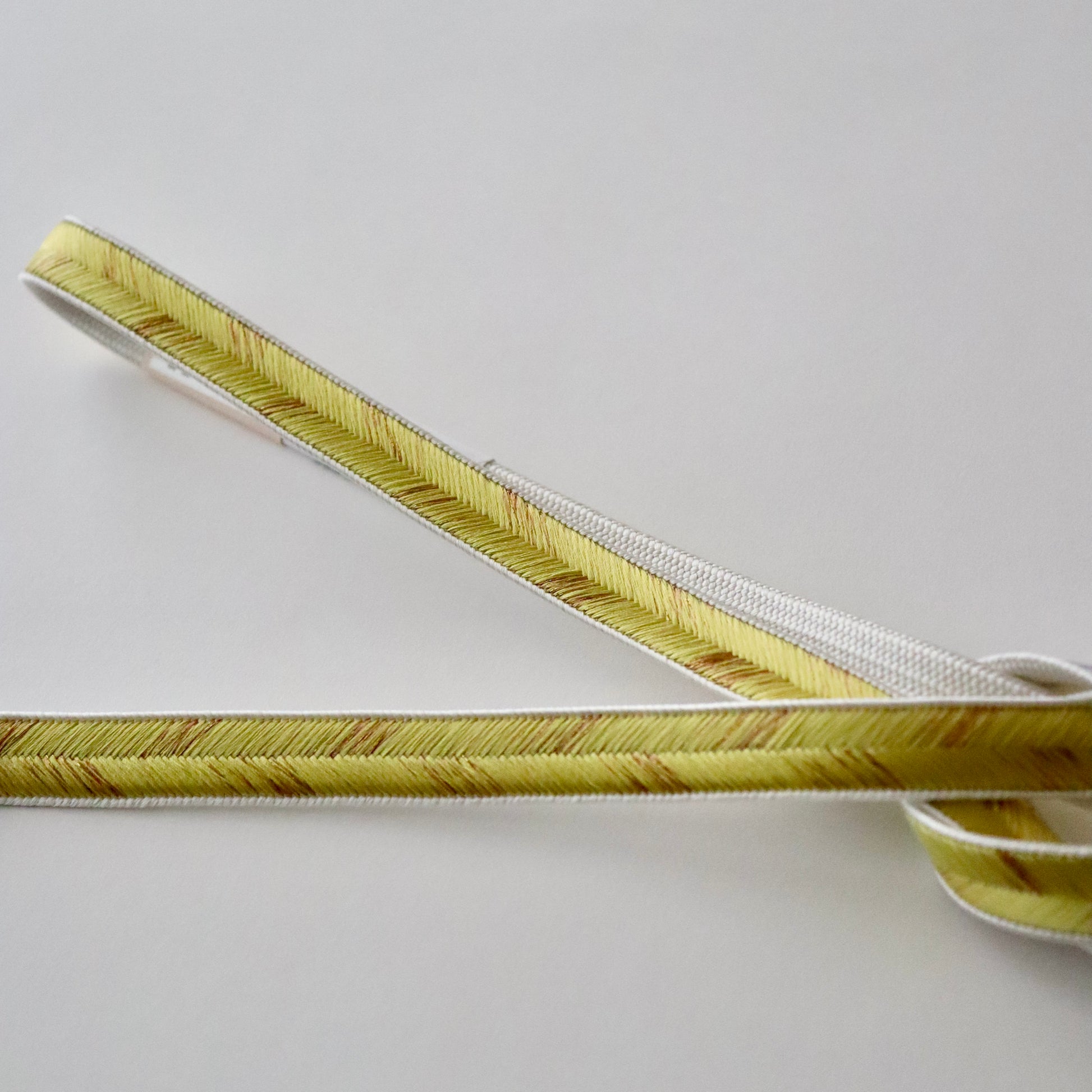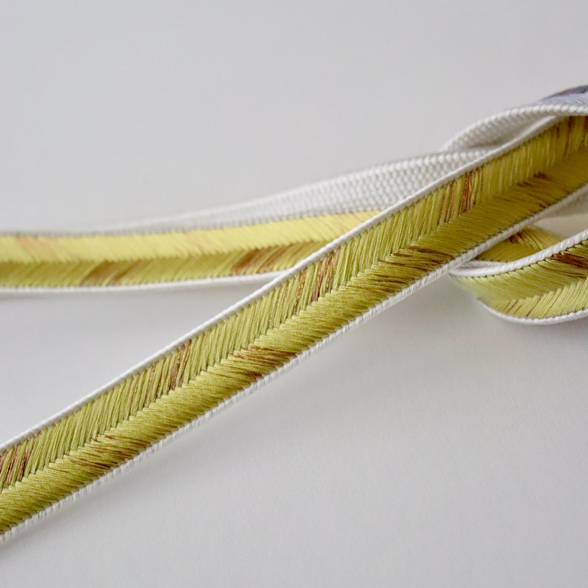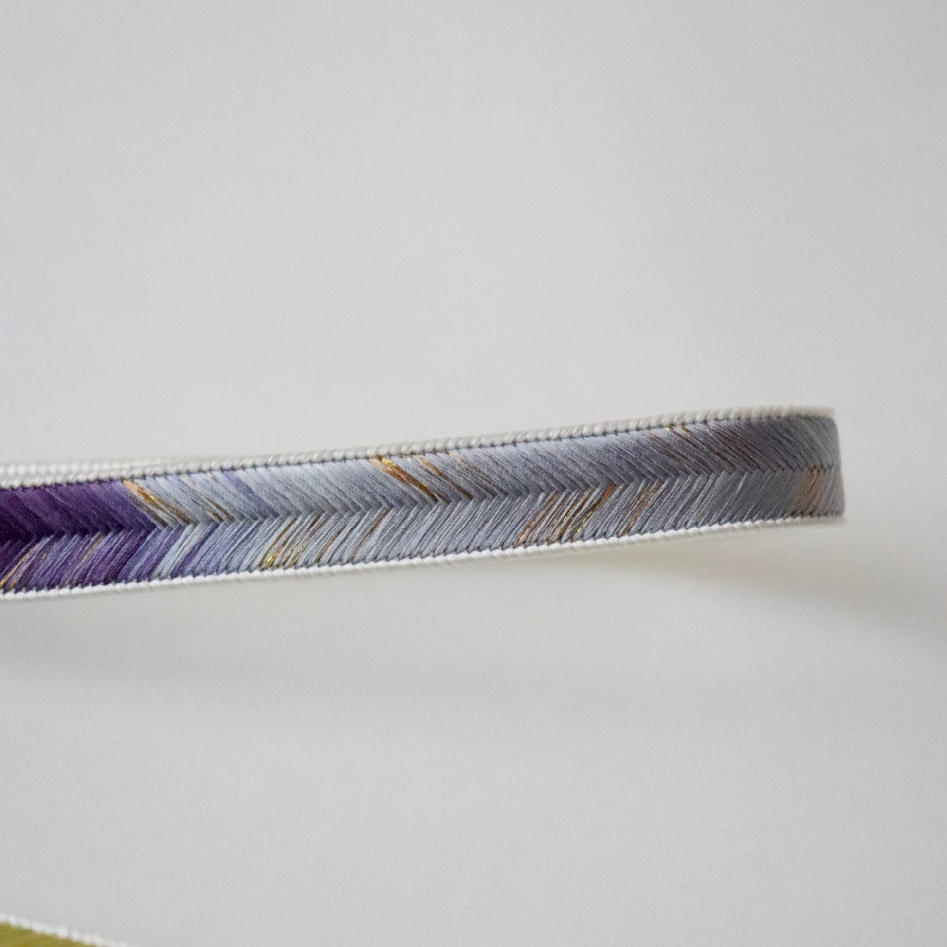 慶事のお席に相応しい華やかな色彩の本作。金糸を組み込み程よい煌びやかさも上品な仕上がり。絶妙な色の濃淡に和小物さくらの洗練された色彩感覚が現れた帯締めです。