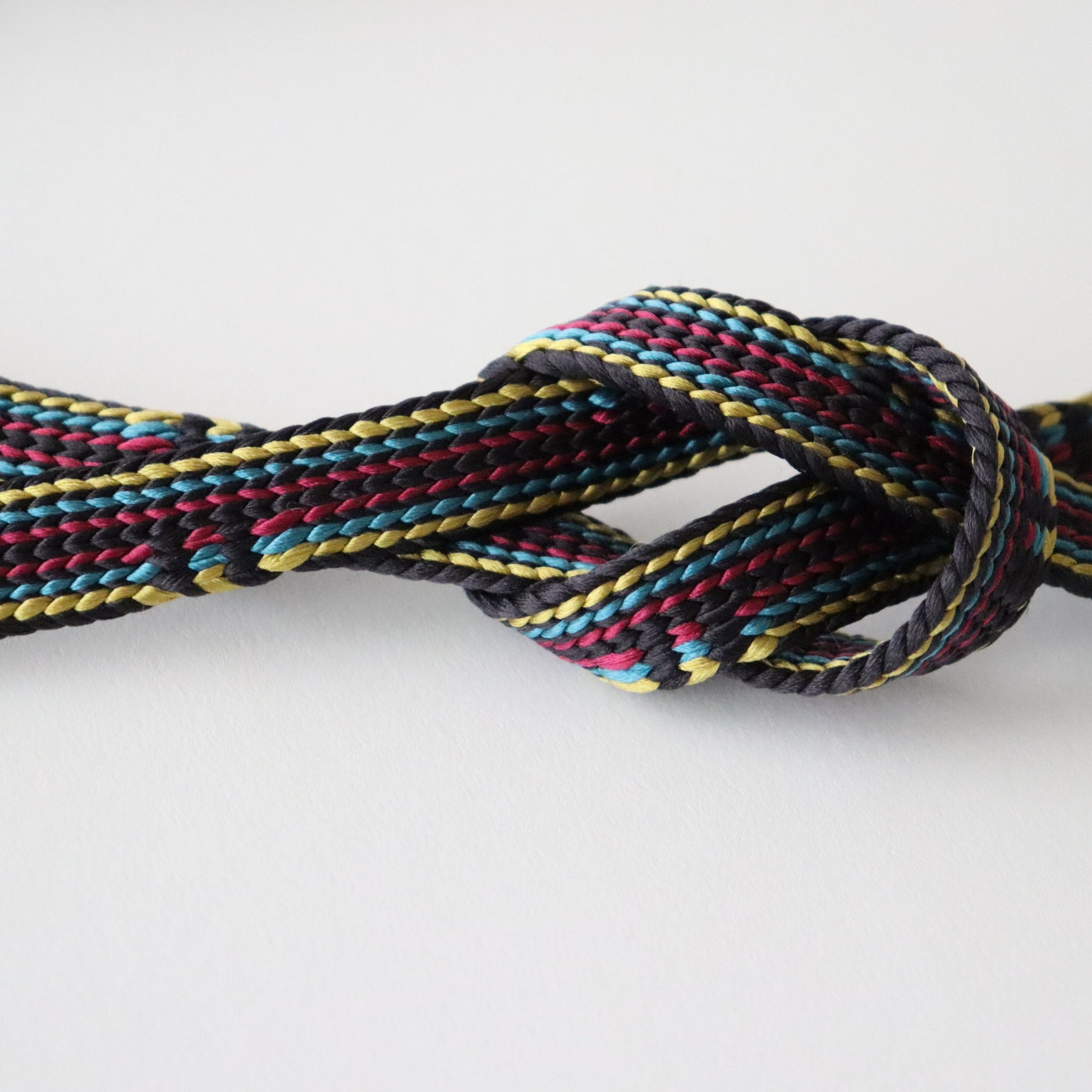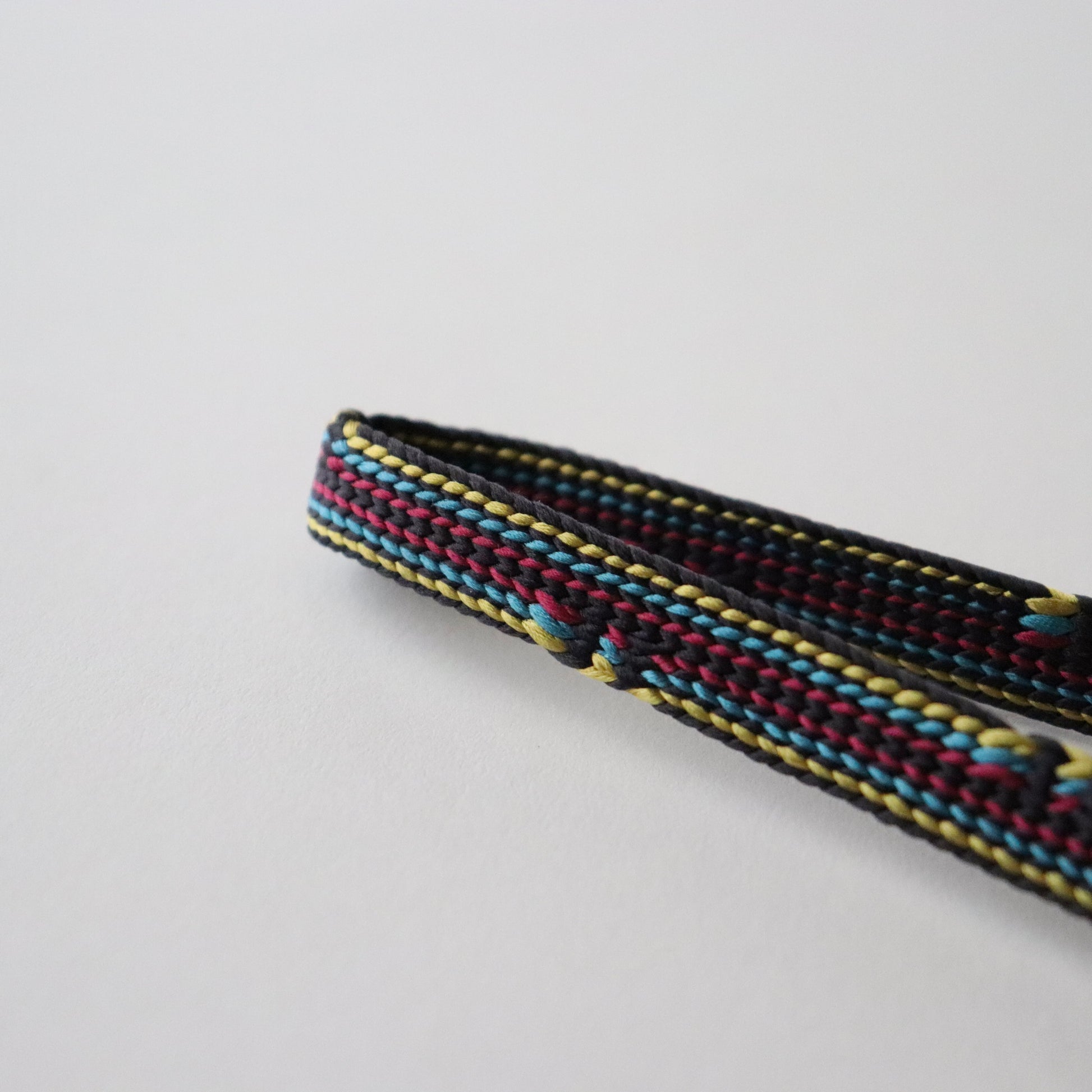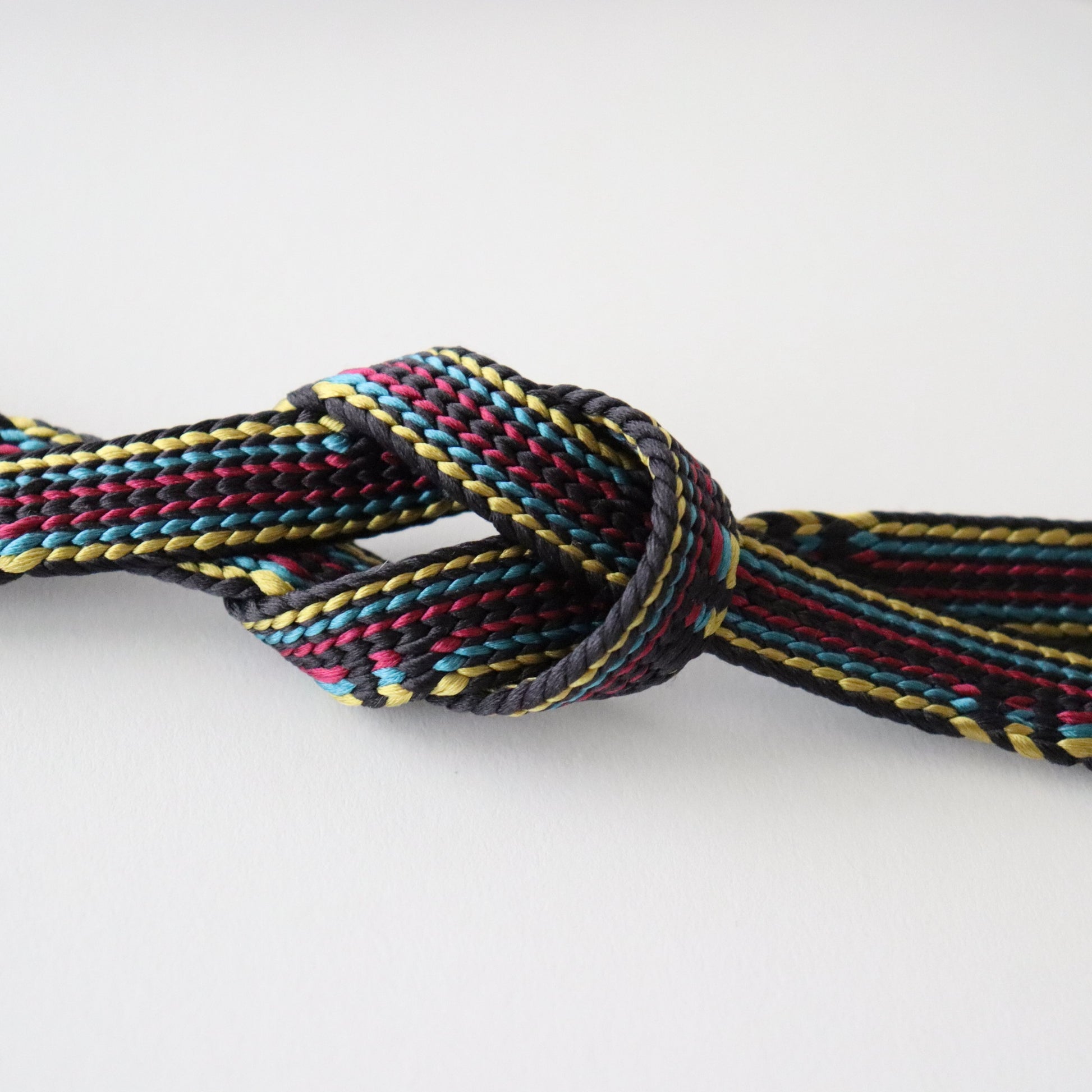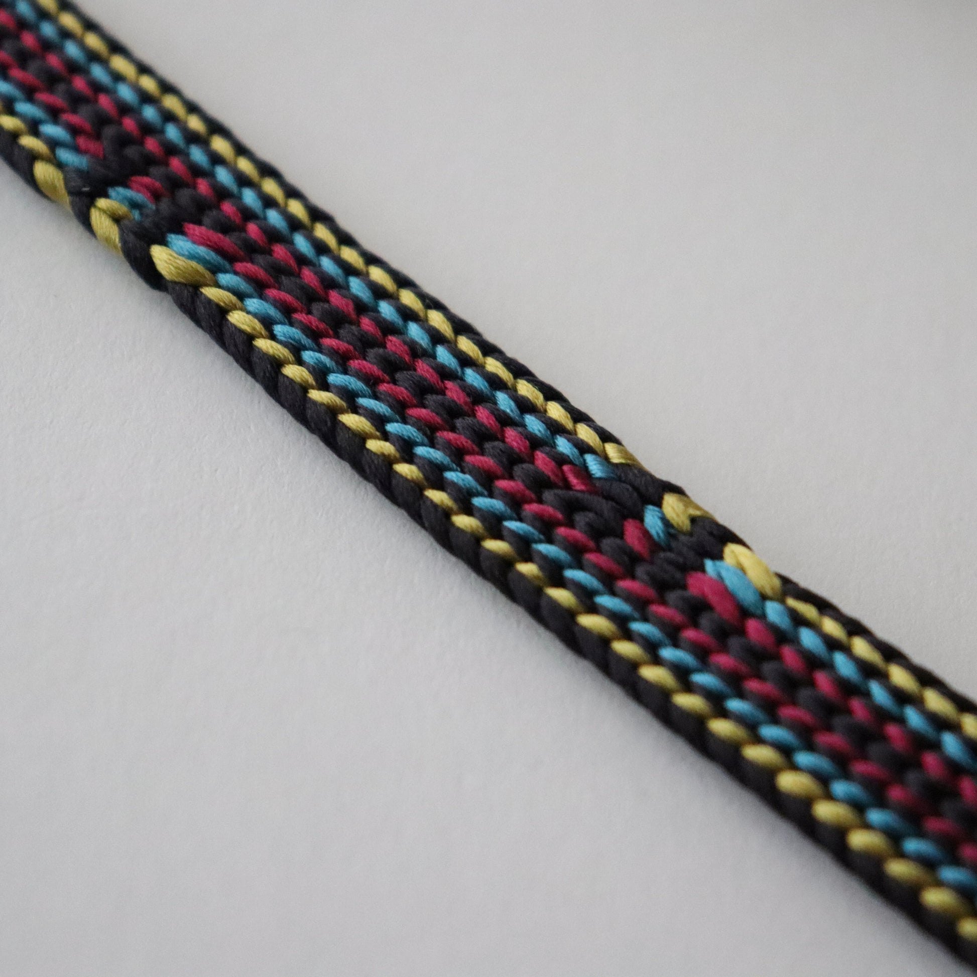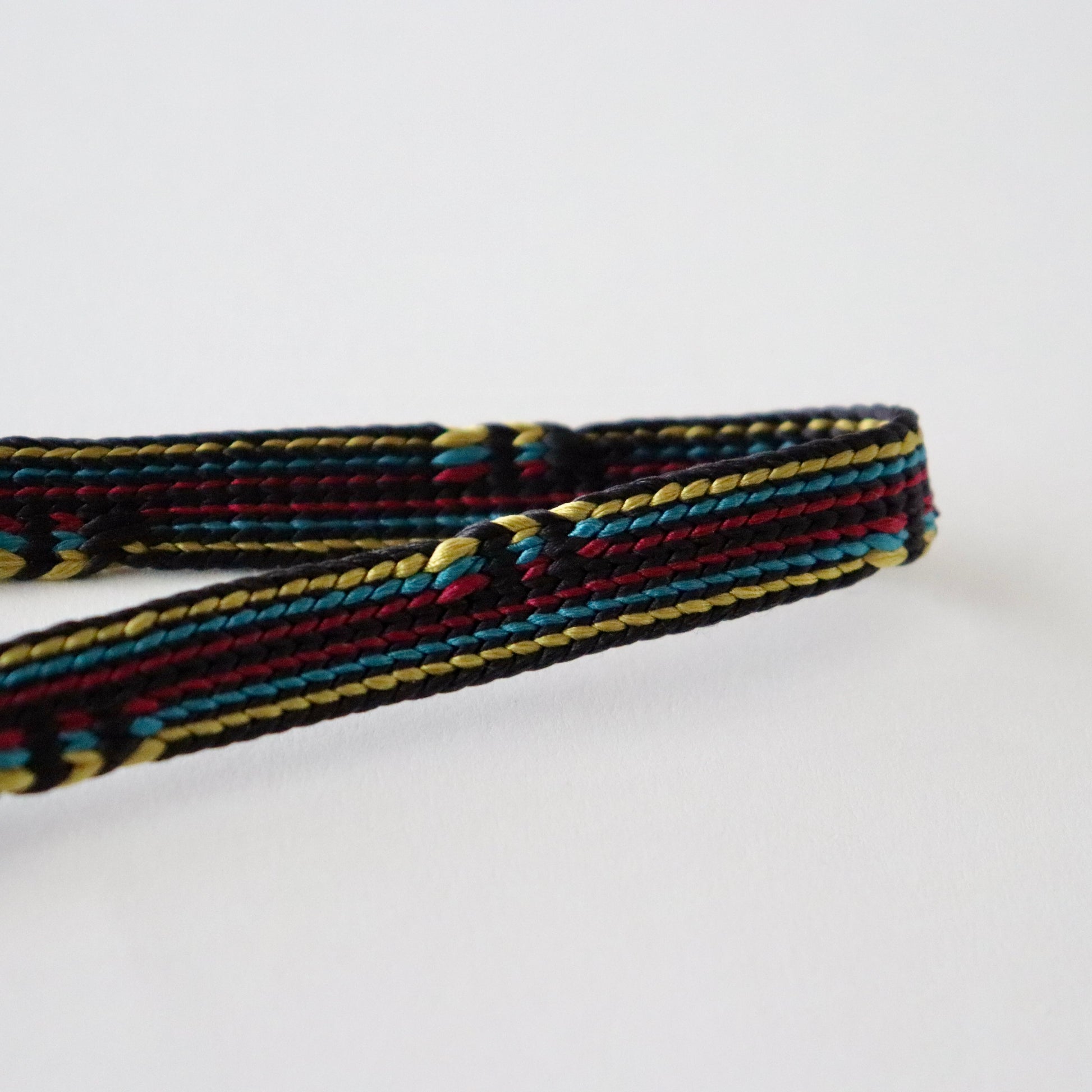 目を惹く色調が美しく洒落た本作。手組みならではの伸縮性としなやかな締め心地が良い仕上がり。和小物さくらならではの洗練された色彩感覚が冴える配色も素敵な帯締めです。