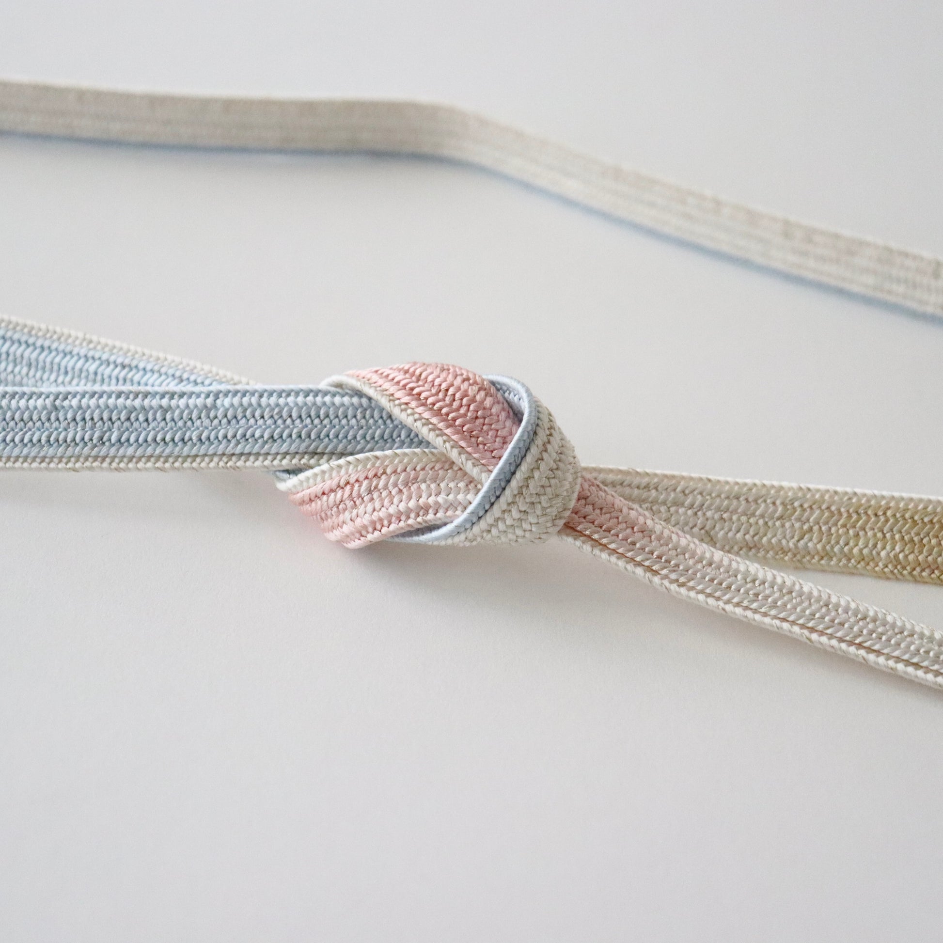淡い色彩のグラデーションが美しい本作。上品かつ可憐な色彩はコーディネートに程よいアクセントを加えてくれる存在に。盛夏以外で季節を問わずコーディネート頂ける帯締めです。。