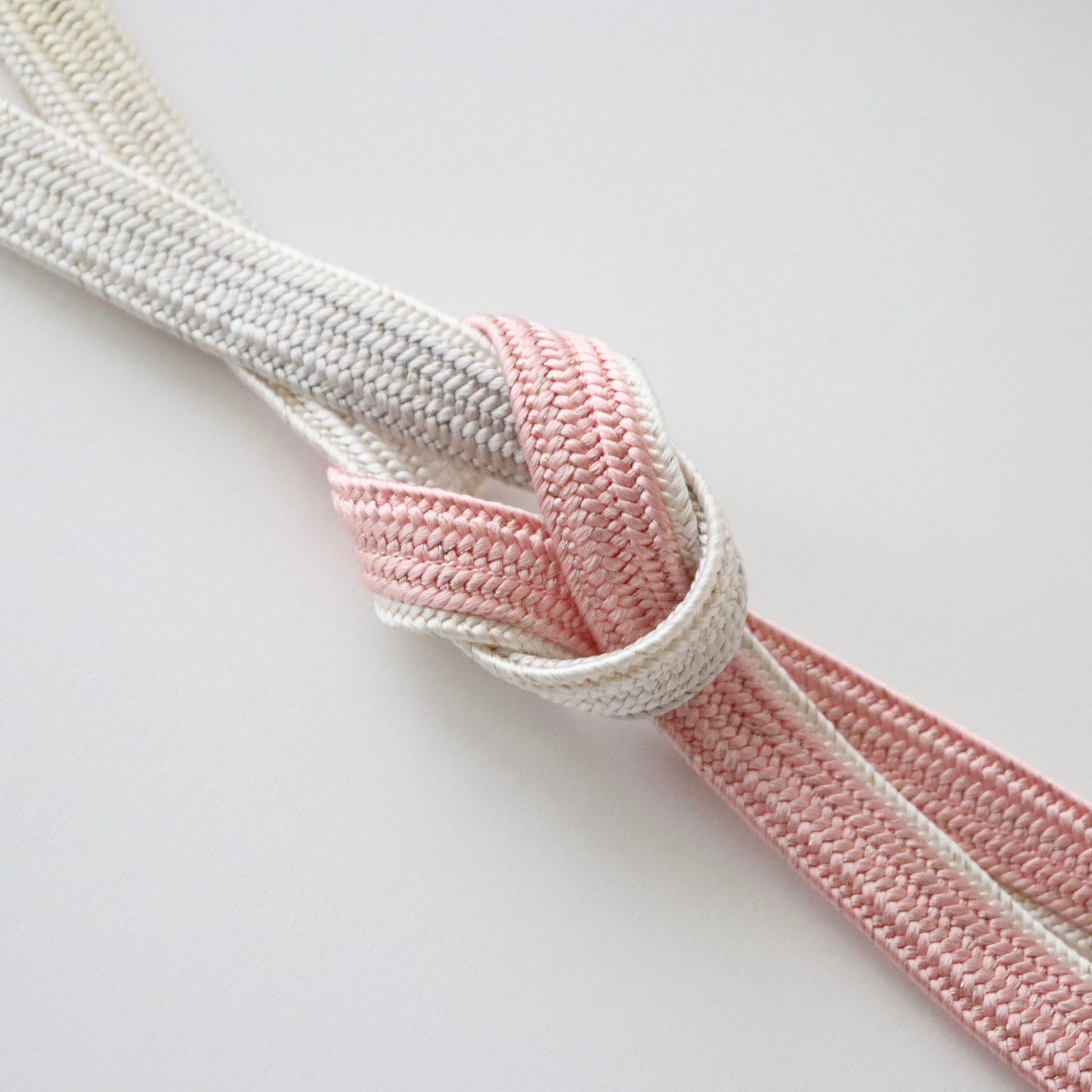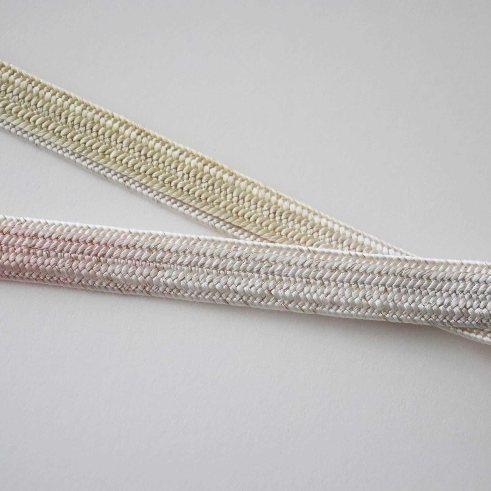 淡い色彩のグラデーションが美しい本作。上品かつ可憐な色彩はコーディネートに程よいアクセントを加えてくれる存在に。盛夏以外で季節を問わずコーディネート頂ける帯締めです。。