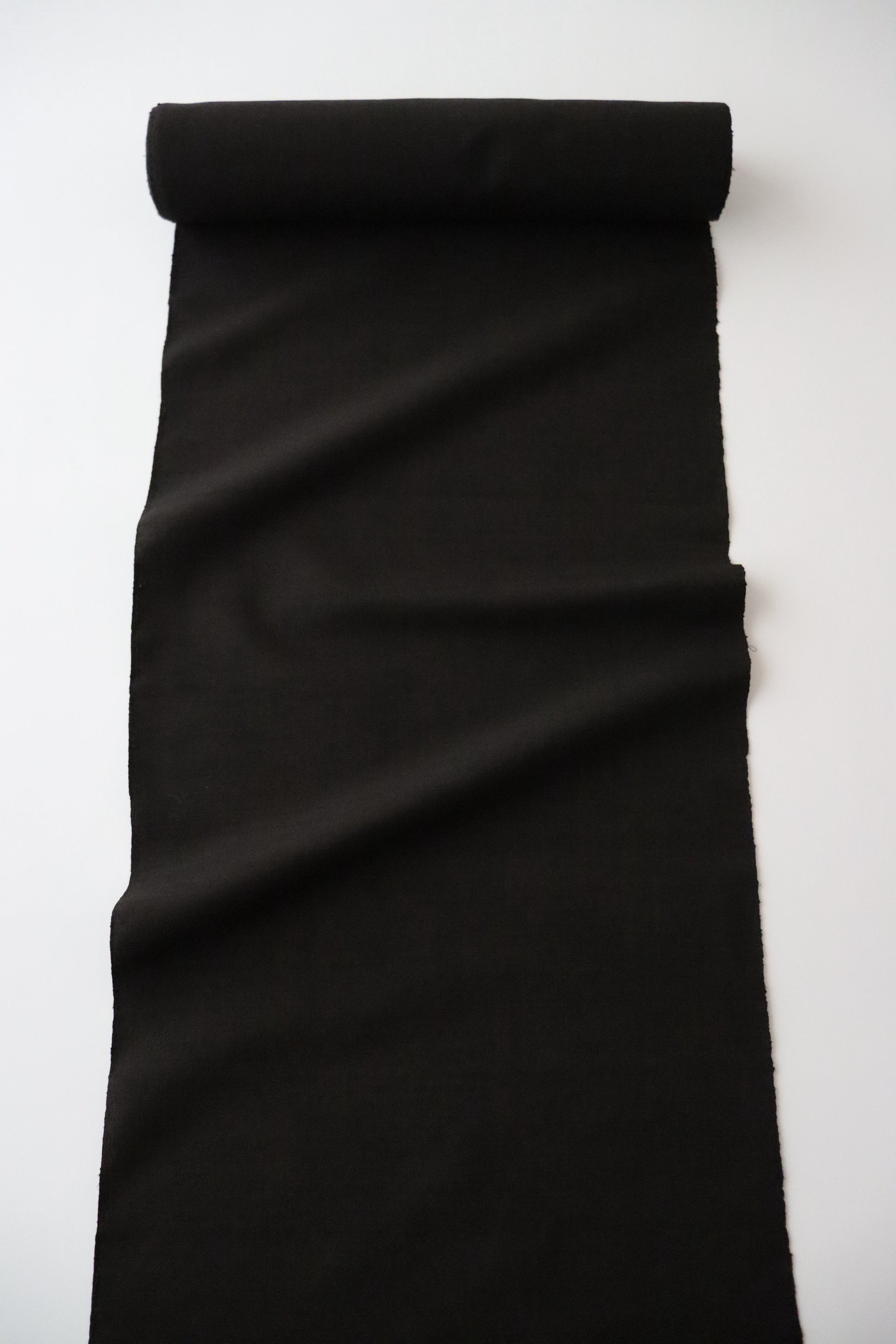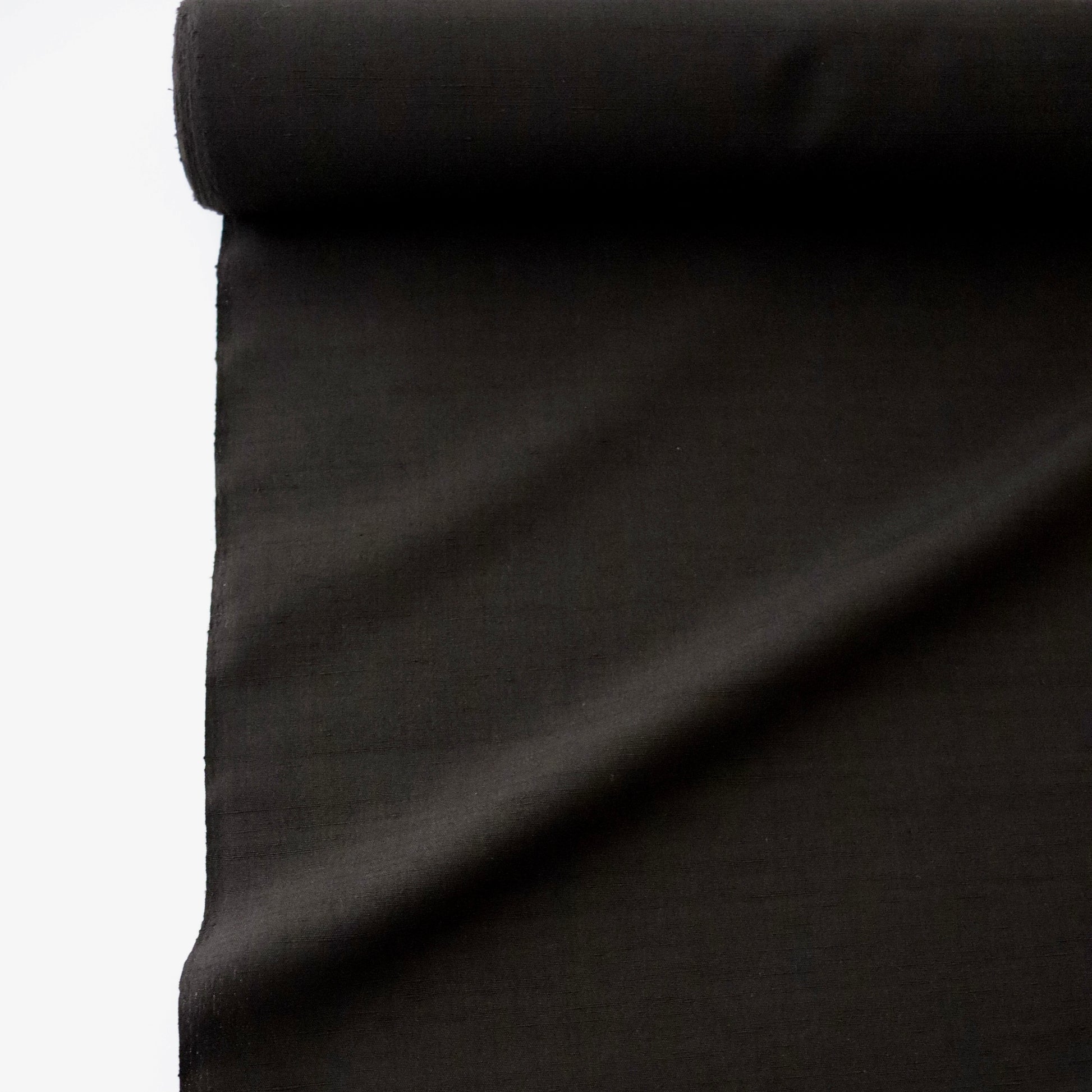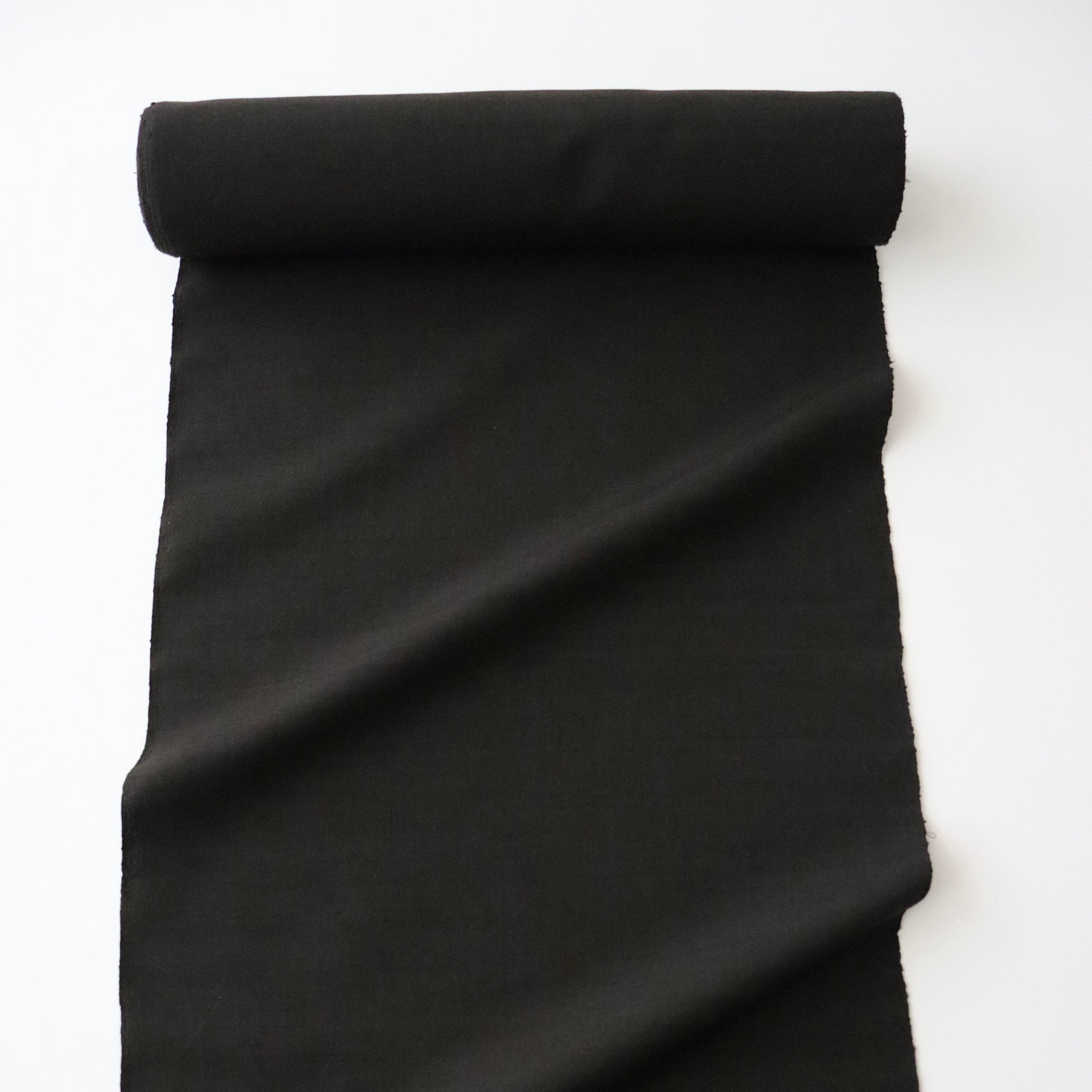 泥染の糸を丁寧に手織りで仕上げた本作。泥染は車輪梅などの草木に含まれるタンニンと泥に含まれる鉄分の結合によって色を表現するもので、厳密には草木染と泥染の混合染とも言えます。大島紬に代表される泥染ですが、本品は強撚糸を用いる大島紬とは異なり、節のある紬糸を用いた織物なので、同じ褐色でもまた違う表情をお楽しみ頂けます。色は限りなく黒に近い褐色。写真でお伝えするのはとても困難ですが、とても洒落た良い色に染め上がっております。無地の着尺ではありますが、紬糸が織り成すその表情こそが奥行きのある柄とも言える仕上がりとなった趣のある一品です。帯合わせも濃色、淡色、染、織と様々なテイストのコーディネートをお楽しみ頂ける汎用性が広い無地紬でございます。