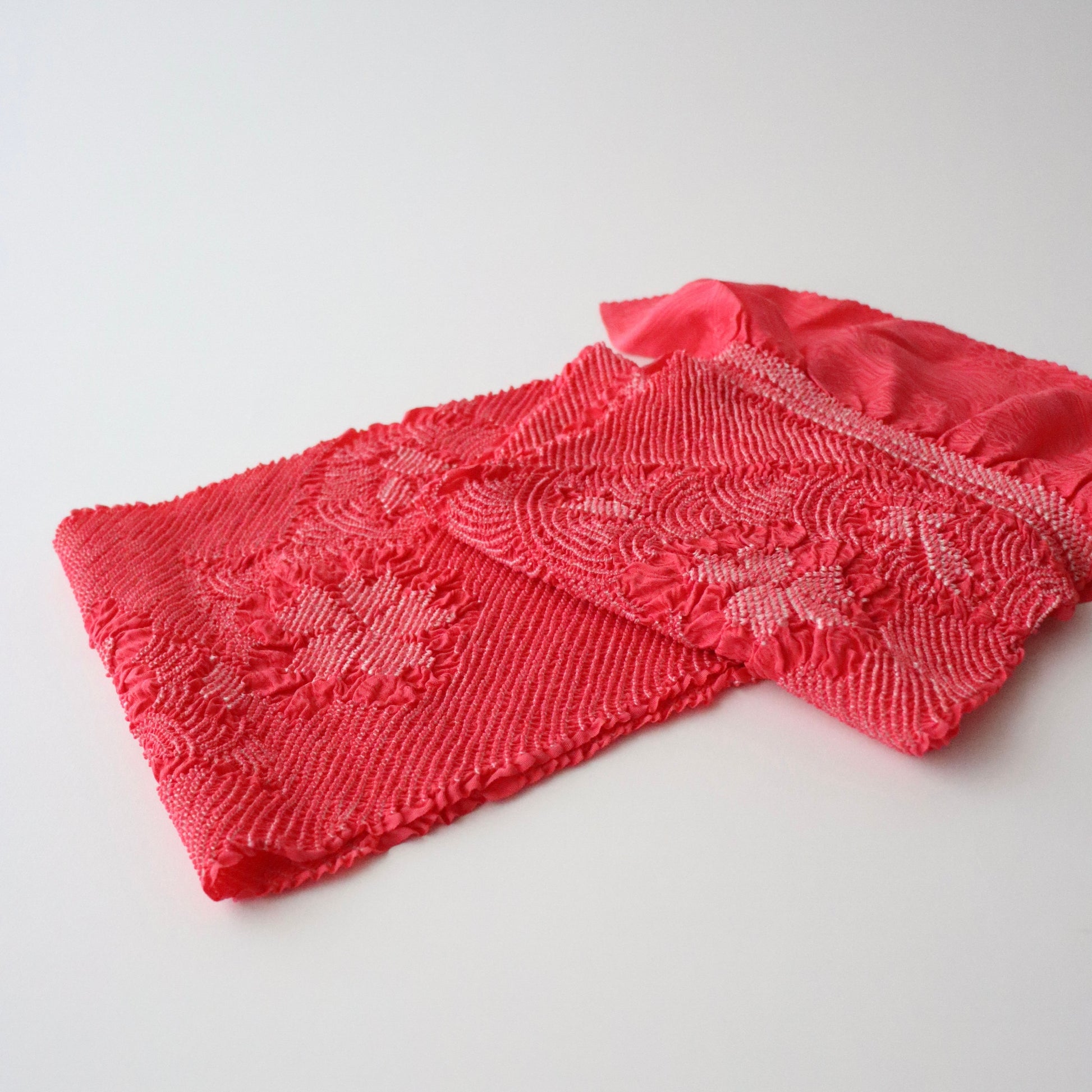 上質な綸子地を絞染めで彩った振袖向けの絞染め帯揚げです。