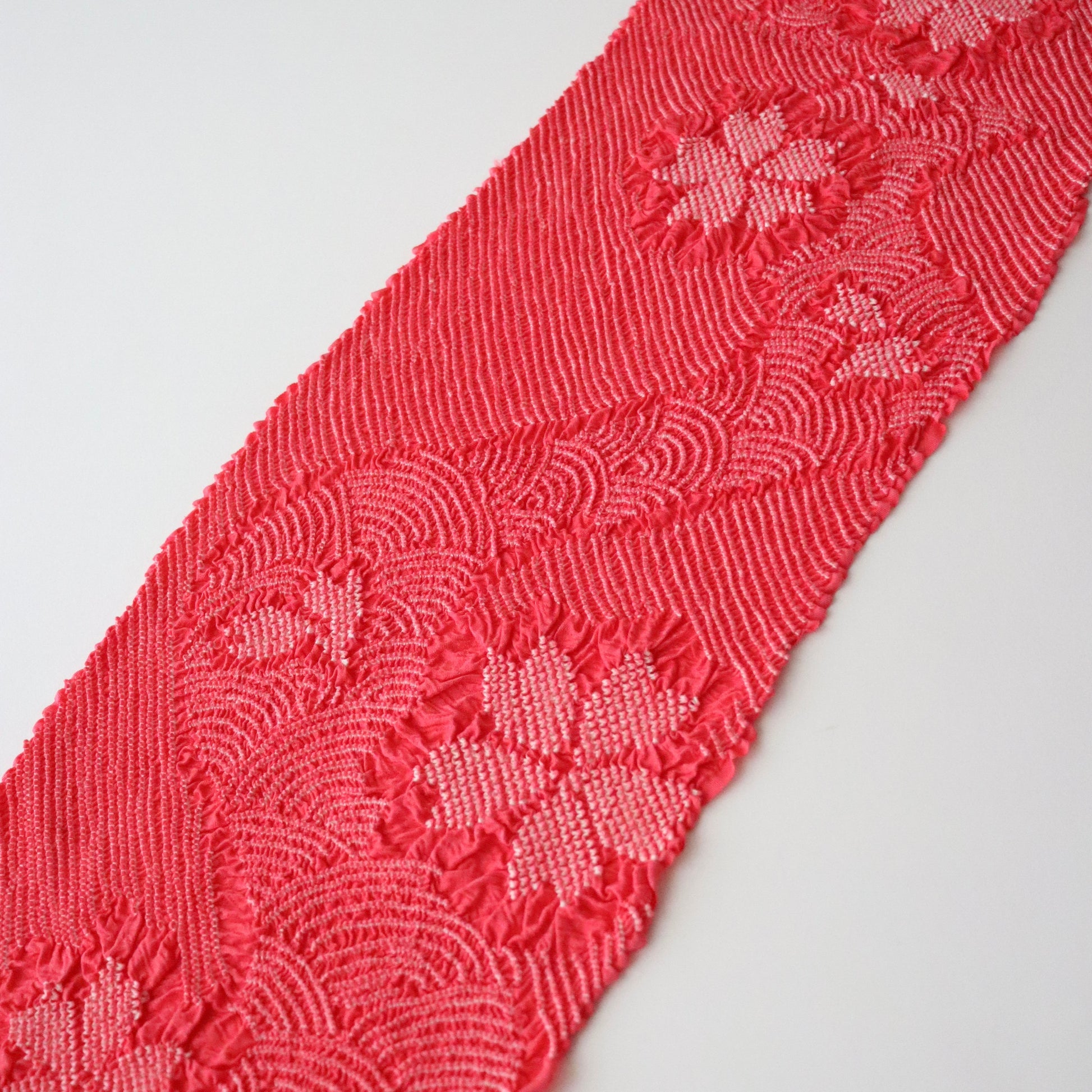 絞染帯揚げ「桜流水 - 躑躅色」