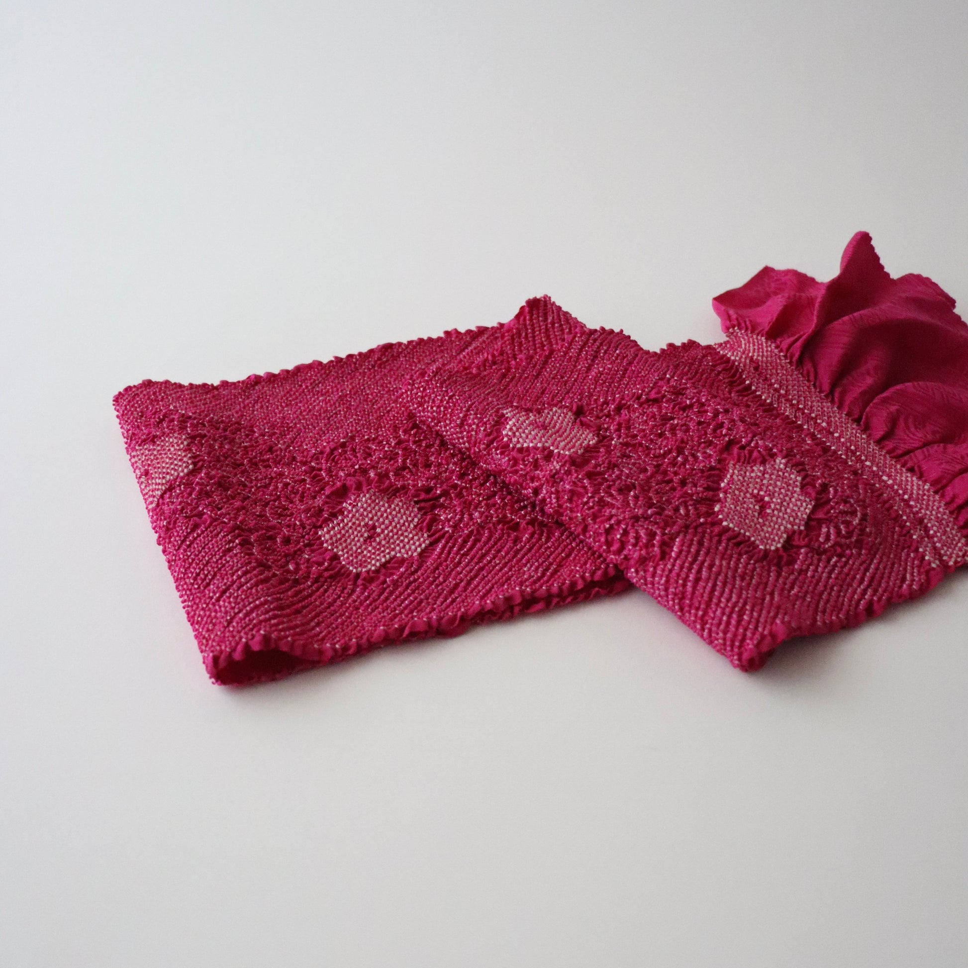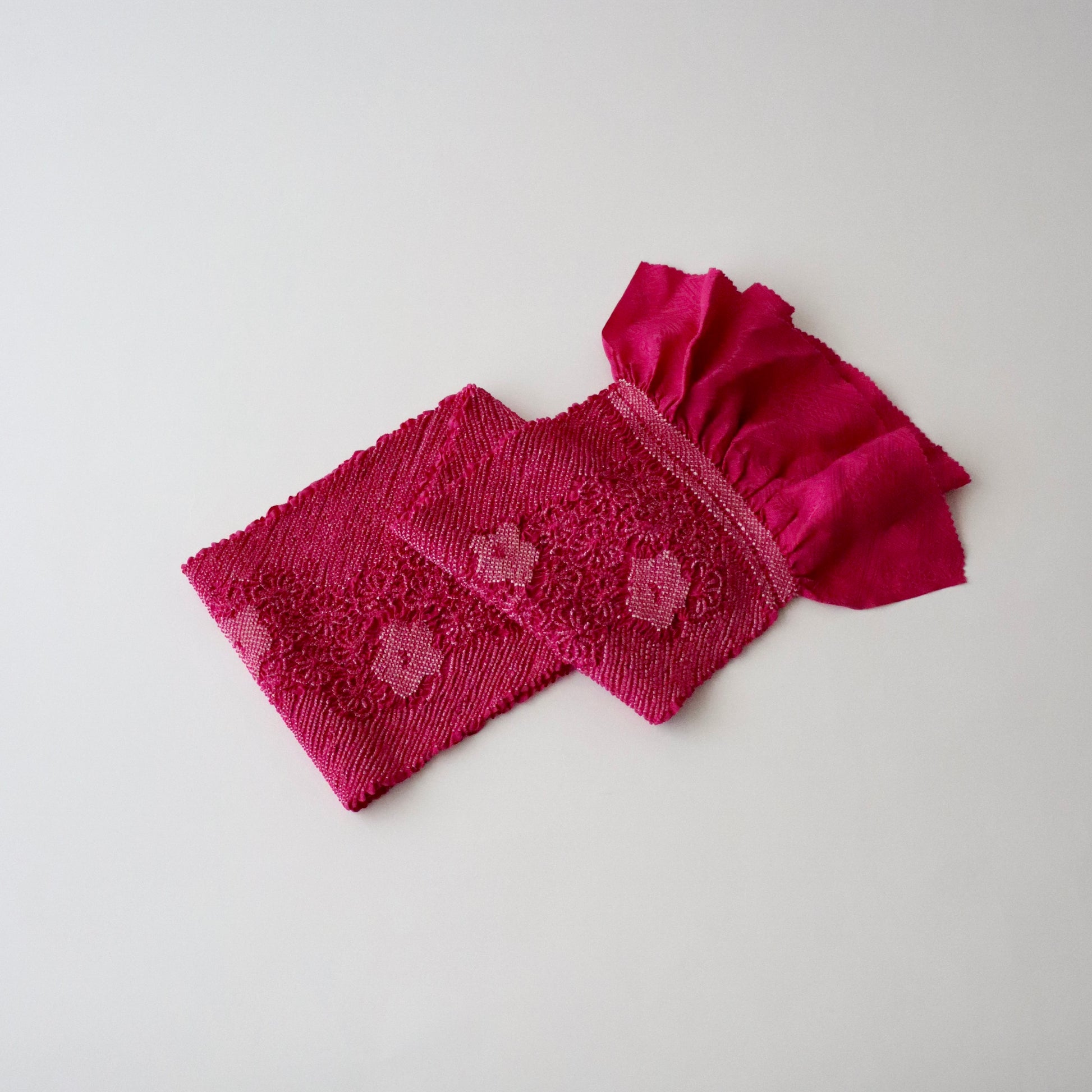 絞染帯揚げ「華流れ - 紅」