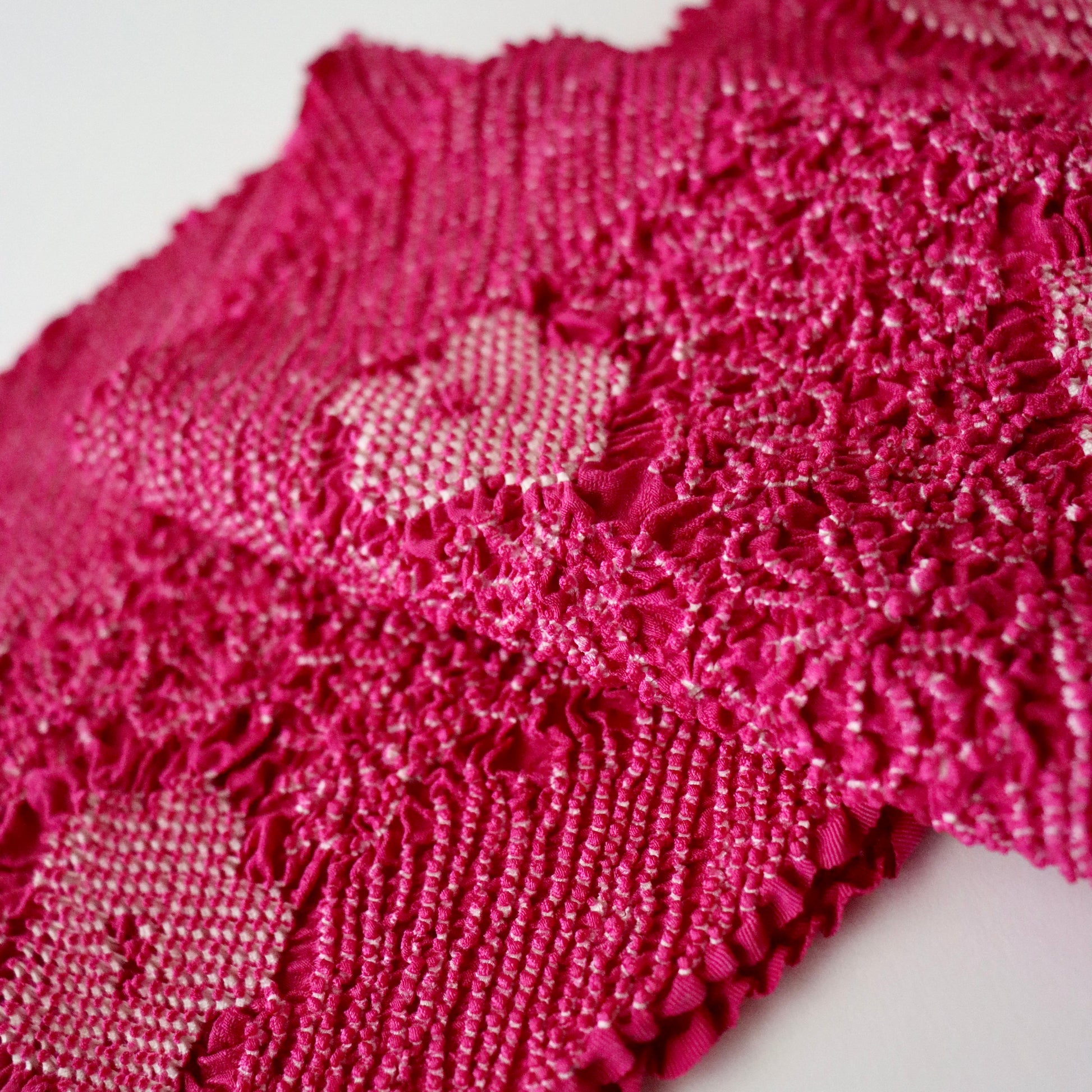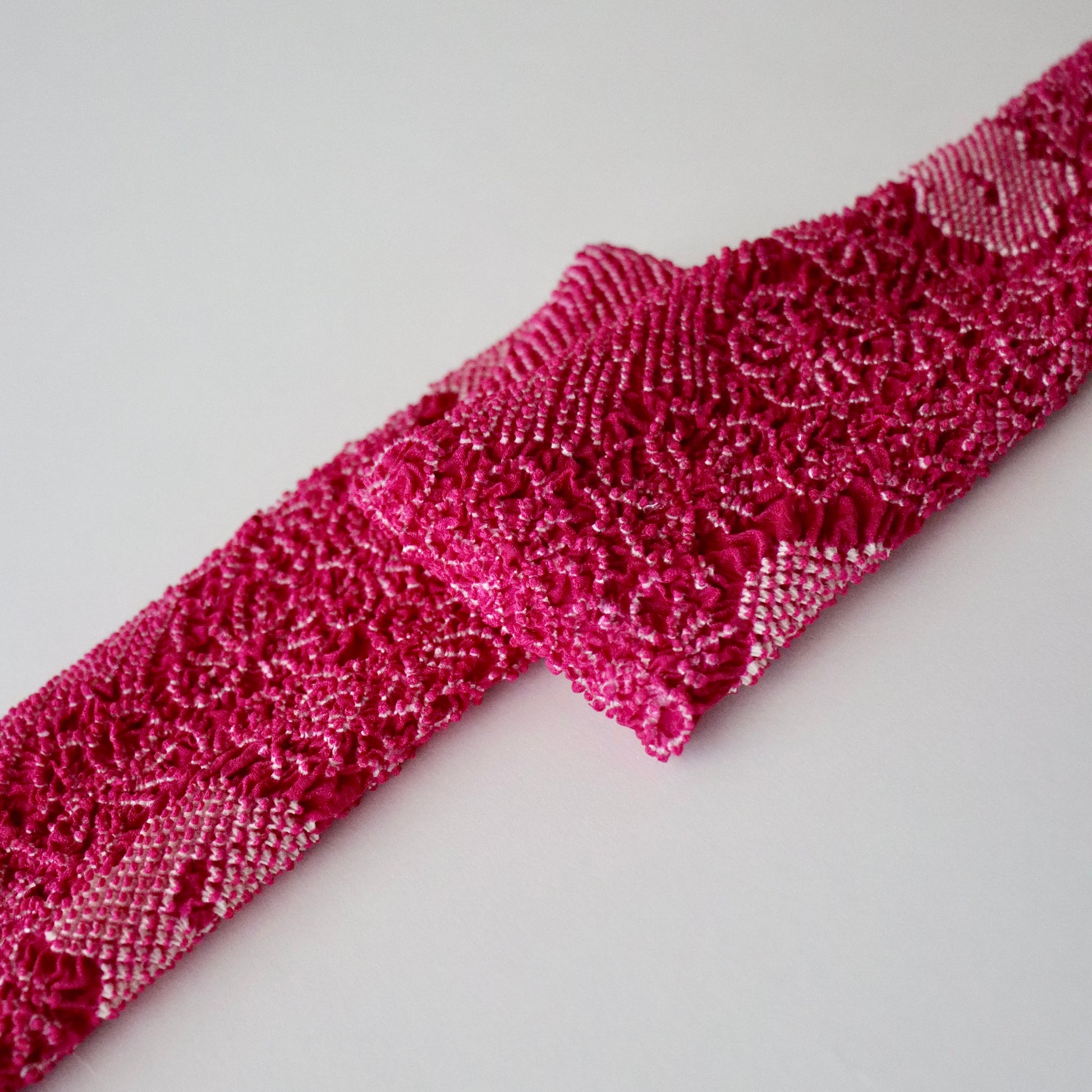 上質な綸子地を絞染めで彩った振袖向けの絞染め帯揚げです。