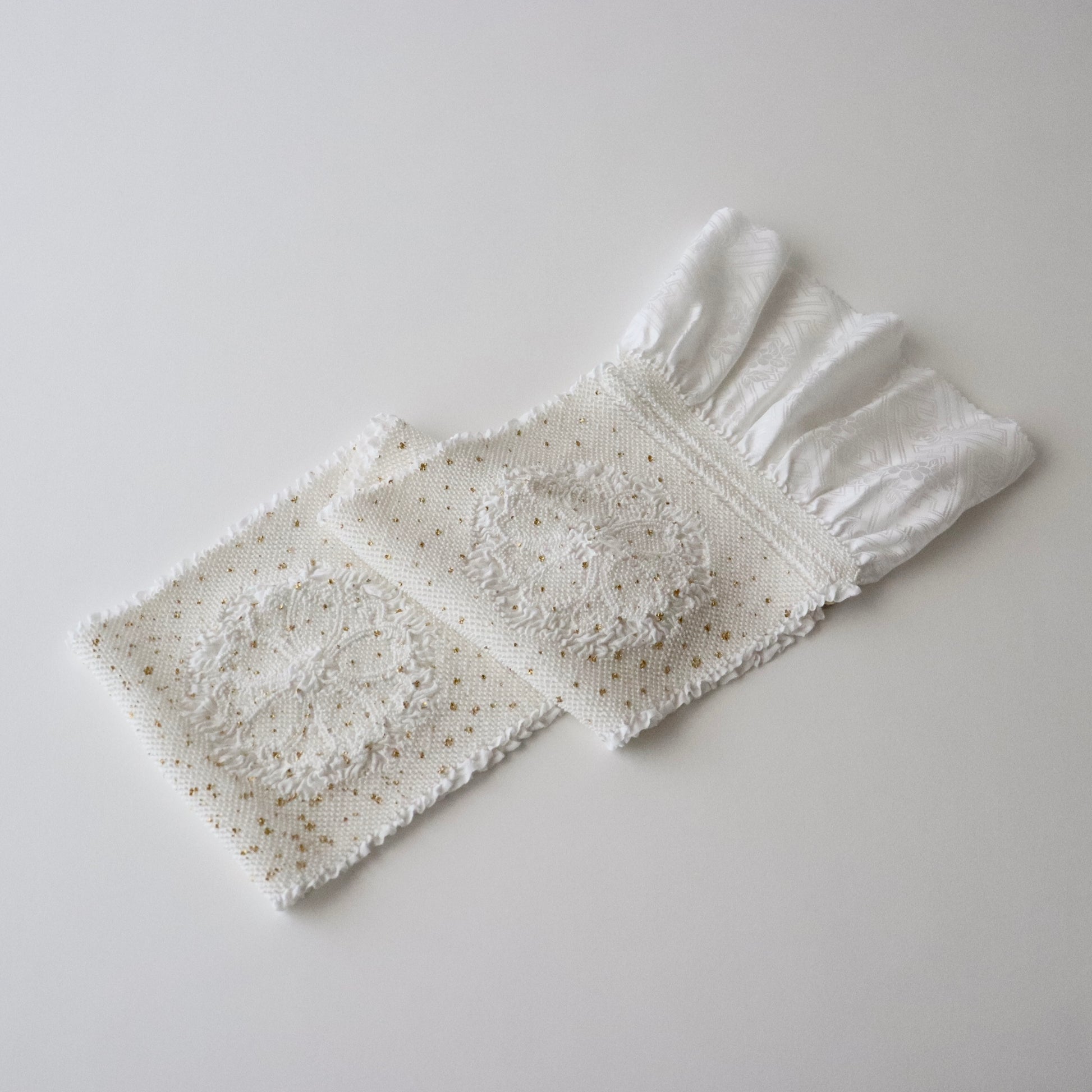 絞染帯揚げ「八重桜輪 - 白」大原商店