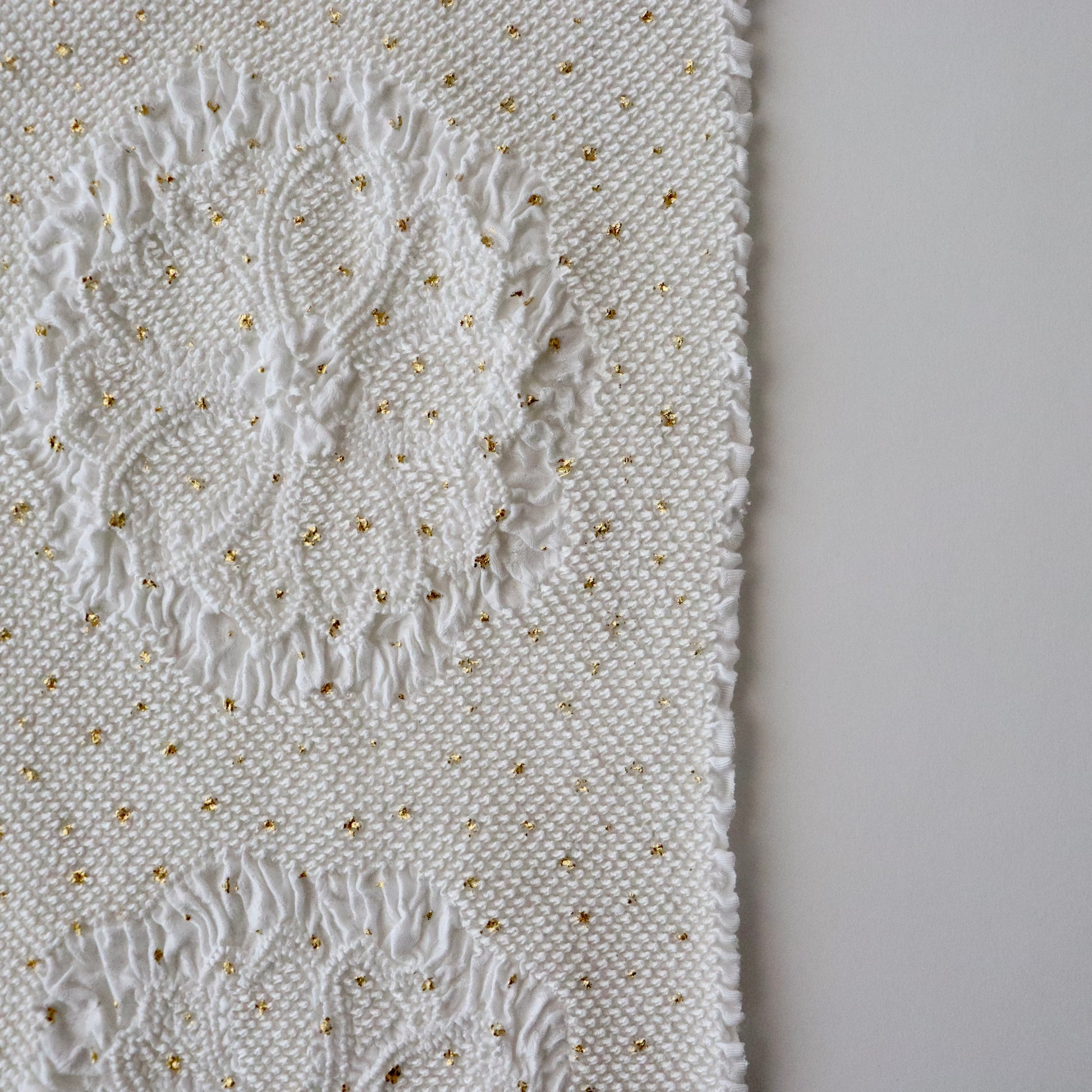 縫い締めと四つ巻き絞りによって柄を染め描いた本品は細やかな手仕事が際立つ仕上がり。
