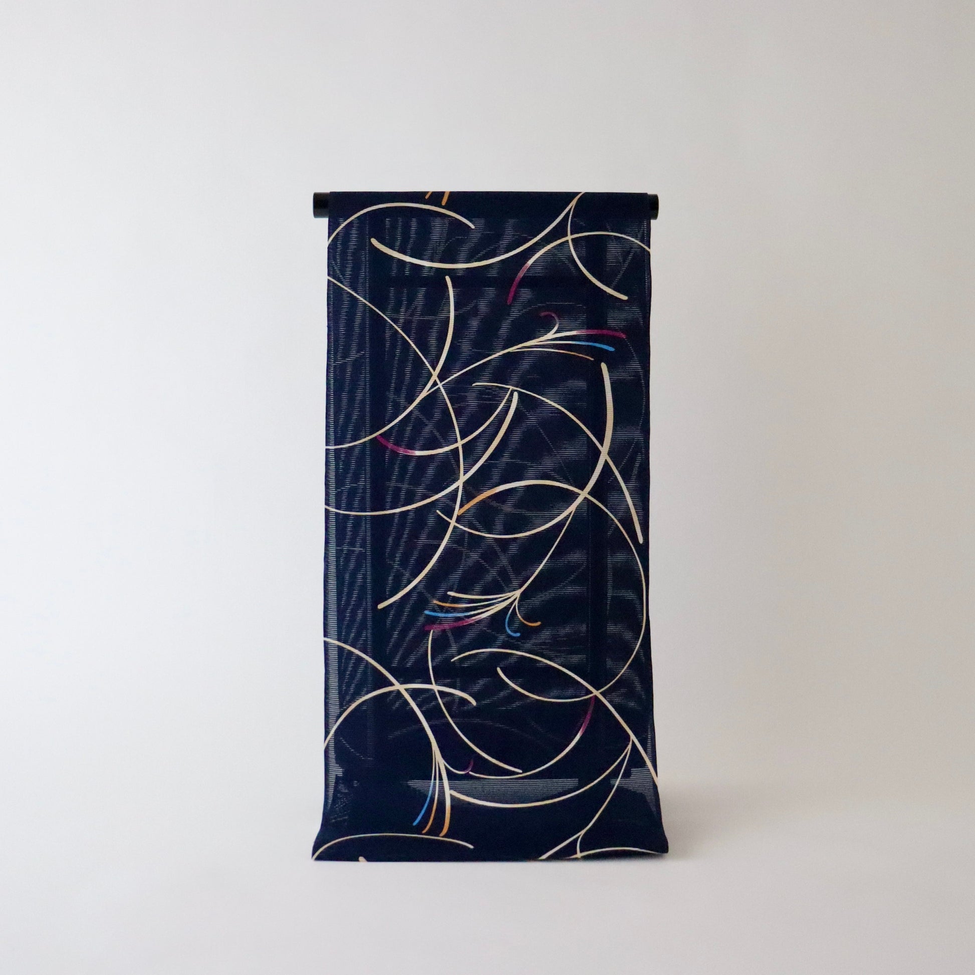 生地にはオリジナルの浜松産綿絽地を使用し、柄をはしごき染型友禅で染め付けております。