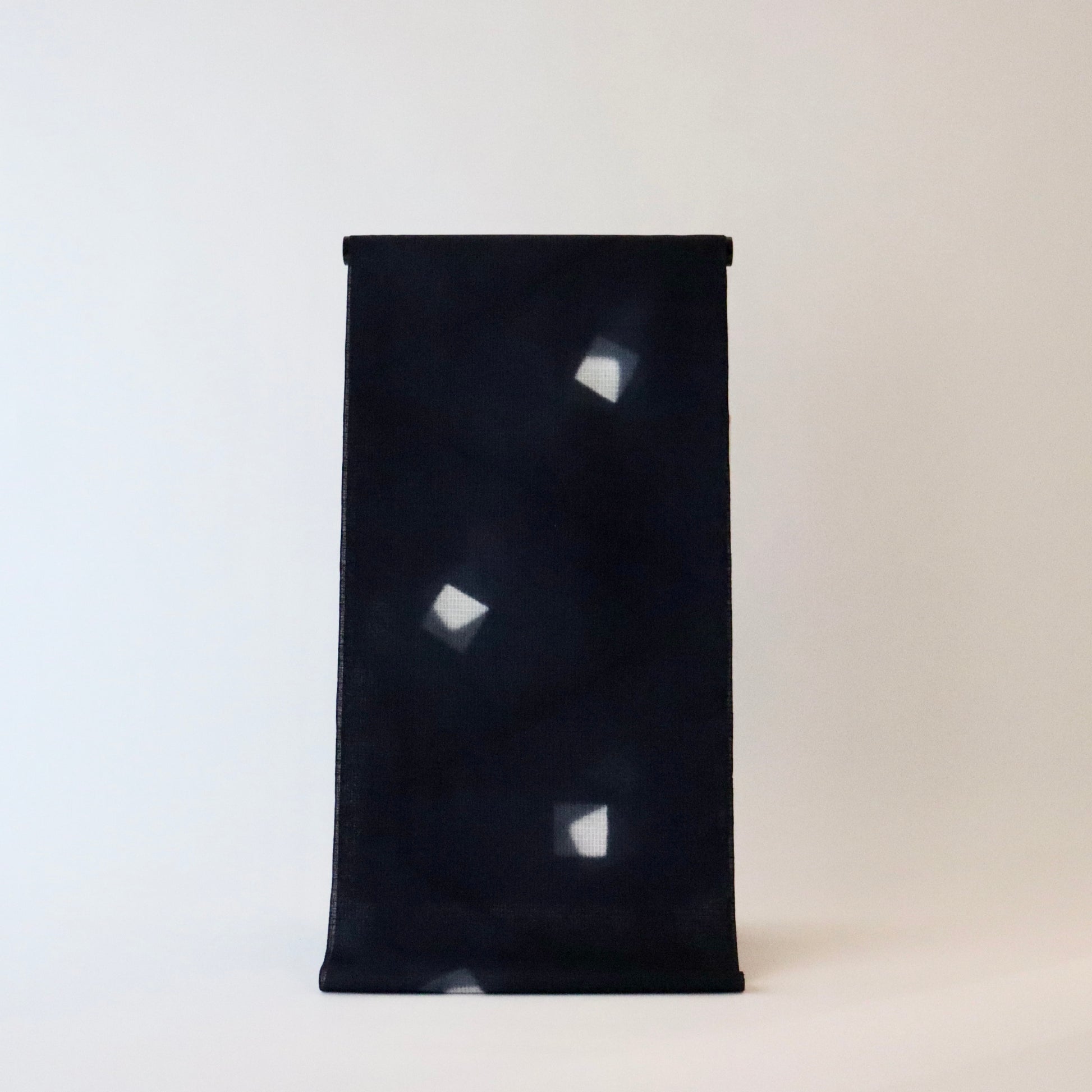 夏生地の定番「紅梅」を板締め絞りで仕上げた本作。無地場を広く取った柄付がとても洒落た印象の仕上がり。綿麻のさらりとした肌触りが心地よい一品です。