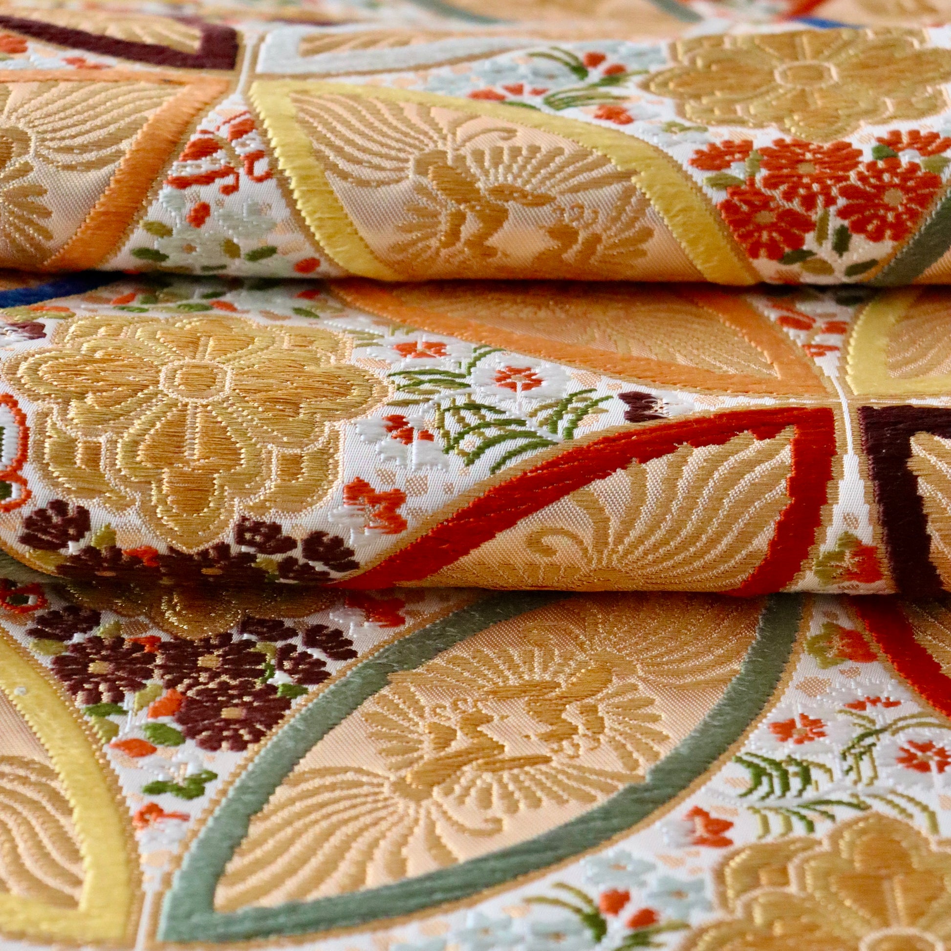 袋帯「彩七宝寿蝶華文」河合美術織物