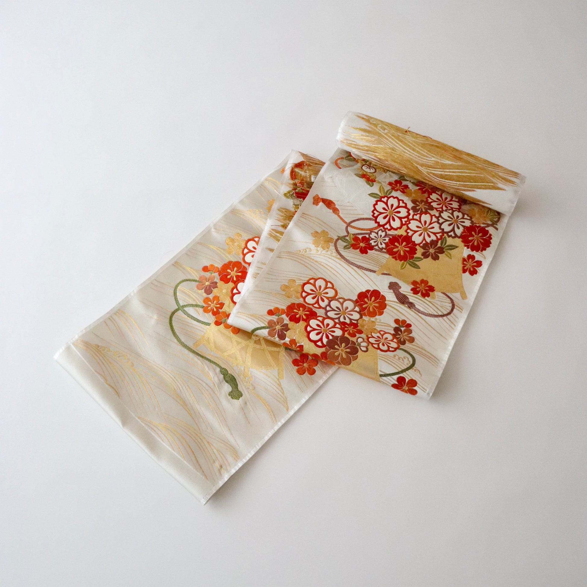 本品は国内手縫の袋帯芯入仕立てでお納め致します。(帯芯は三河芯・別薄が付属致します)<納期・納品について>ご注文決済(必要なものは寸法確認後)から約40日でのご納品となります。お急ぎをご希望の場合は問い合わせフォームよりご相談下さい。出来る限りの対応をさせて頂きます。お品物が仕立て上がりましたらご納品発送の前にご連絡を致します。配送指定日時にご希望ございましたら、その際にお申し付け下さい。ゴールデンウィーク・お盆夏季休業・年末年始冬季休業などを挟む場合は規定の納期よりもお時間を頂戴する場合がございます。予めご了承ください。