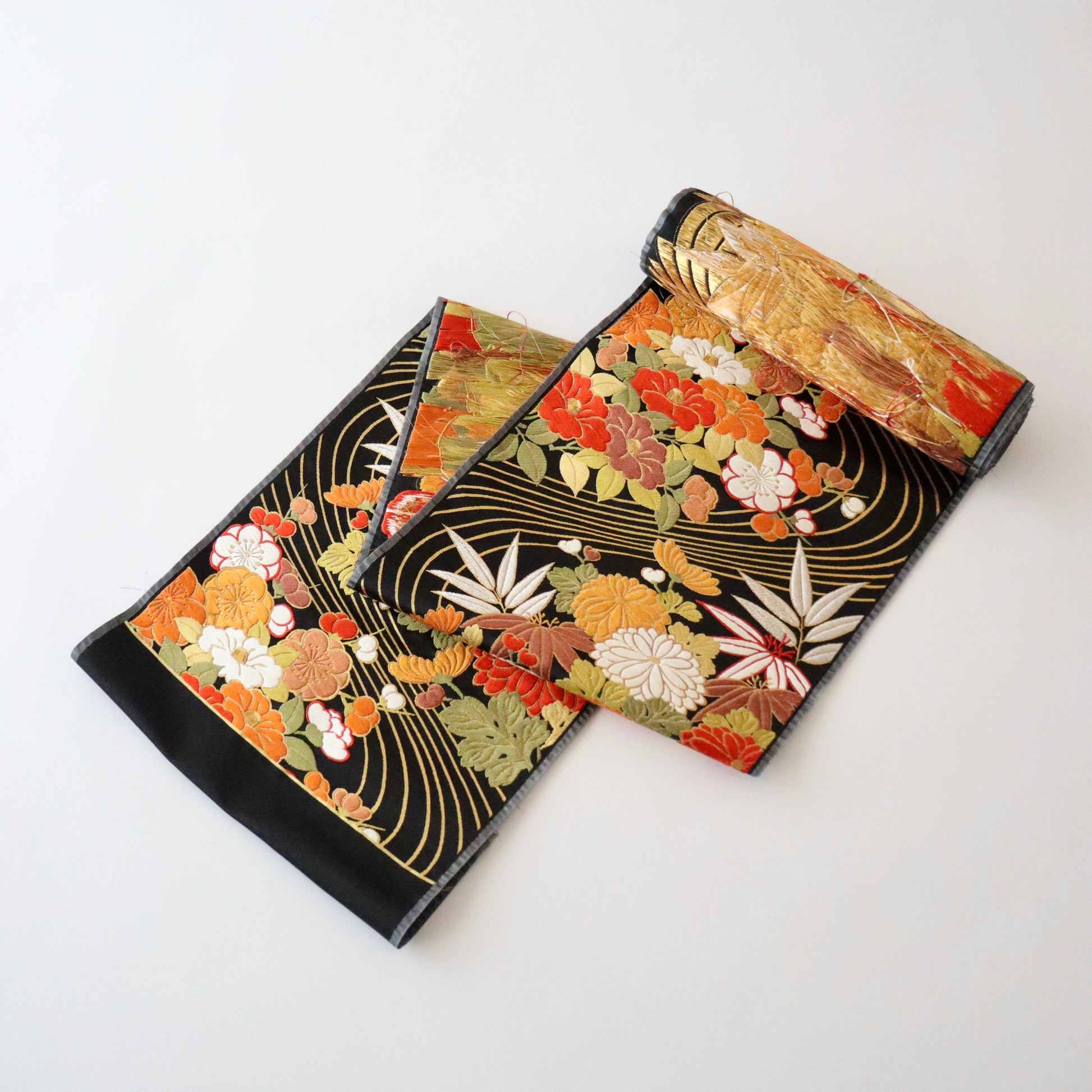 袋帯「流水菊椿文」梅垣織物