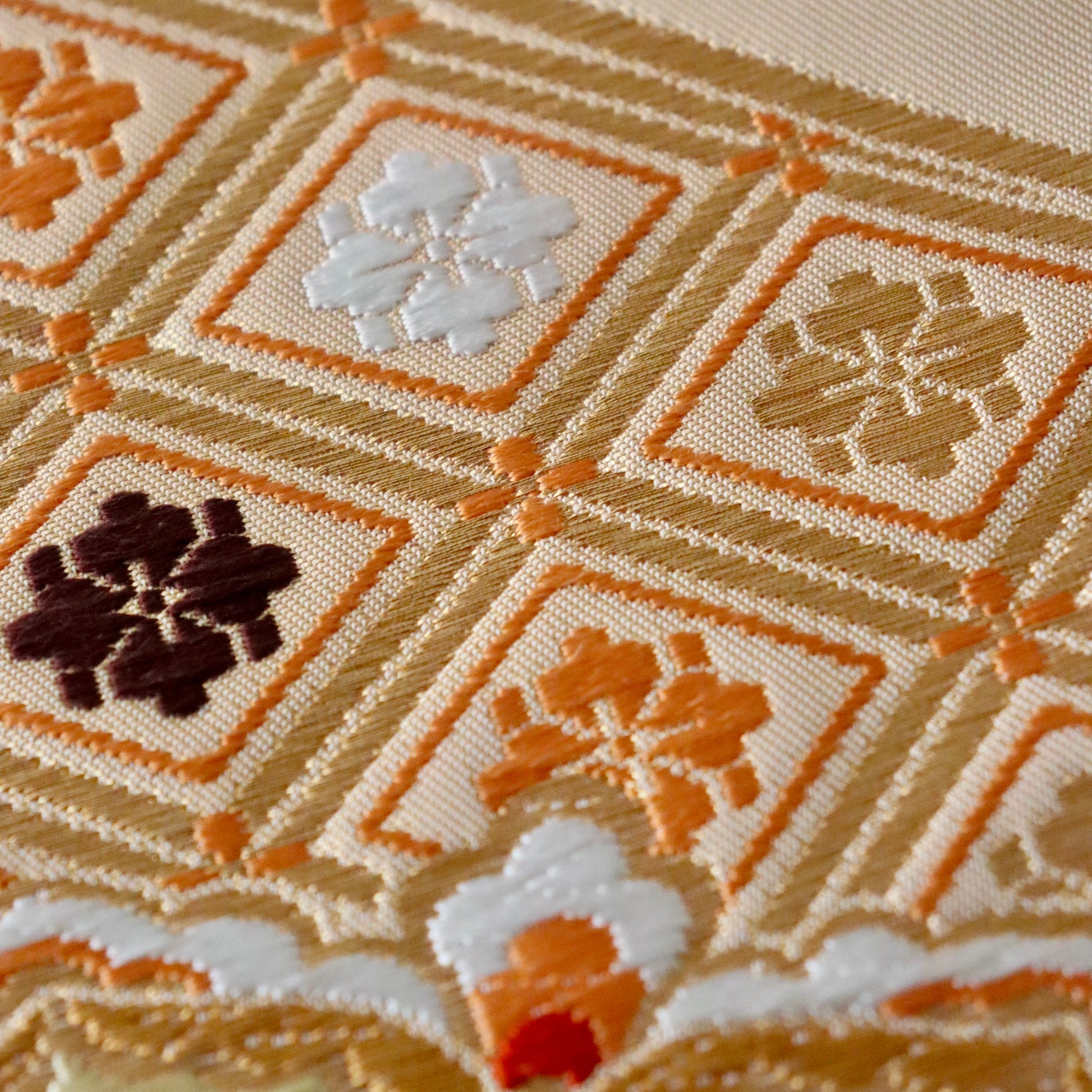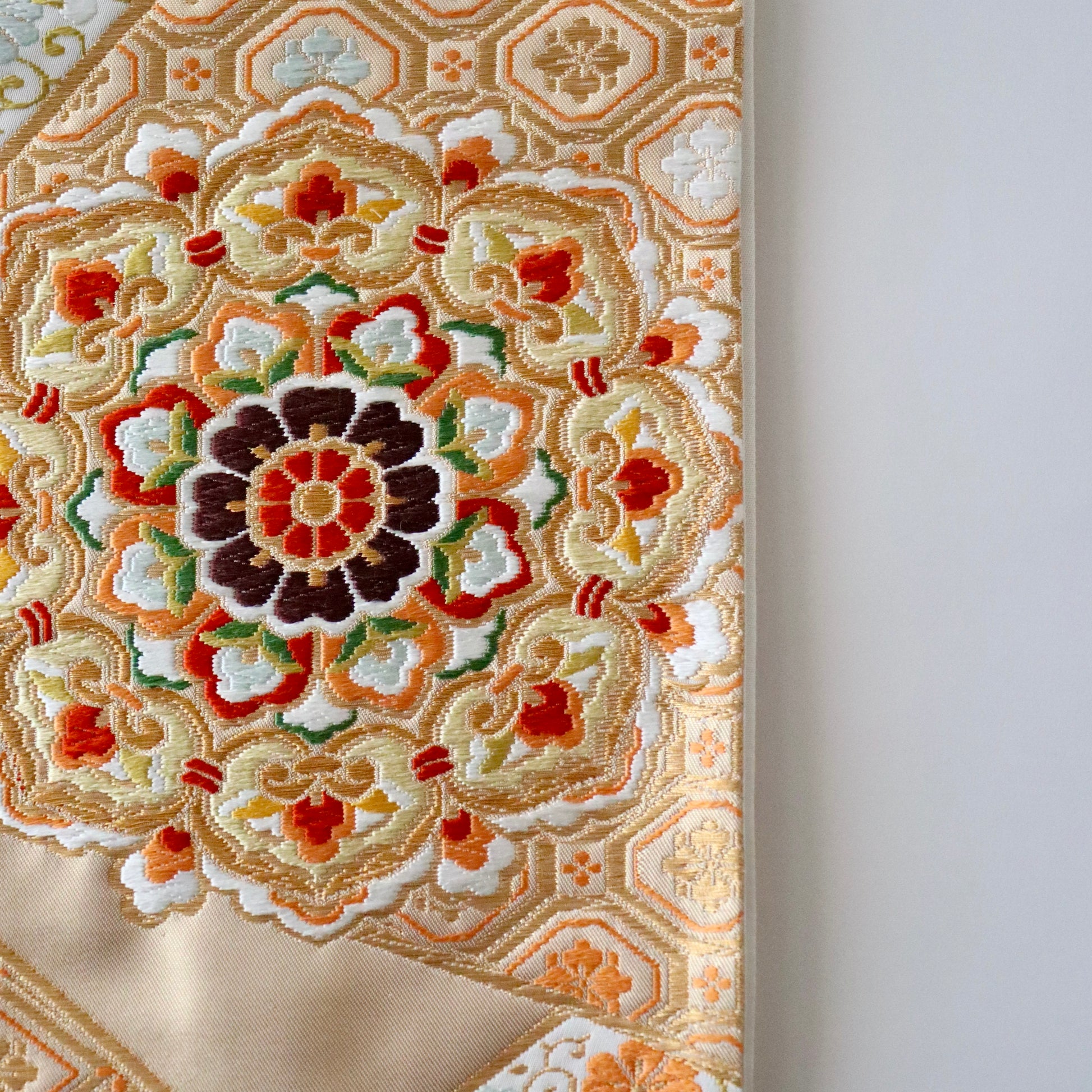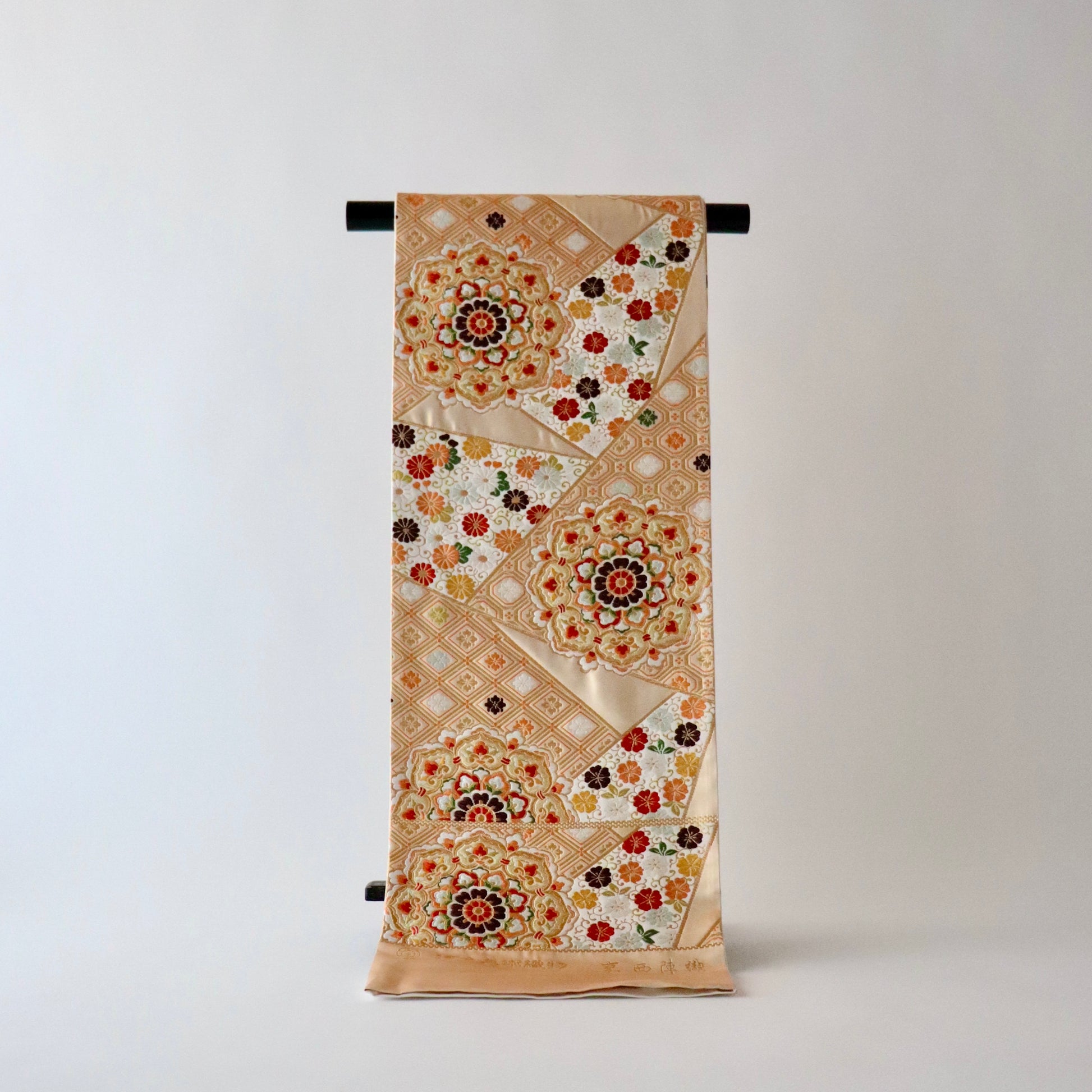 袋帯「裂形名錦寿宝文」河合美術織物