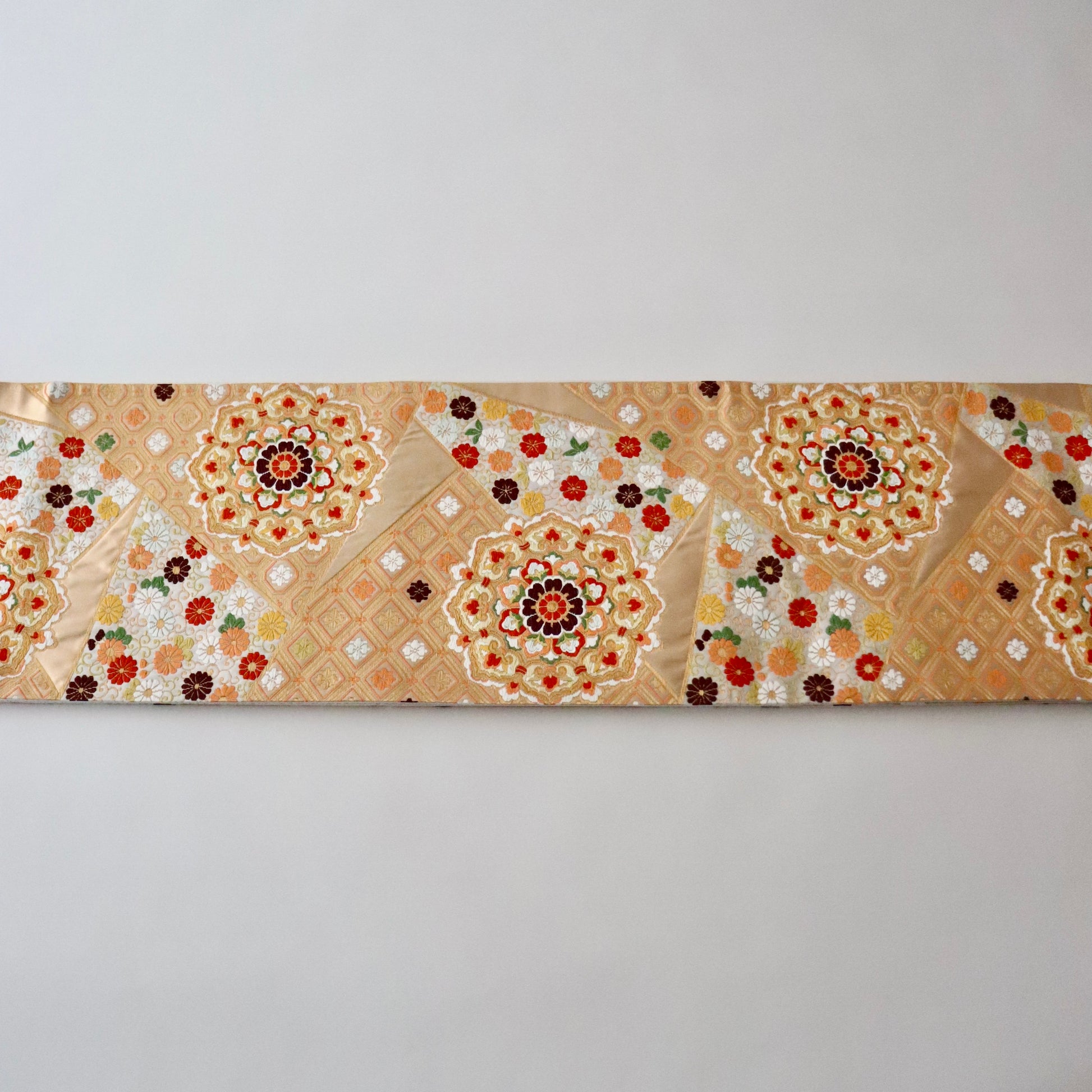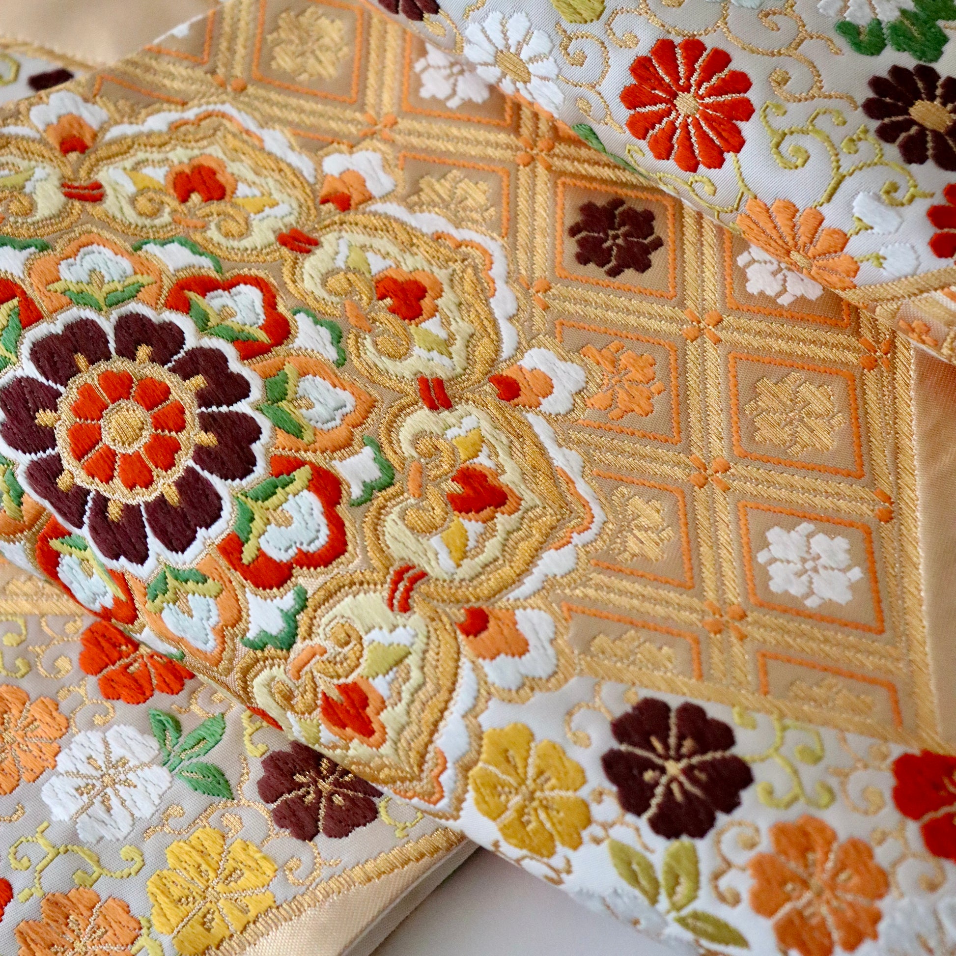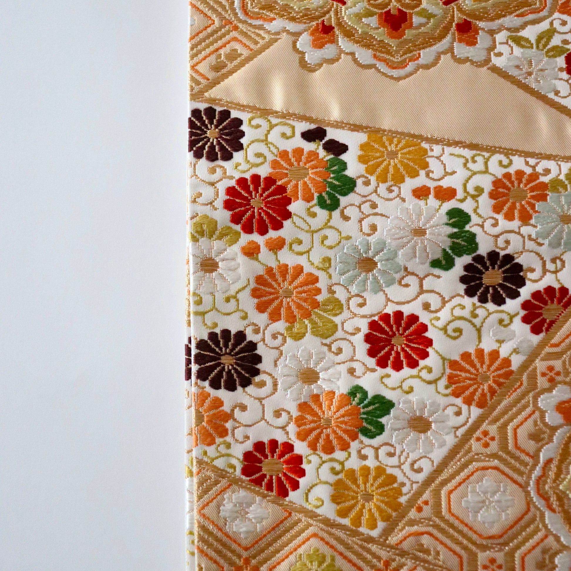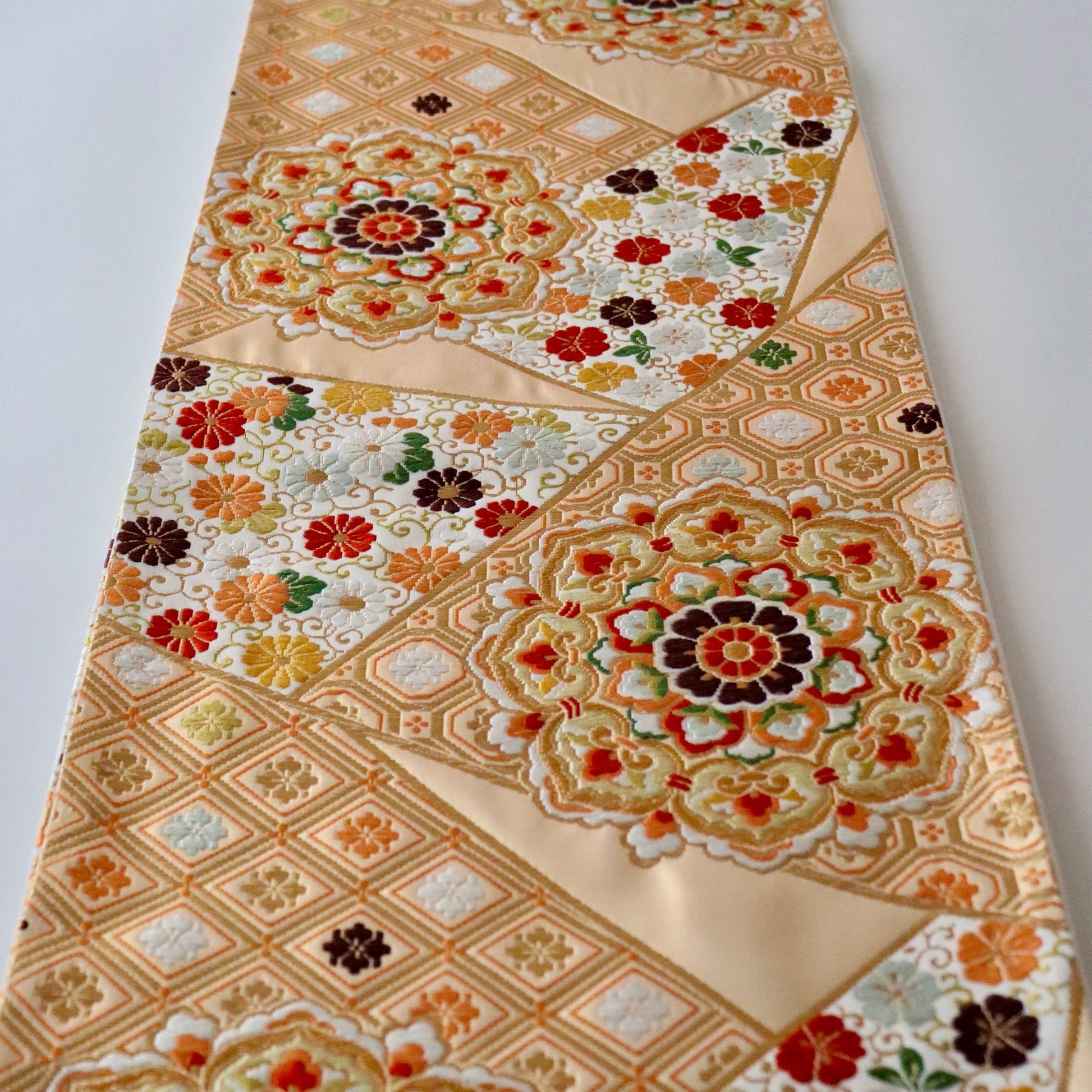 袋帯「裂形名錦寿宝文」河合美術織物