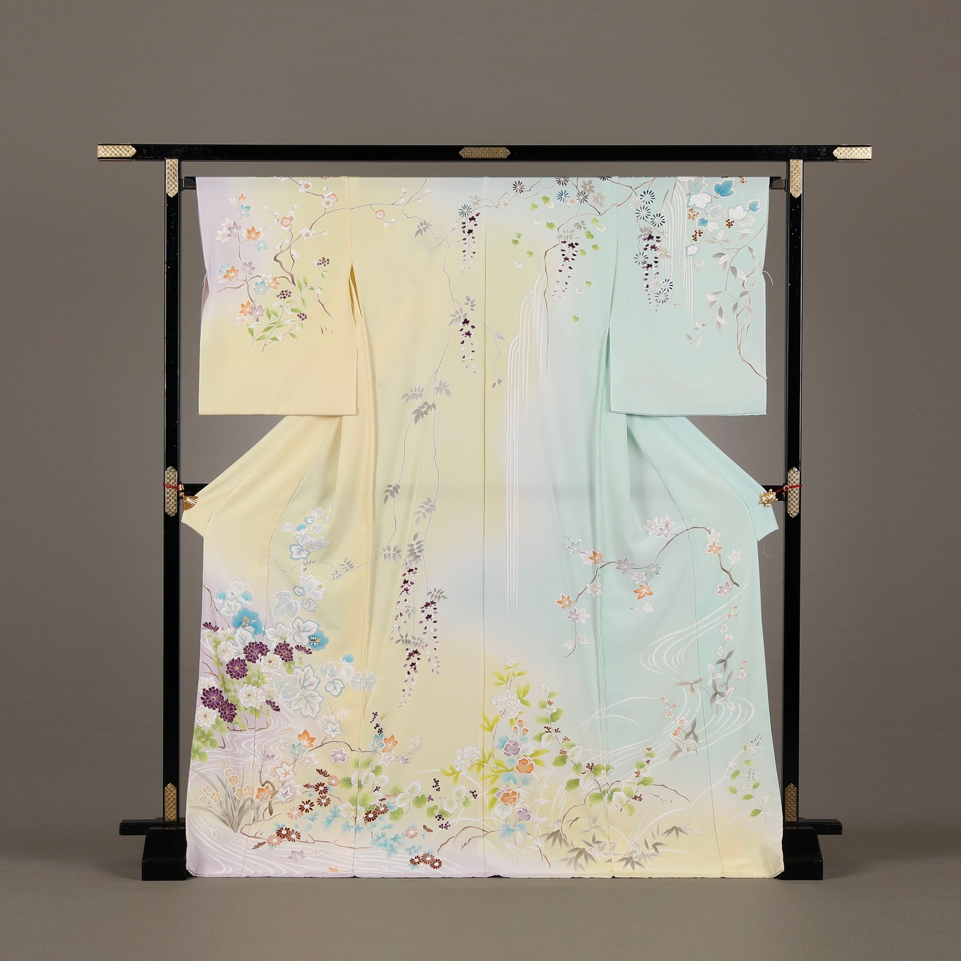 訪問着「手描き京友禅 - 琳派岩草花流水」工芸染匠 成謙