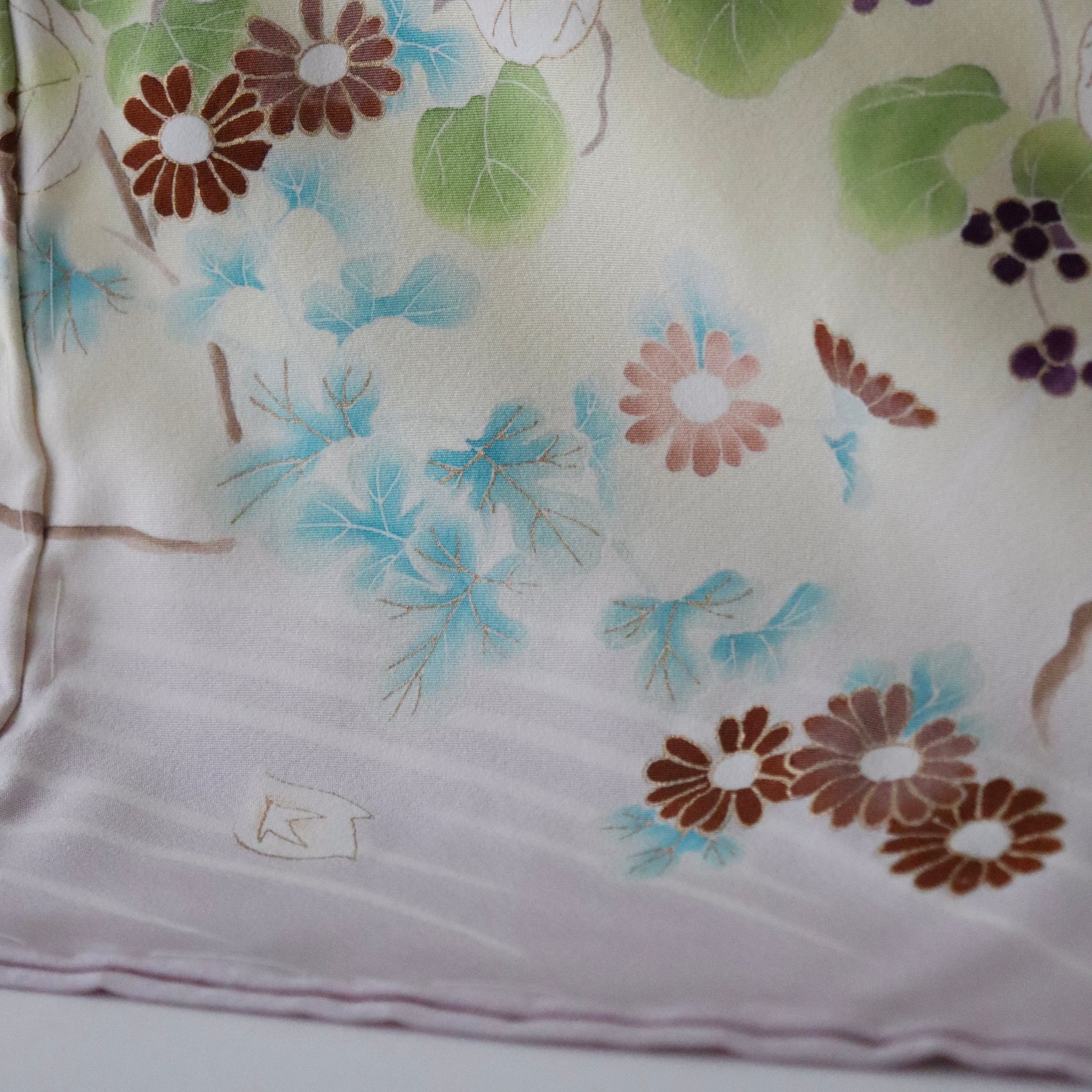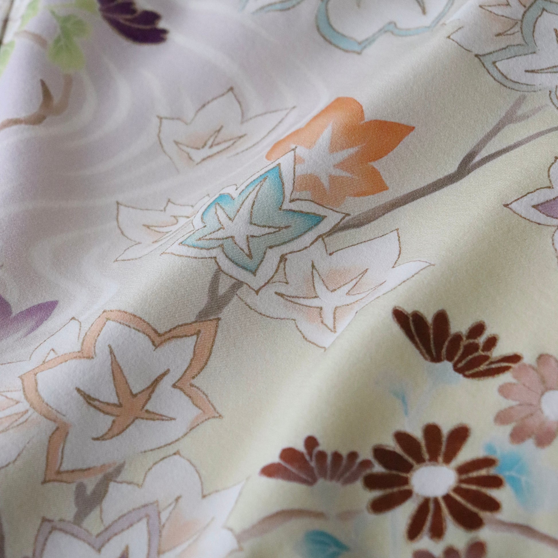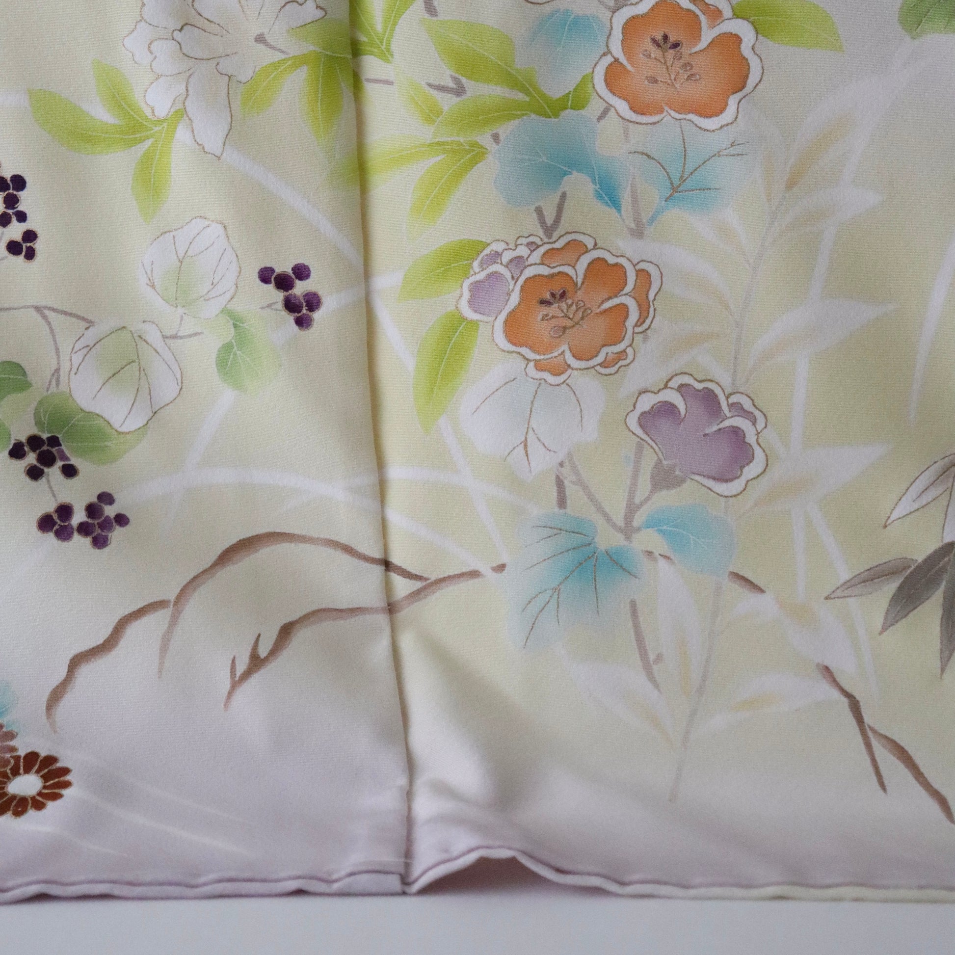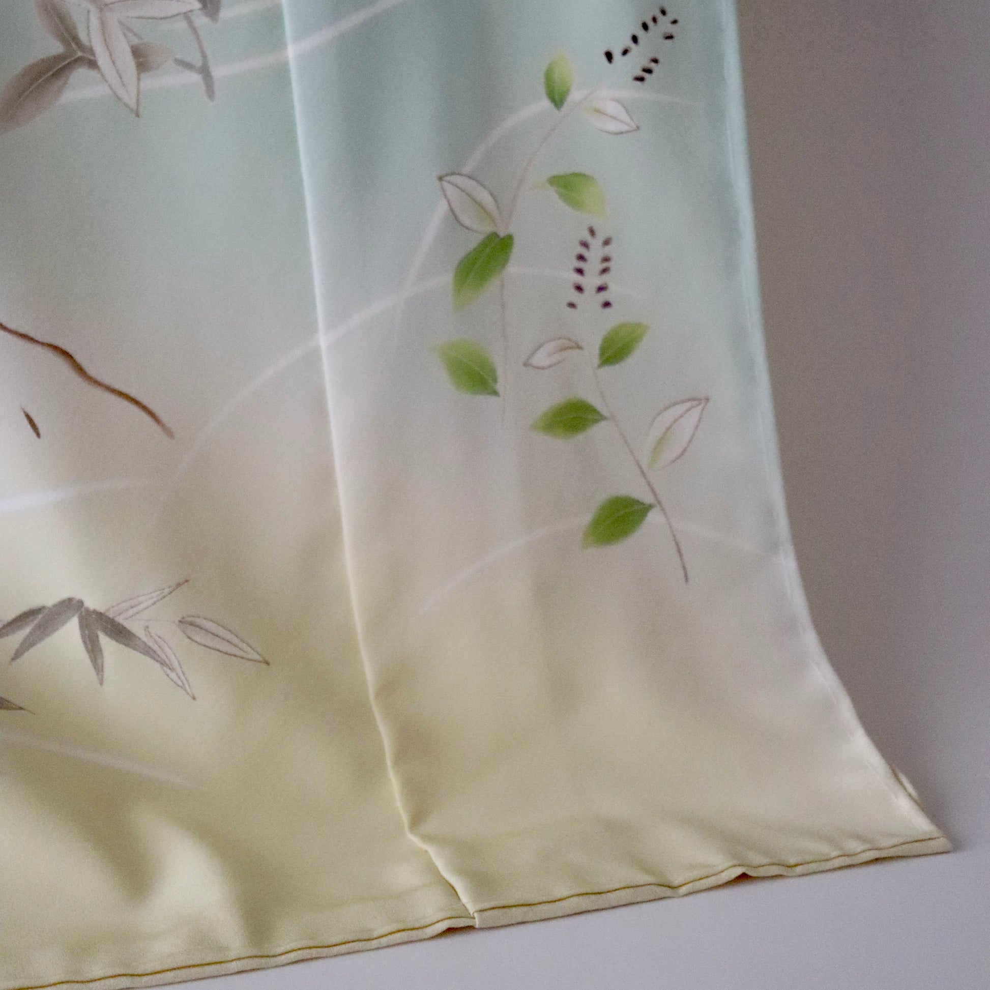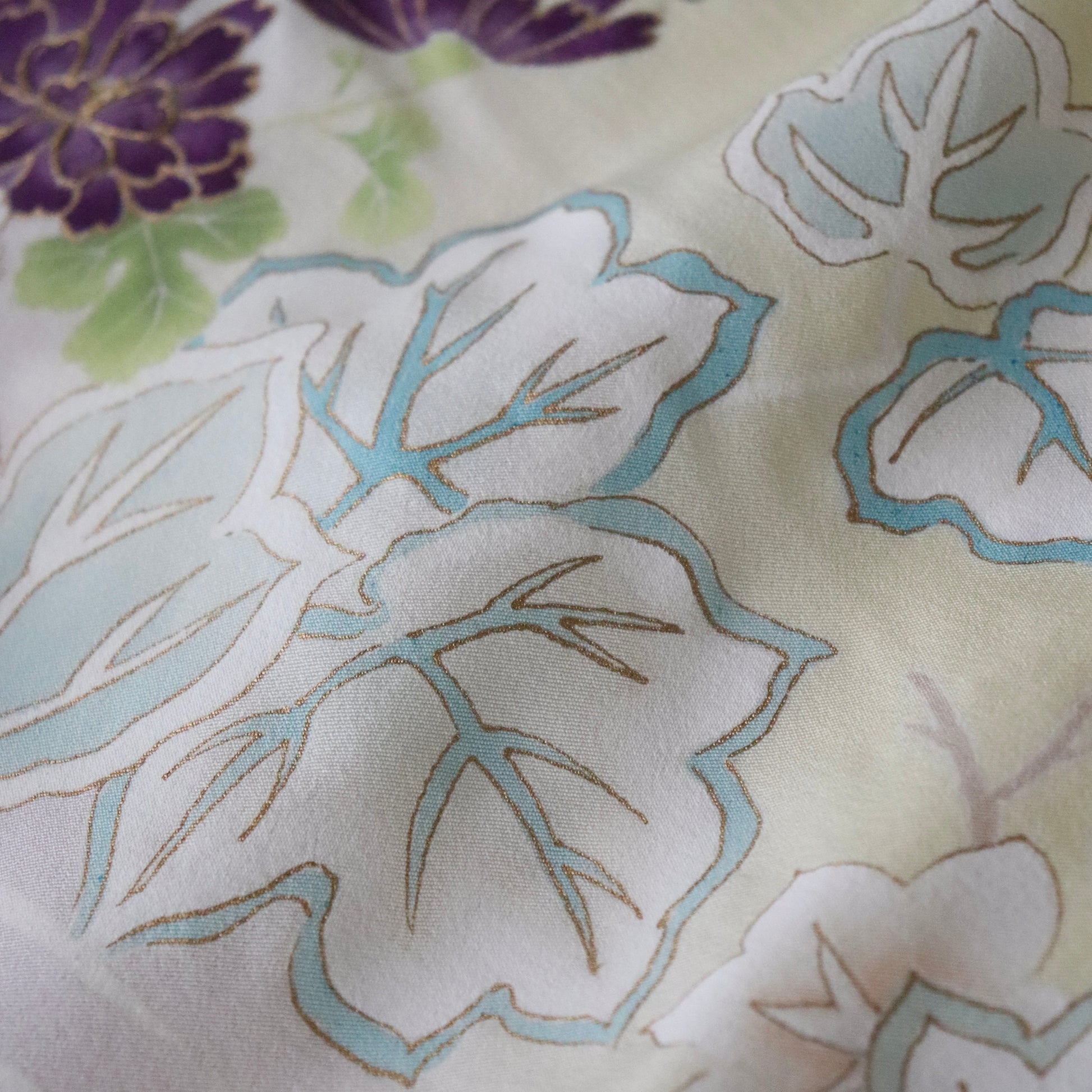 成謙が得意とする琳派意匠。写実的要素が垣間見える独創的な柄構図を細やかな友禅で上品に染め上げております。