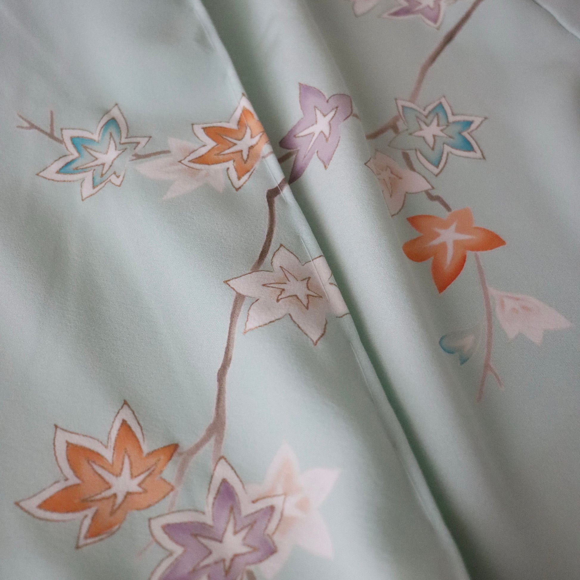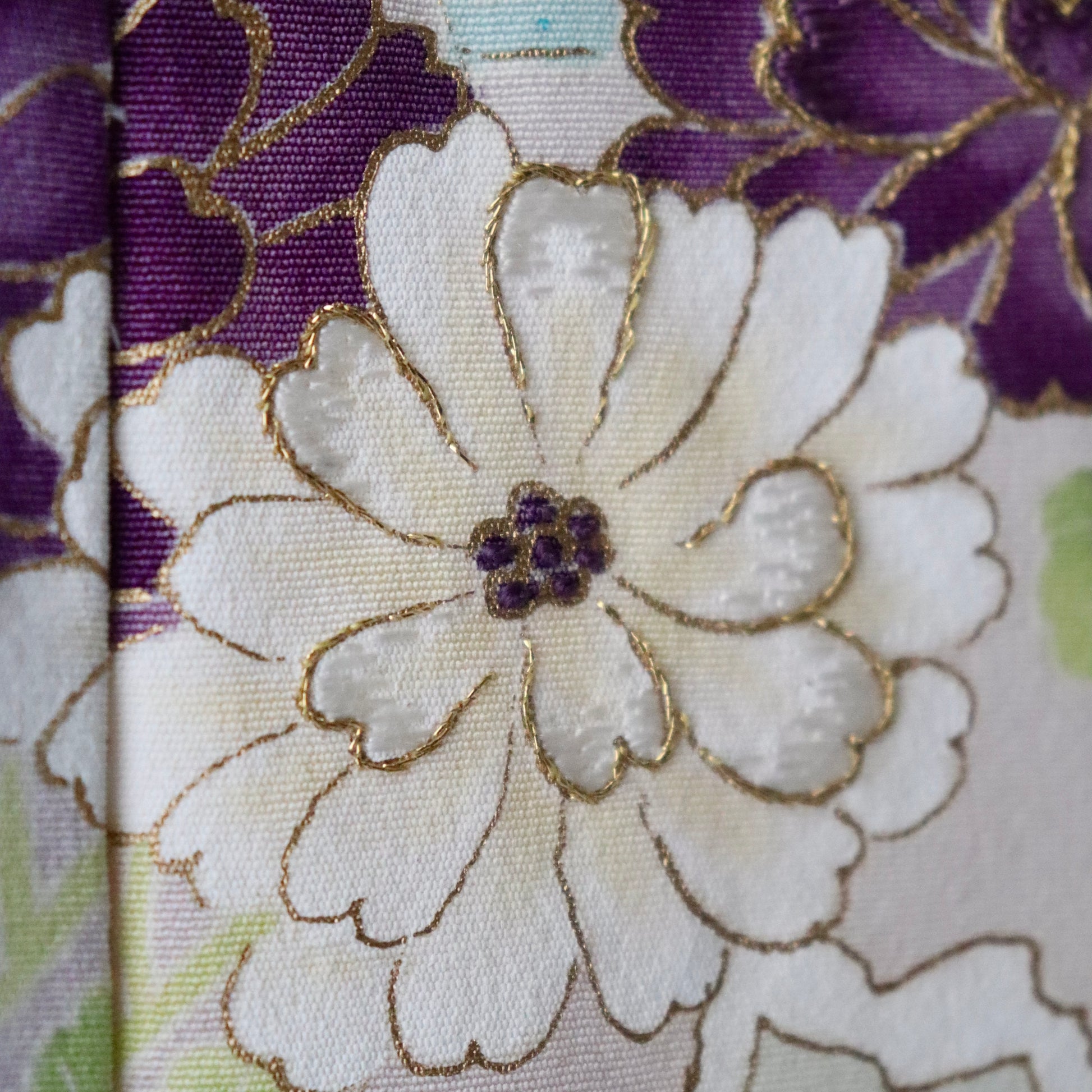 着物全体の色鮮やかさに加え、細部の刺繍が実に見事な仕上がり。成謙ならではの感性が溢れる華やかな一枚です。