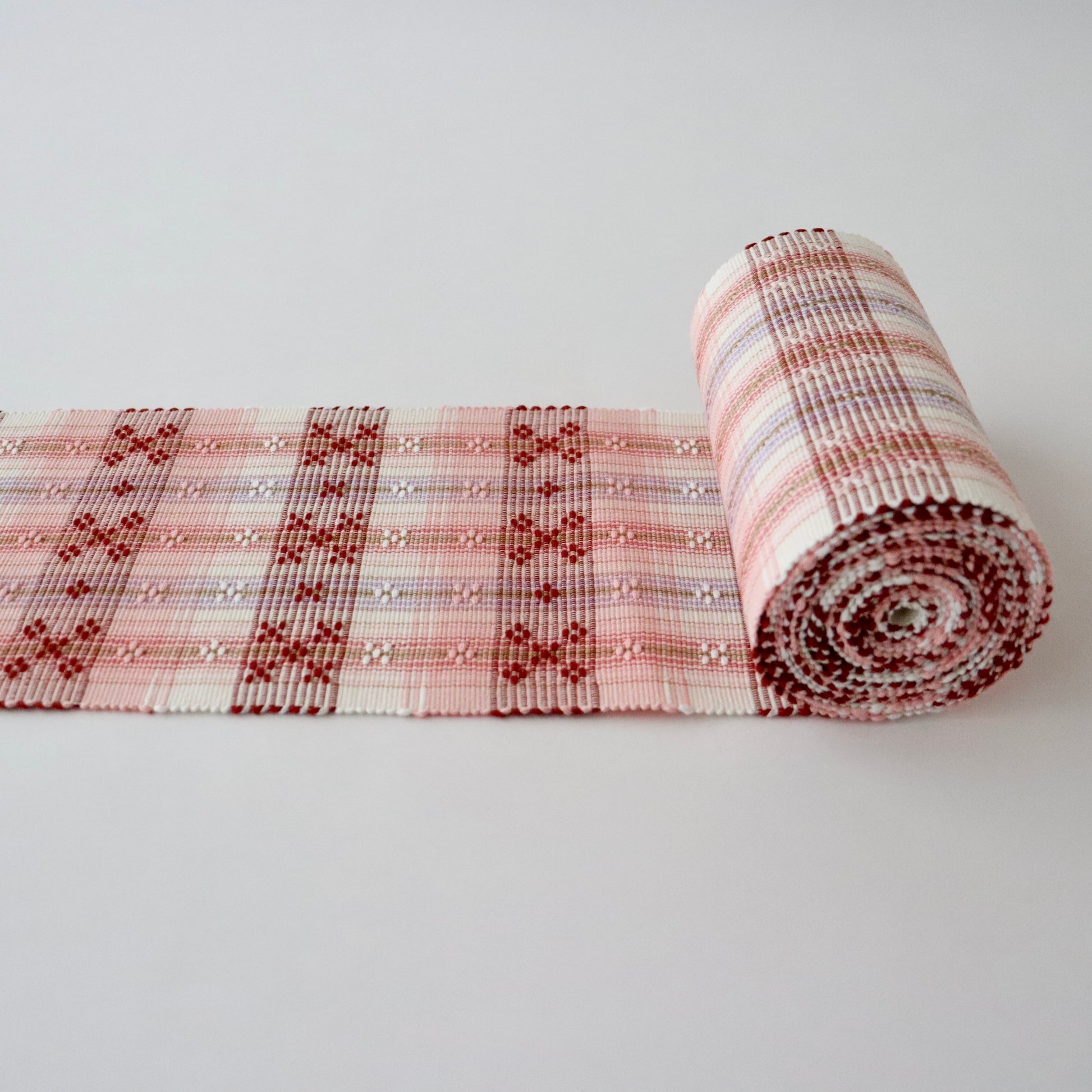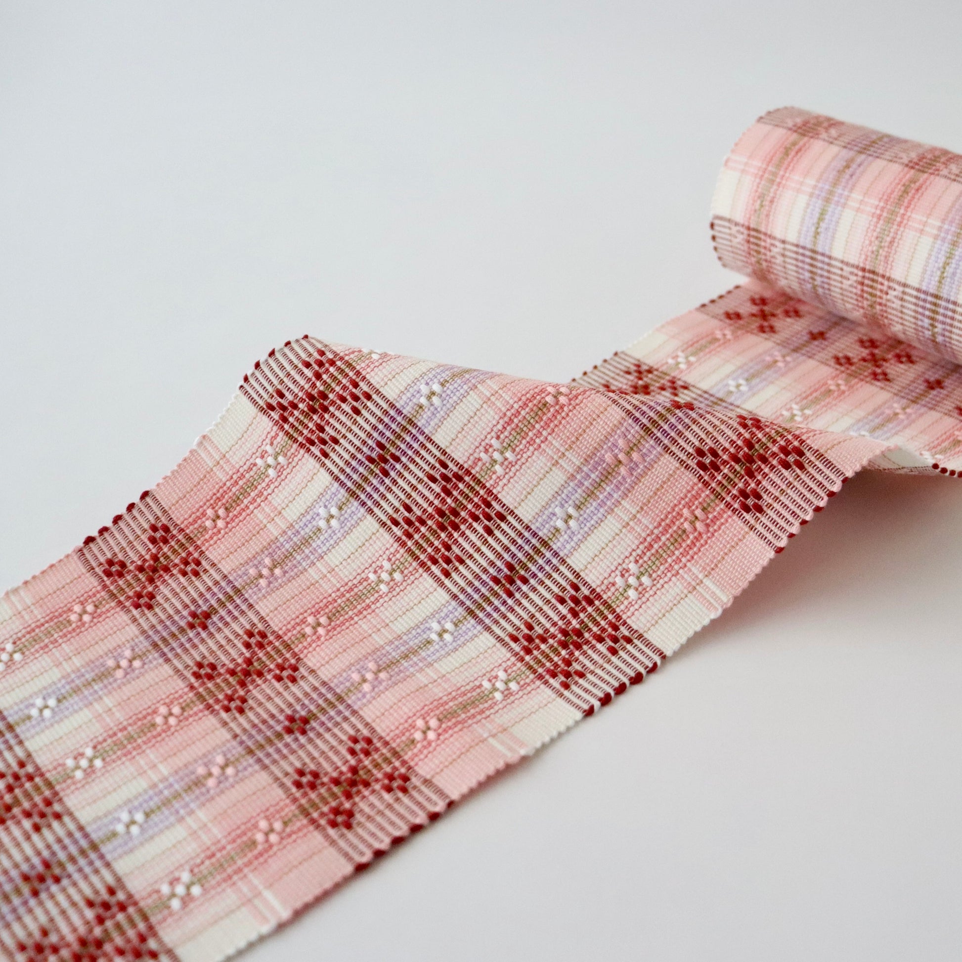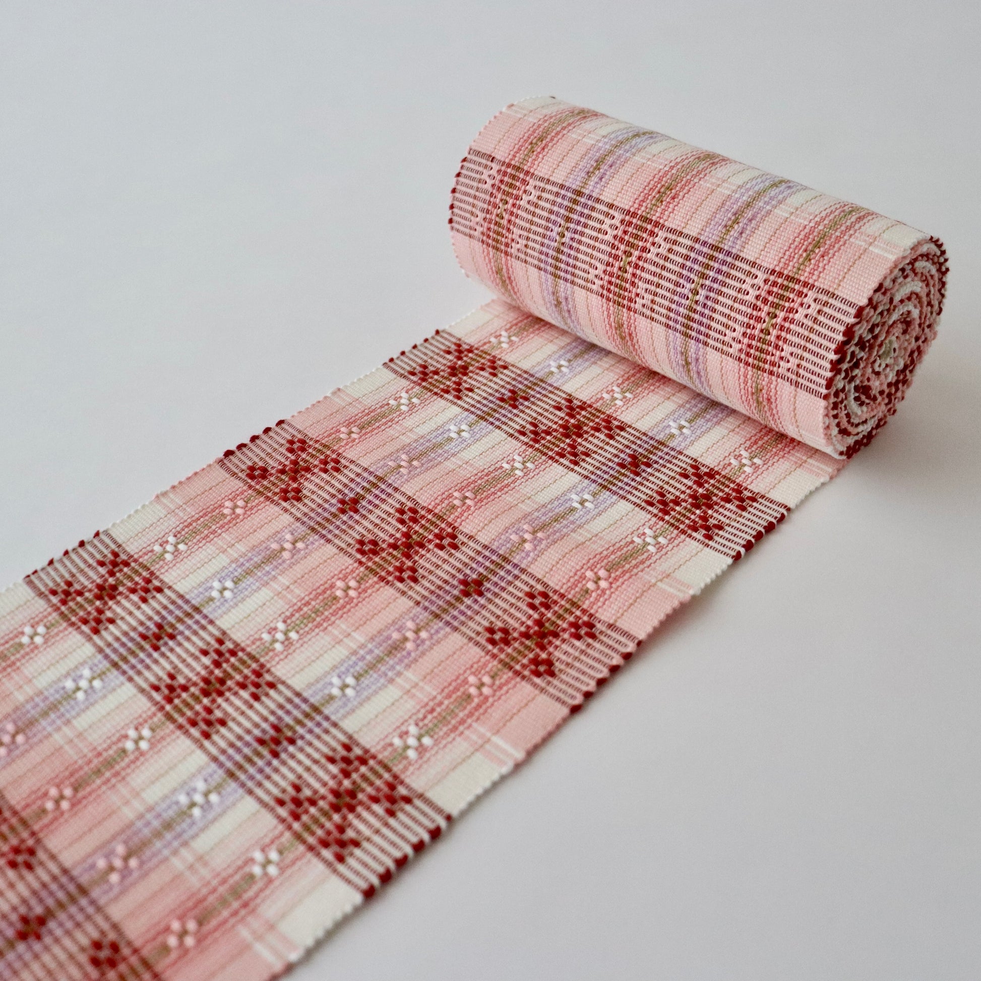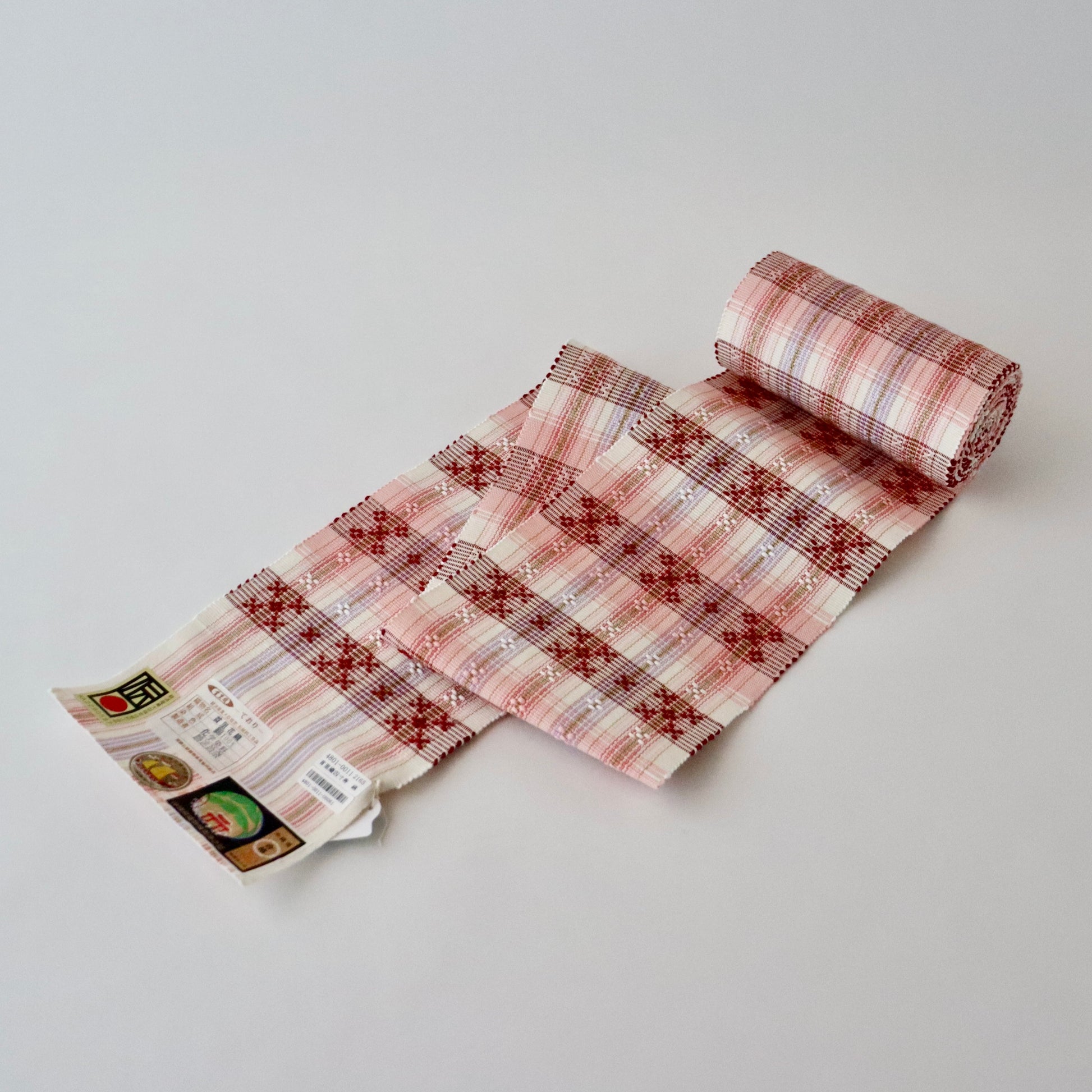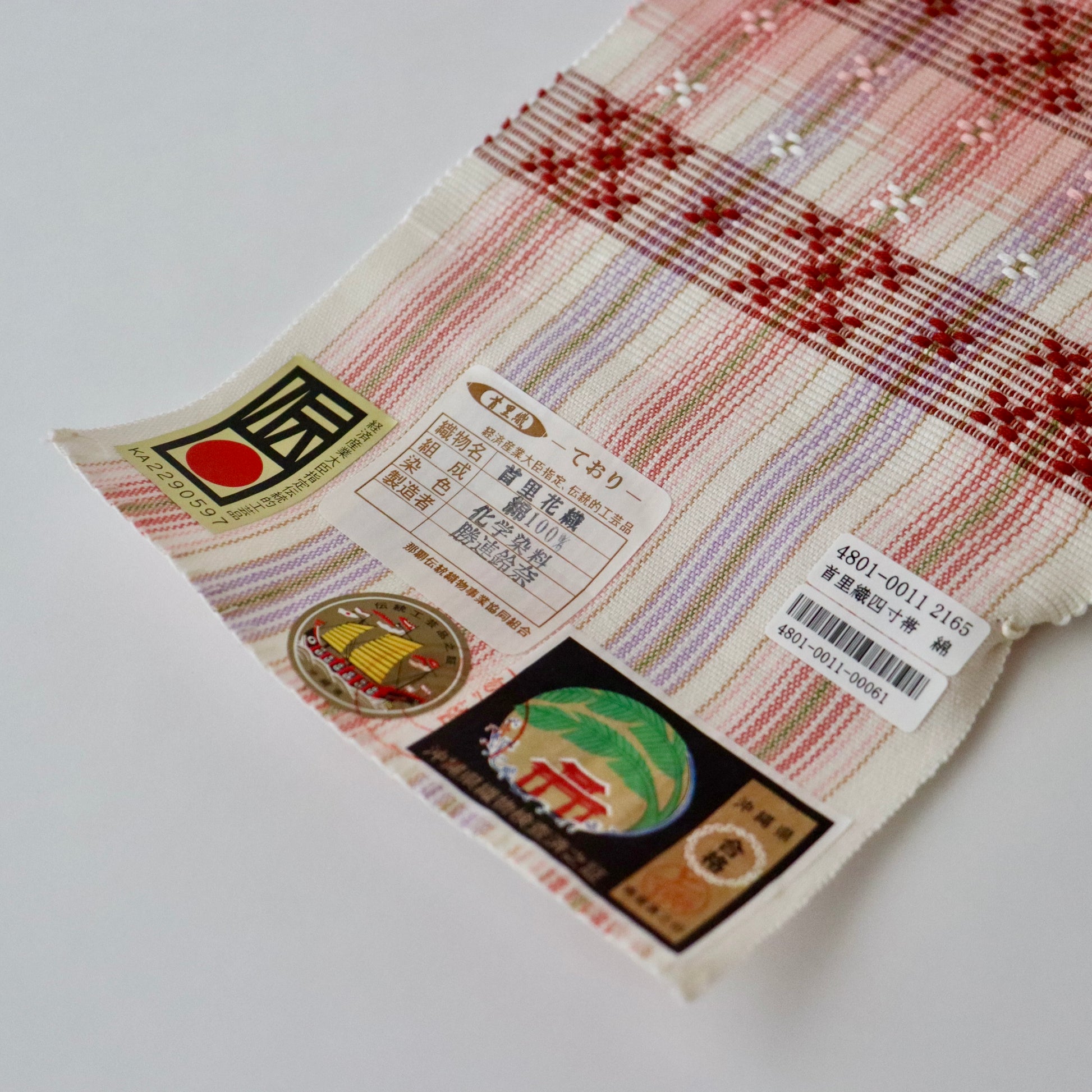 沖縄県で制作される木綿素材の首里織り四寸帯「首里花織」。